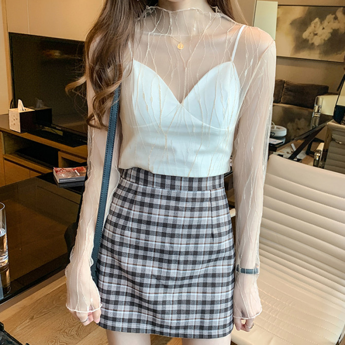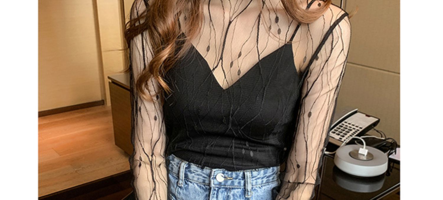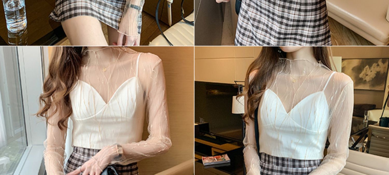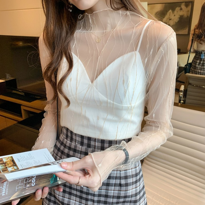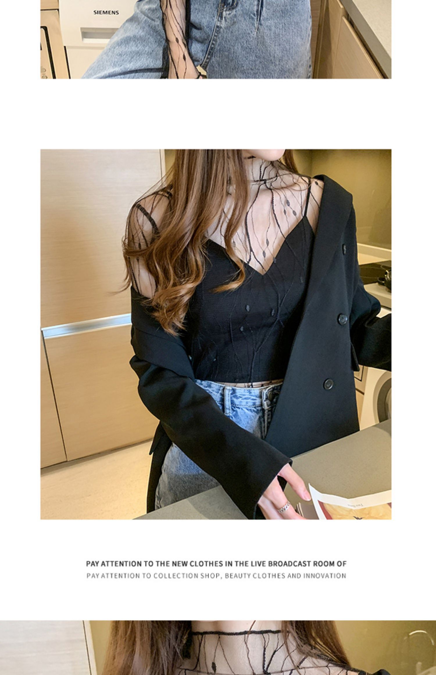 加絨蕾絲打底衫女網紗2024新款長袖高領毛衣內搭紗衣秋季洋氣上衣