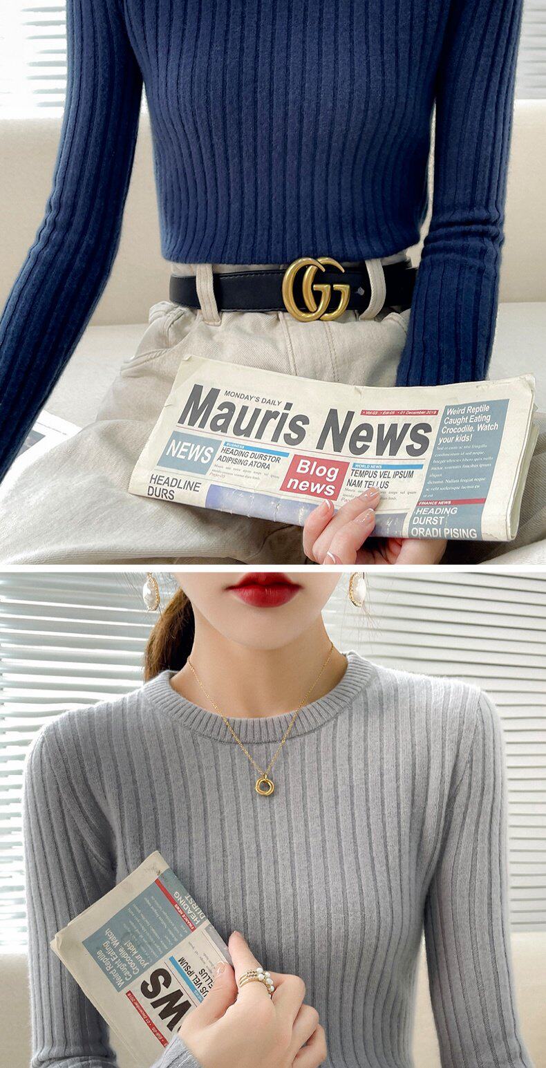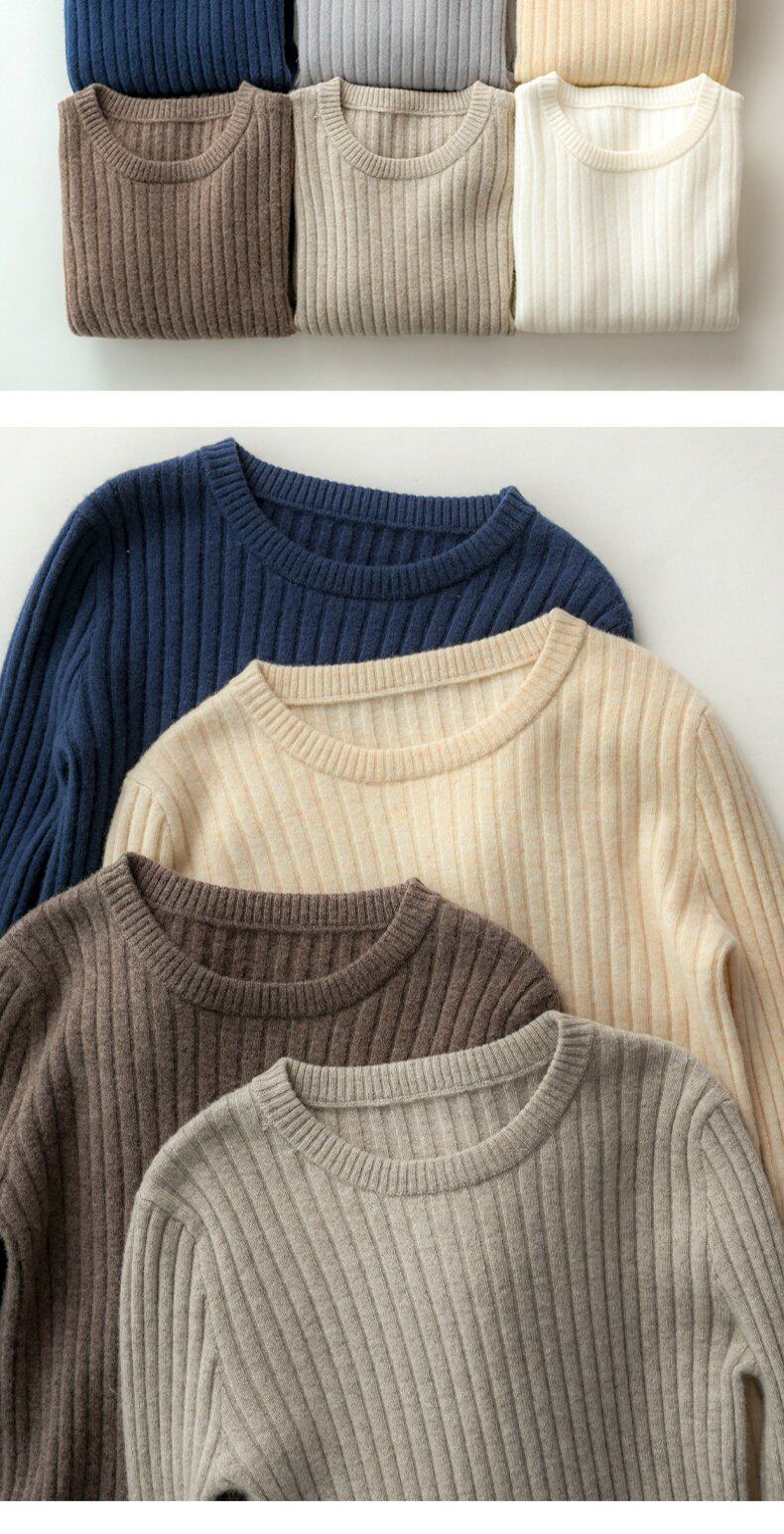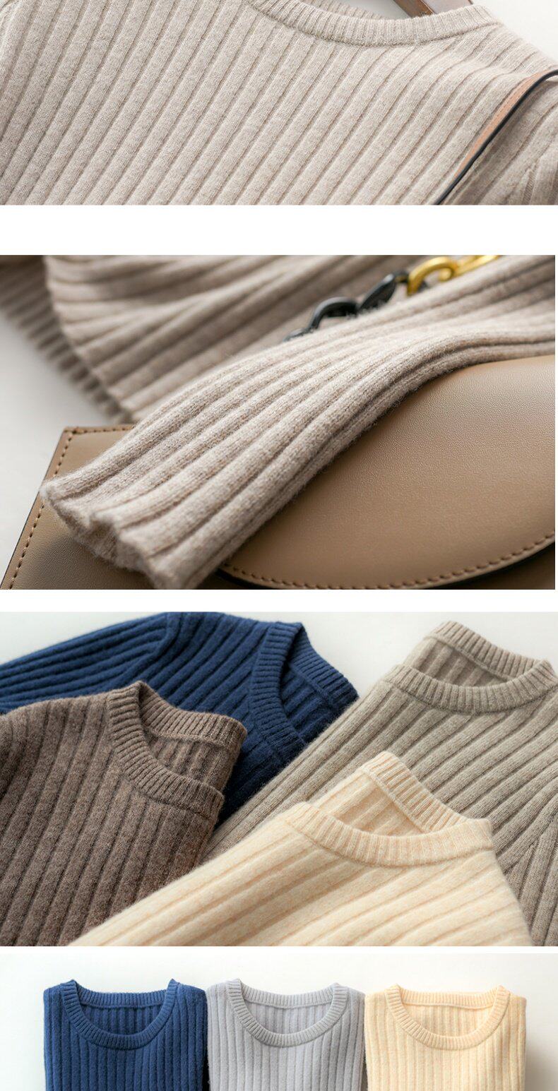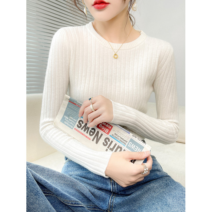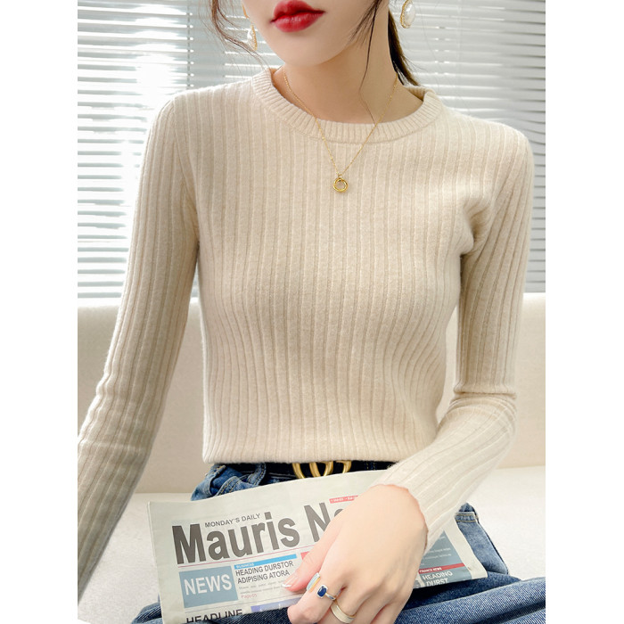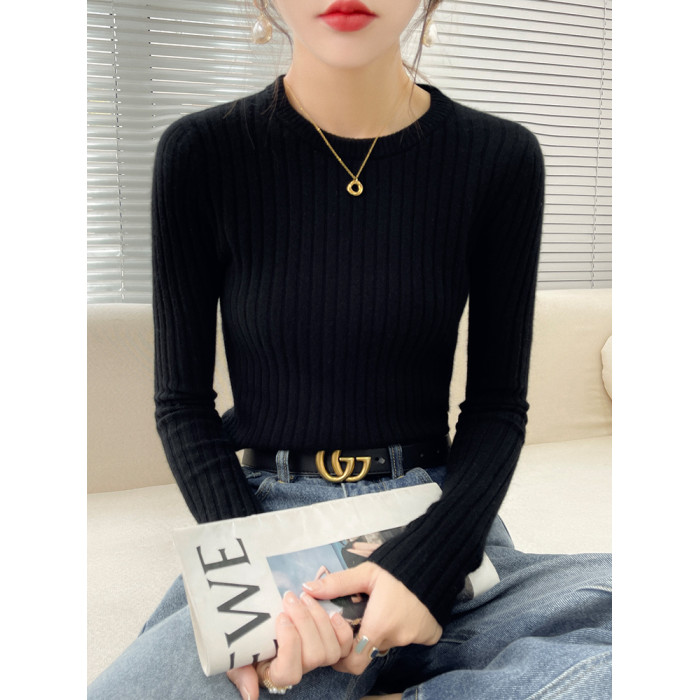 秋冬新款圓領配大衣針織衫女修身套頭打底衫長袖上衣內搭顯瘦毛衣