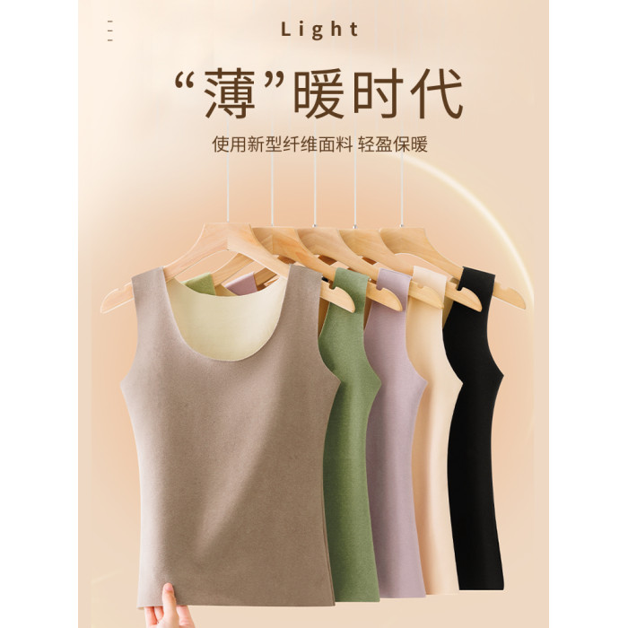 無痕保暖背心女士冬季加絨2023新款自髮熱修身內搭外穿打底衫上衣