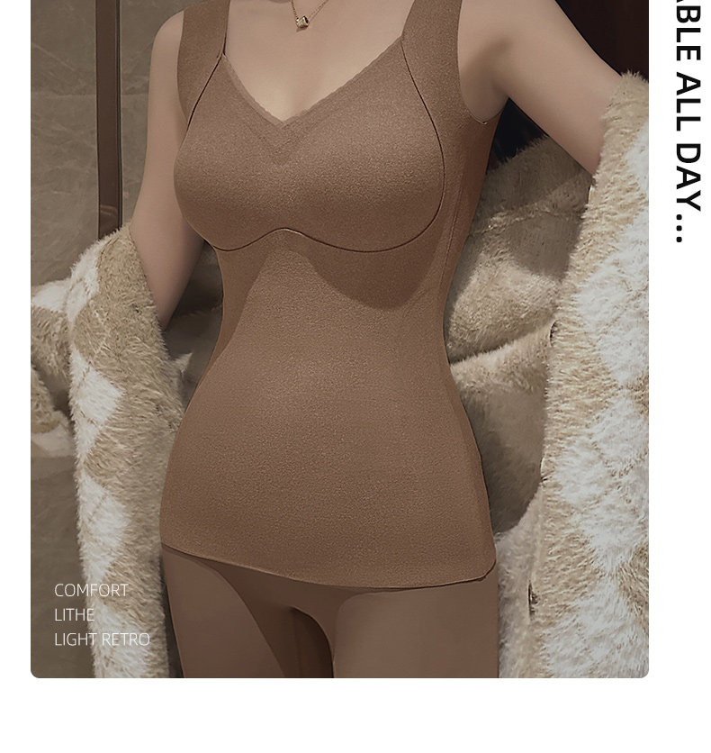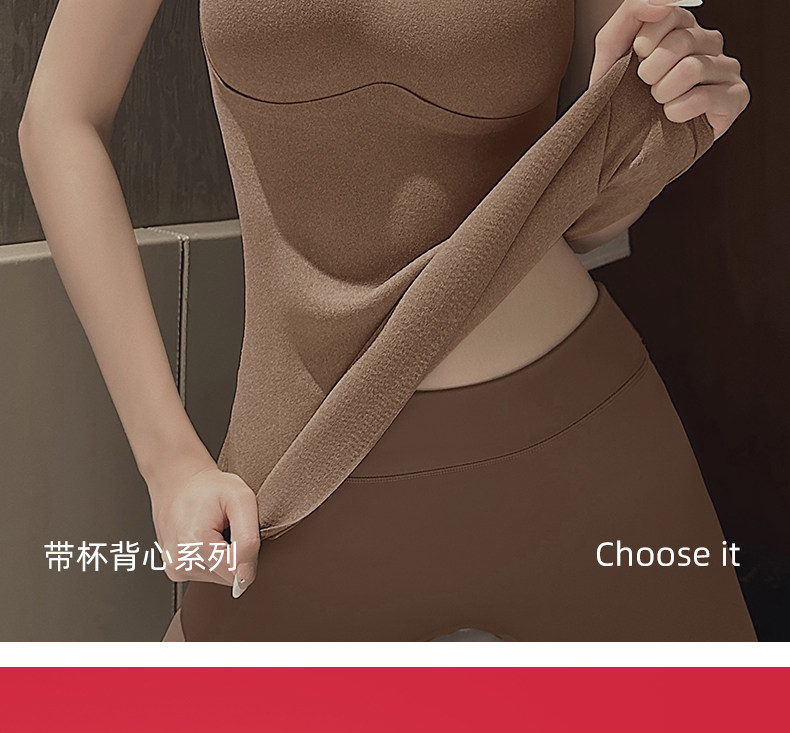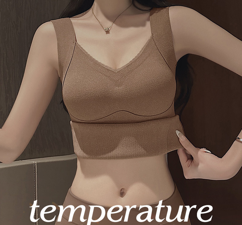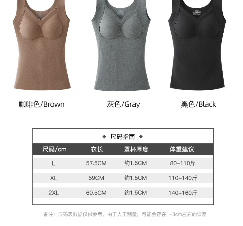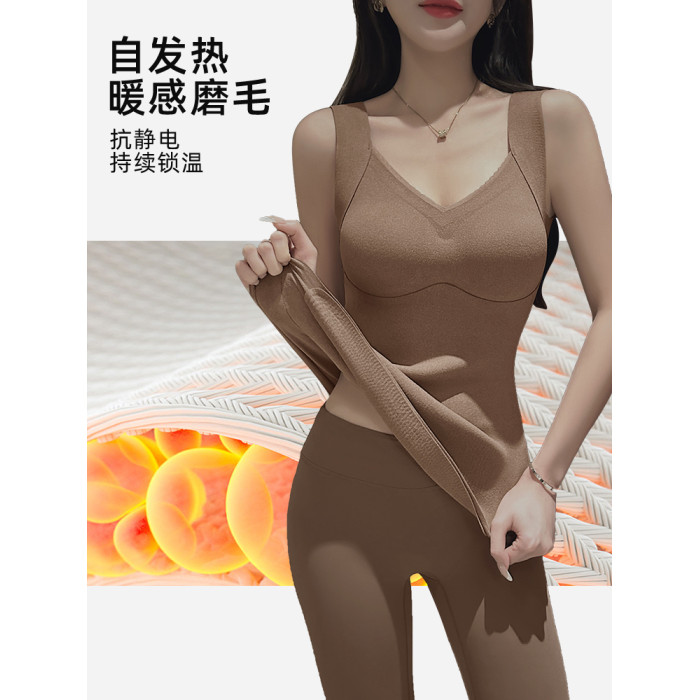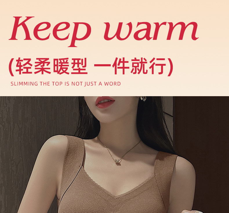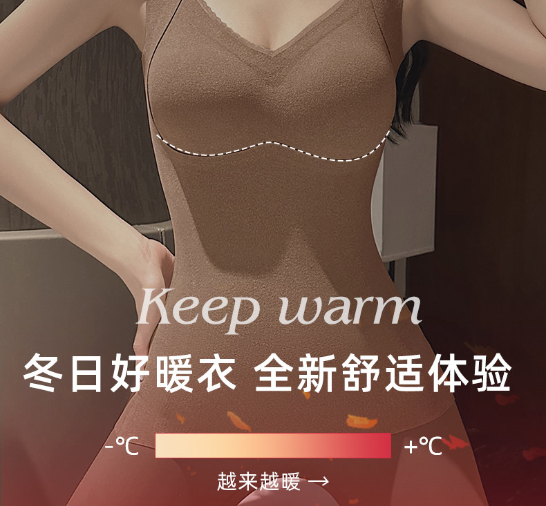 德絨保暖背心女款內衣冬季帶胸墊加絨加厚髮熱內搭低領保溫打底衫