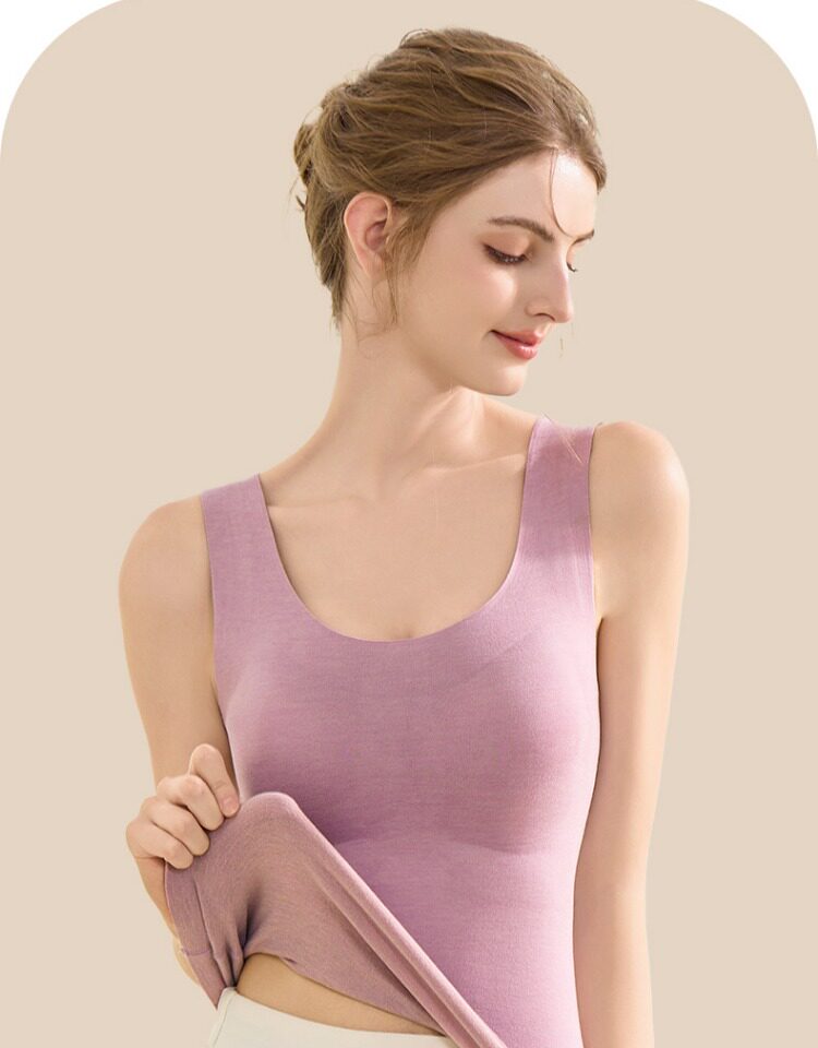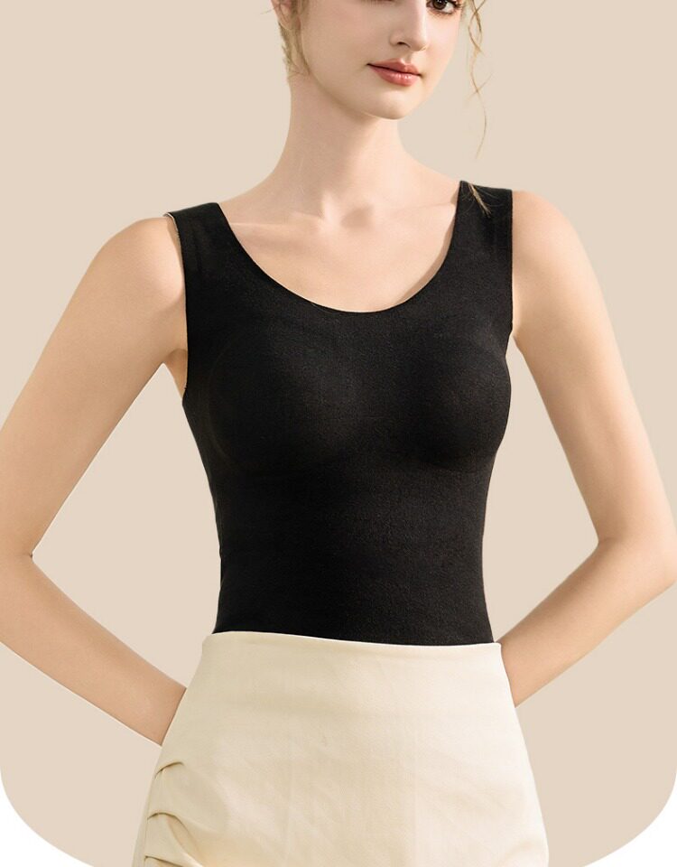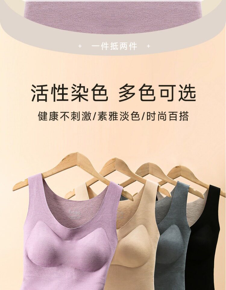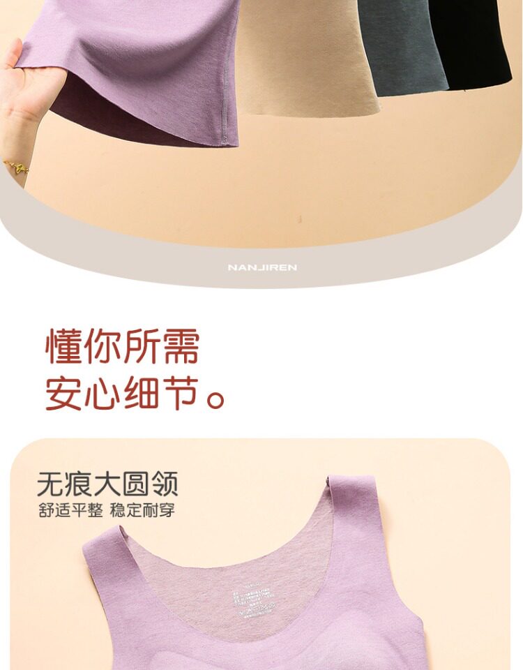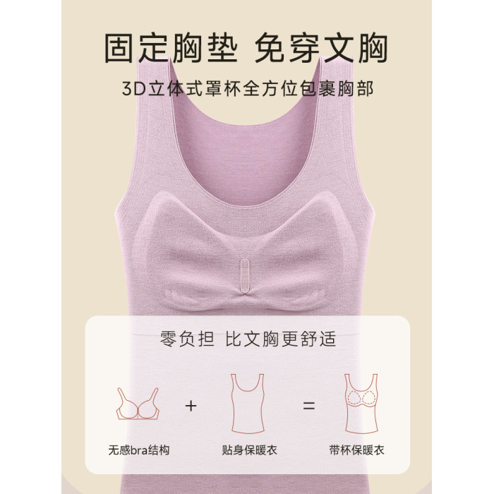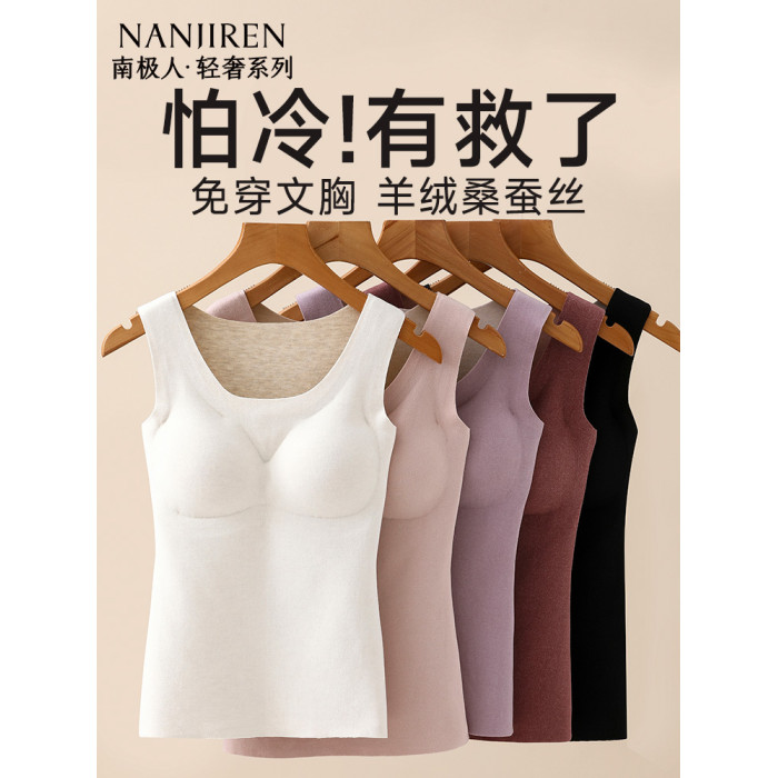 南極人髮熱內衣無痕絨德保暖背心女士加絨打底上衣帶胸墊冬季內搭