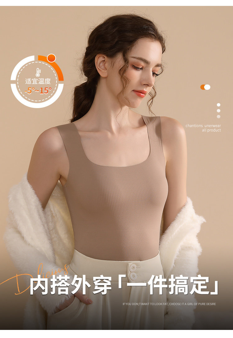 保暖背心內衣女士秋冬季加絨2023新款無痕發熱德絨吊帶內搭打底衫