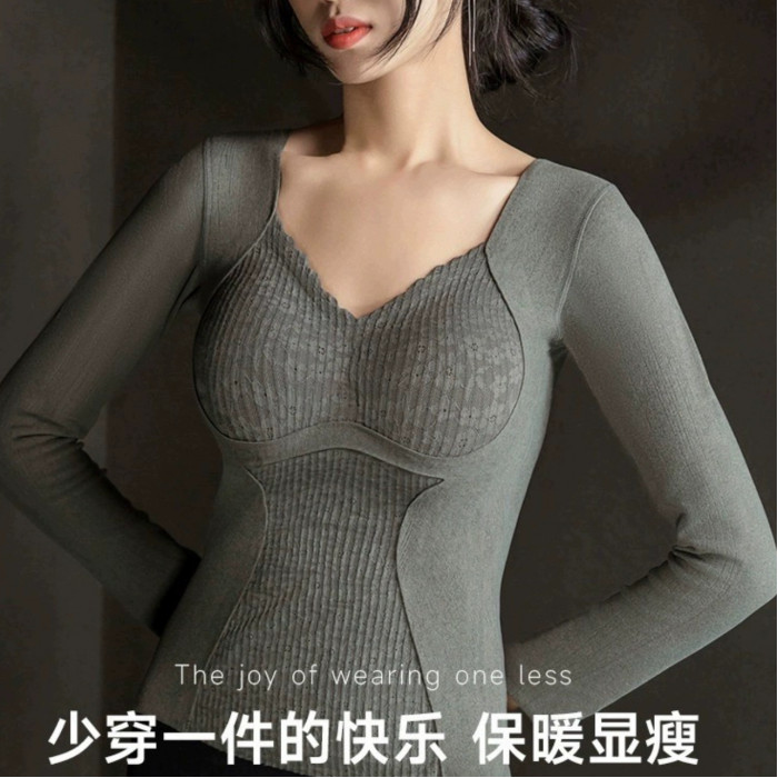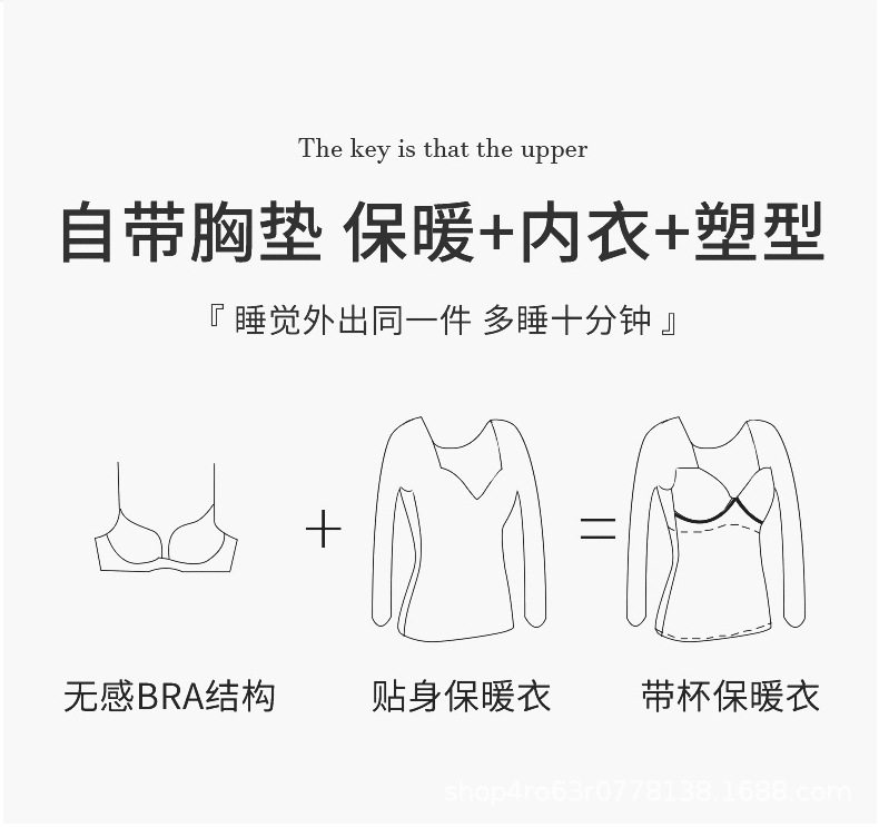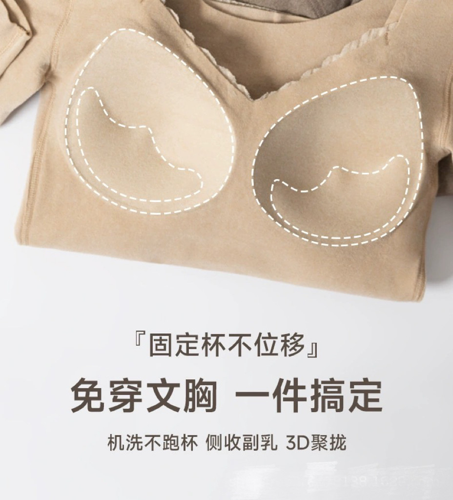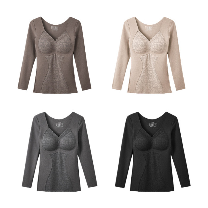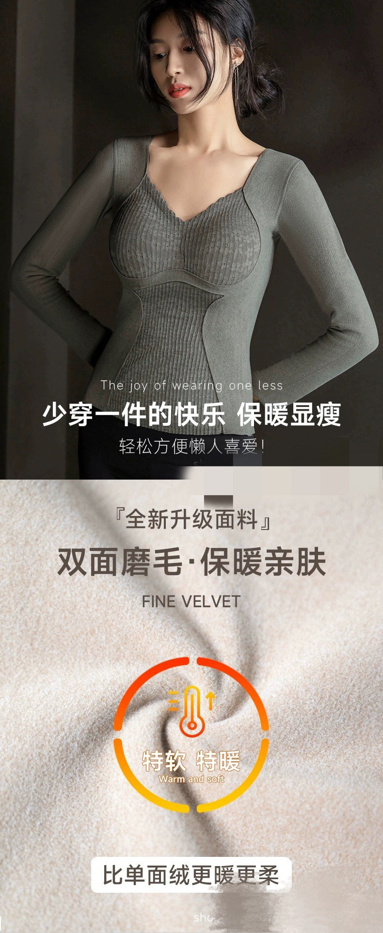 秋冬女士收腹保暖長袖背心帶胸墊加絨加厚無痕打底衫8816長袖