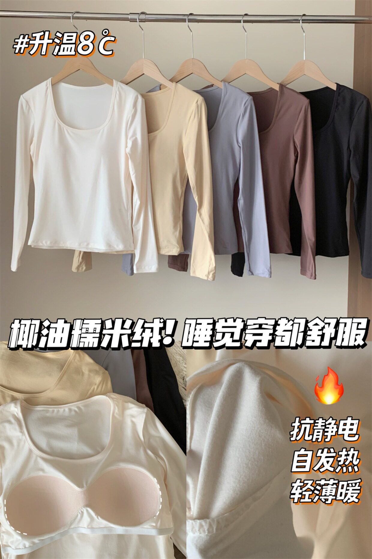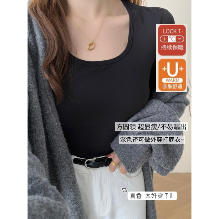 椰油糯米絨/自帶胸墊保暖衣方領無痕自髮熱免穿內衣薄款上衣冬