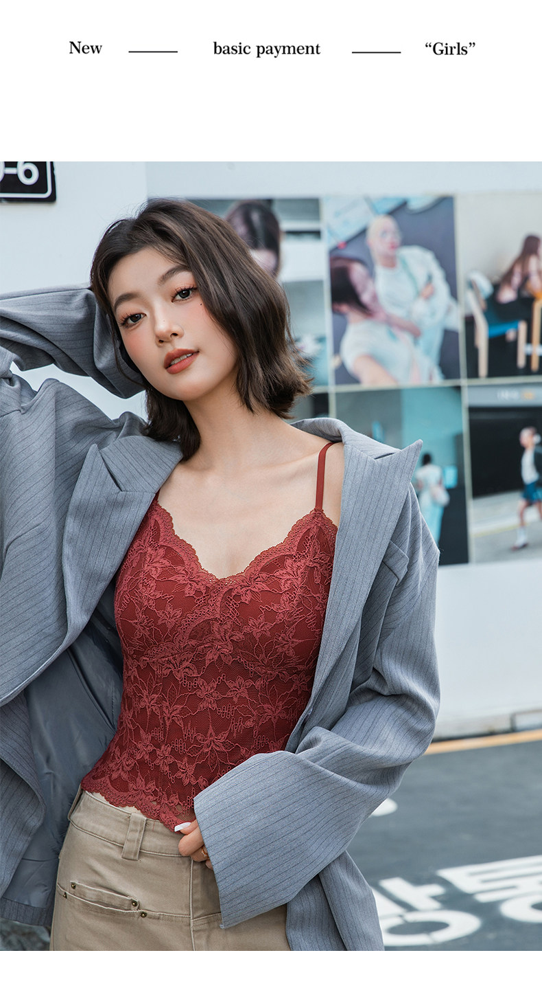 保暖吊帶背心女士2025新款蕾絲上衣可外穿帶胸墊甜辣內搭加絨打底