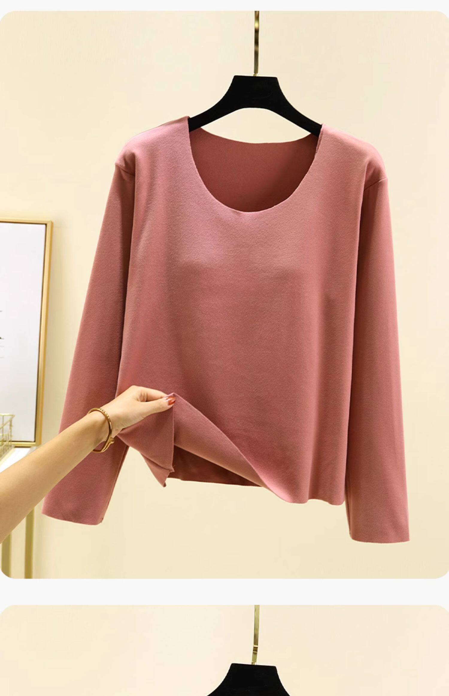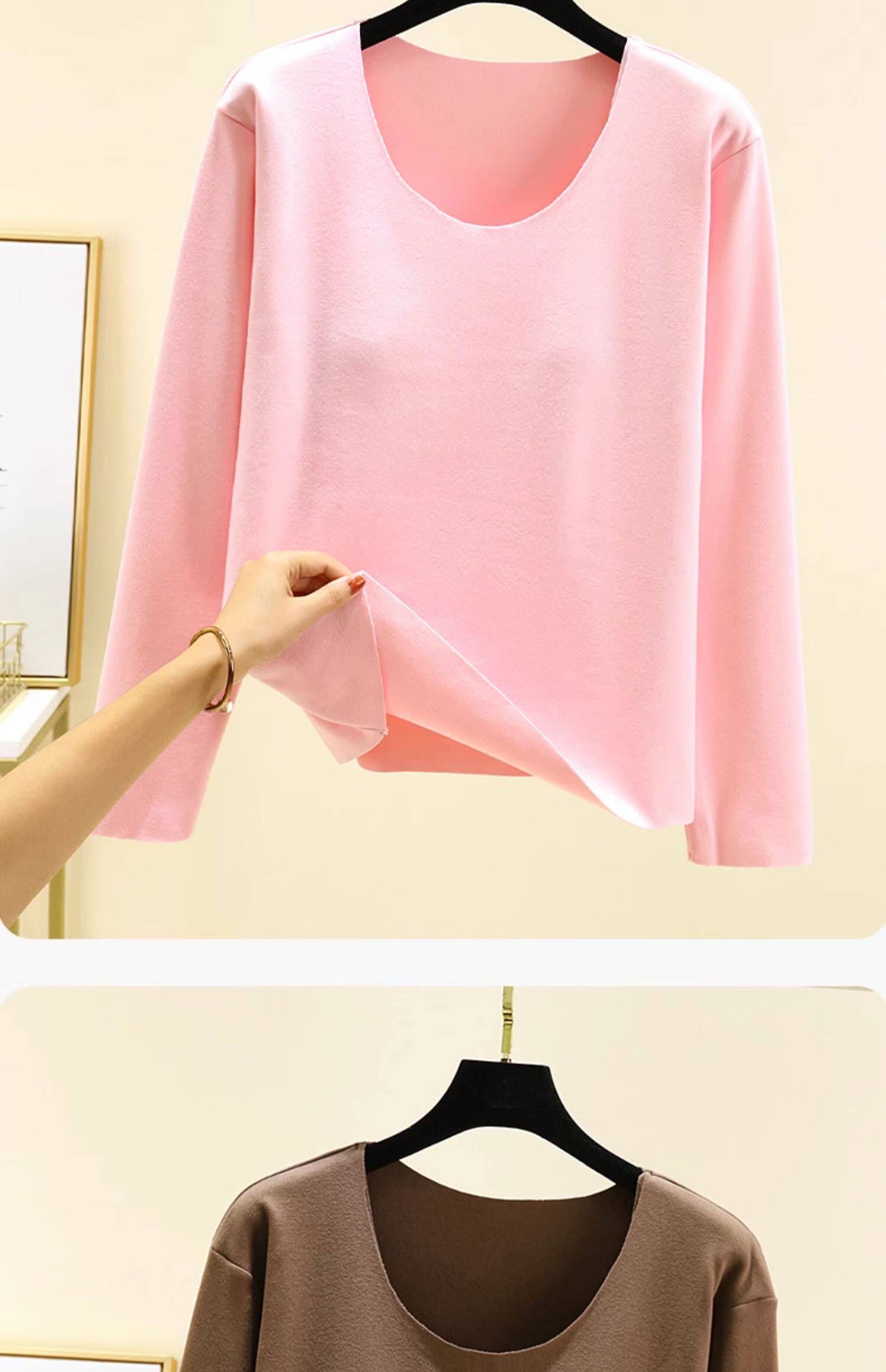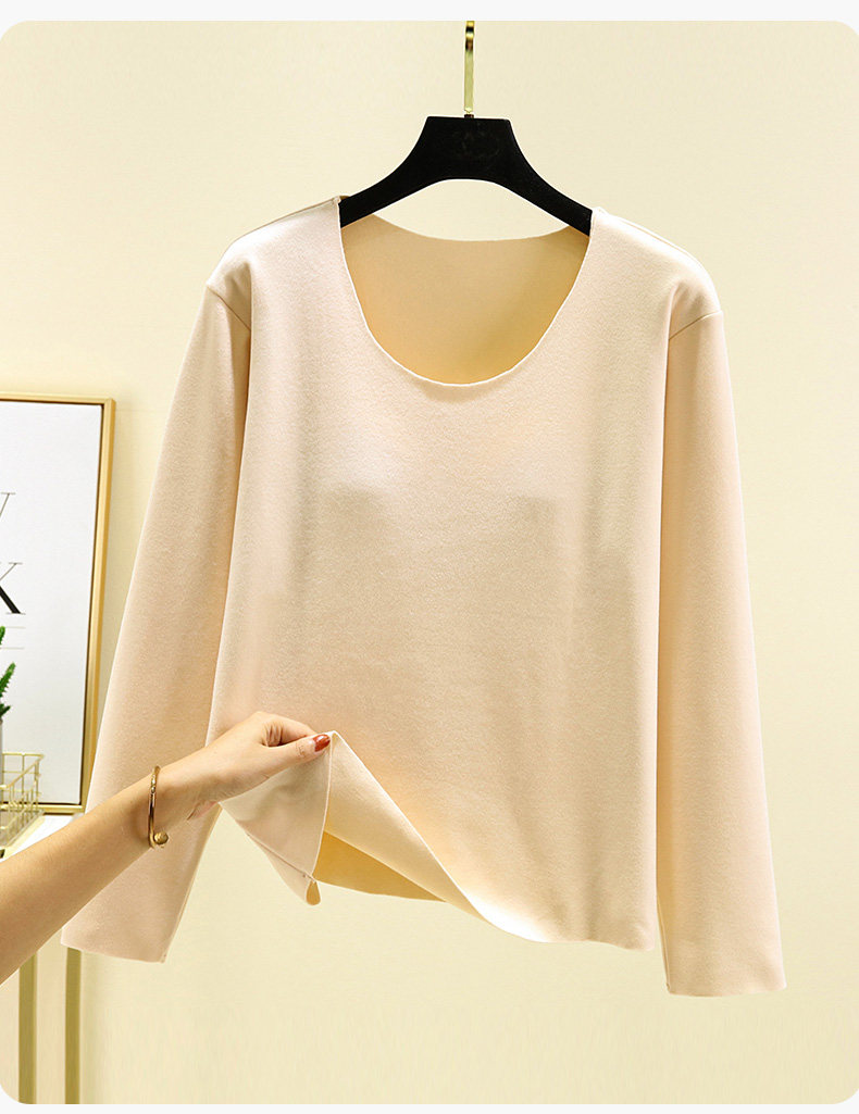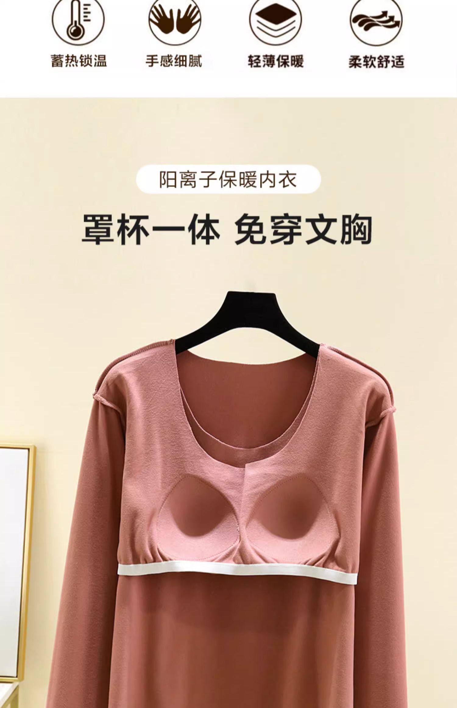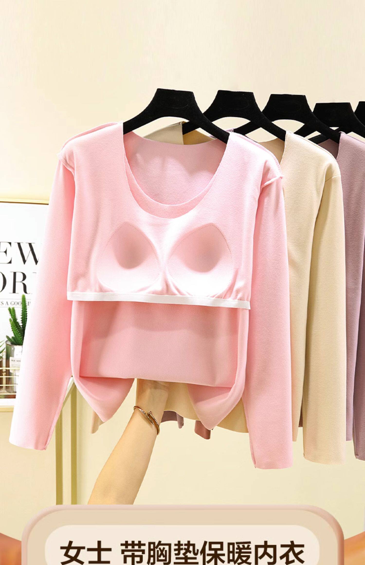 德絨帶胸墊保暖上衣女秋冬加絨加厚圓領內搭秋衣長袖T恤棉打底衫