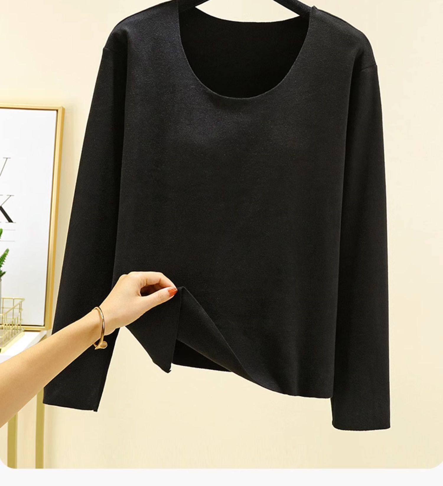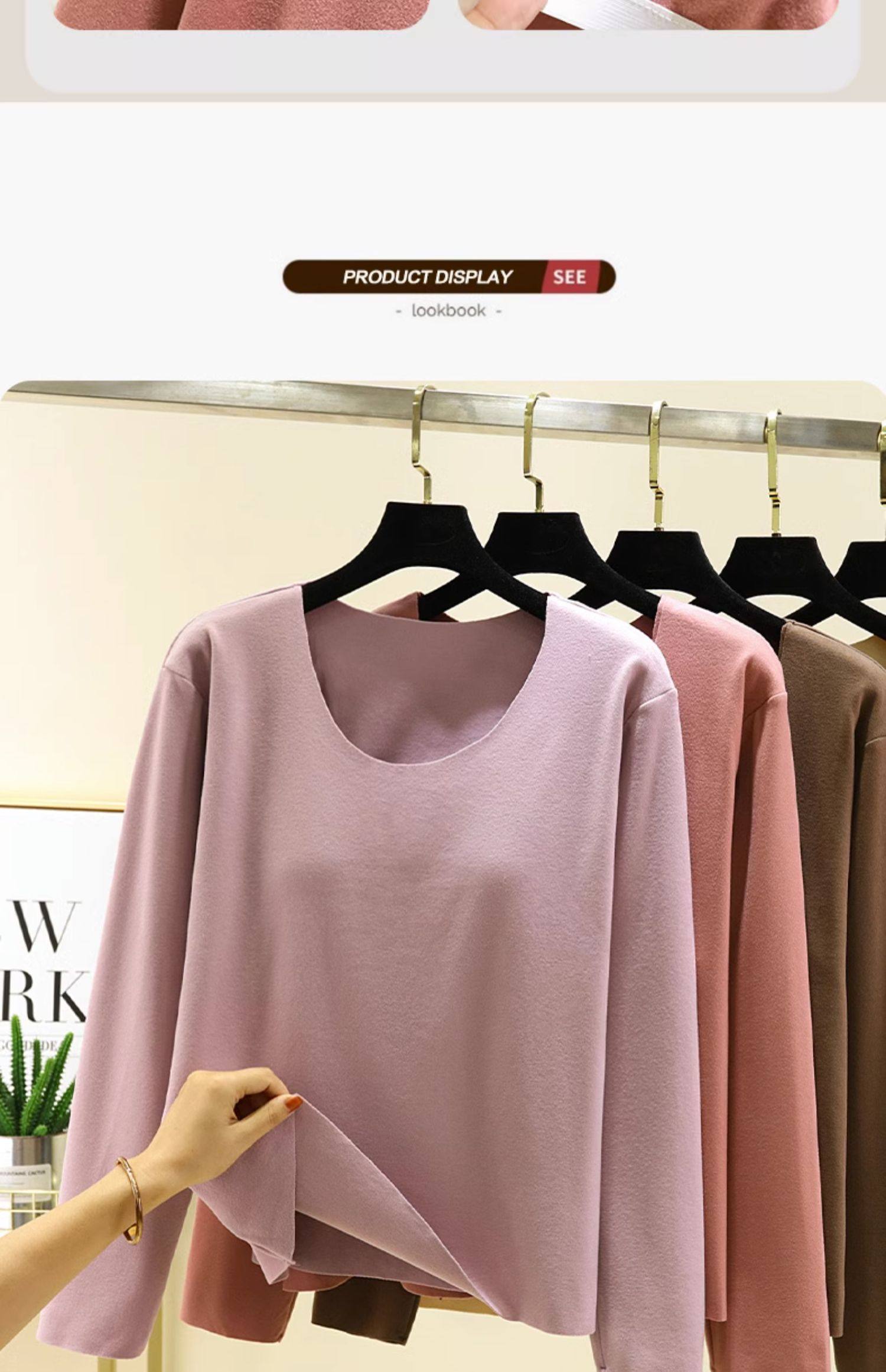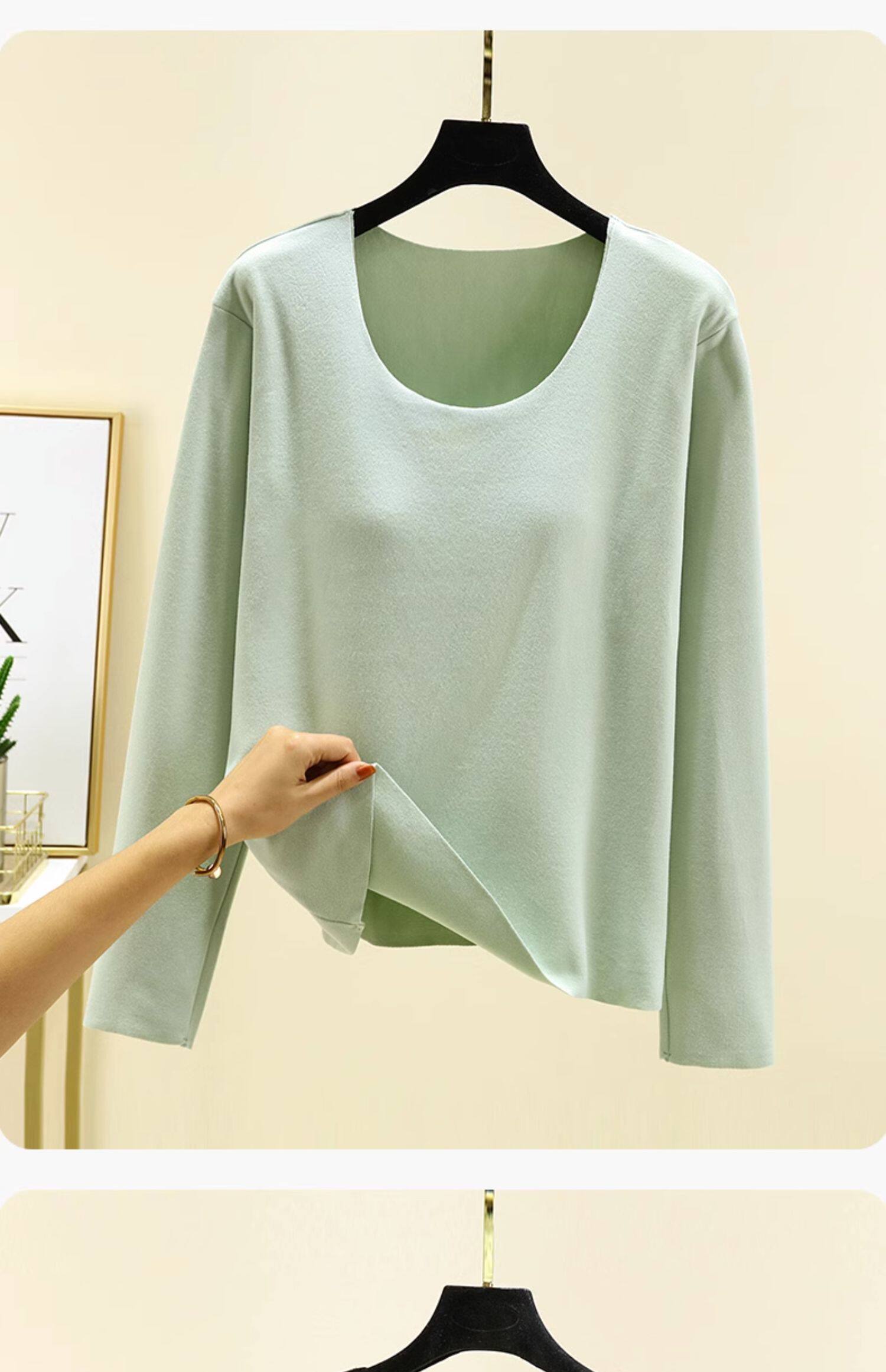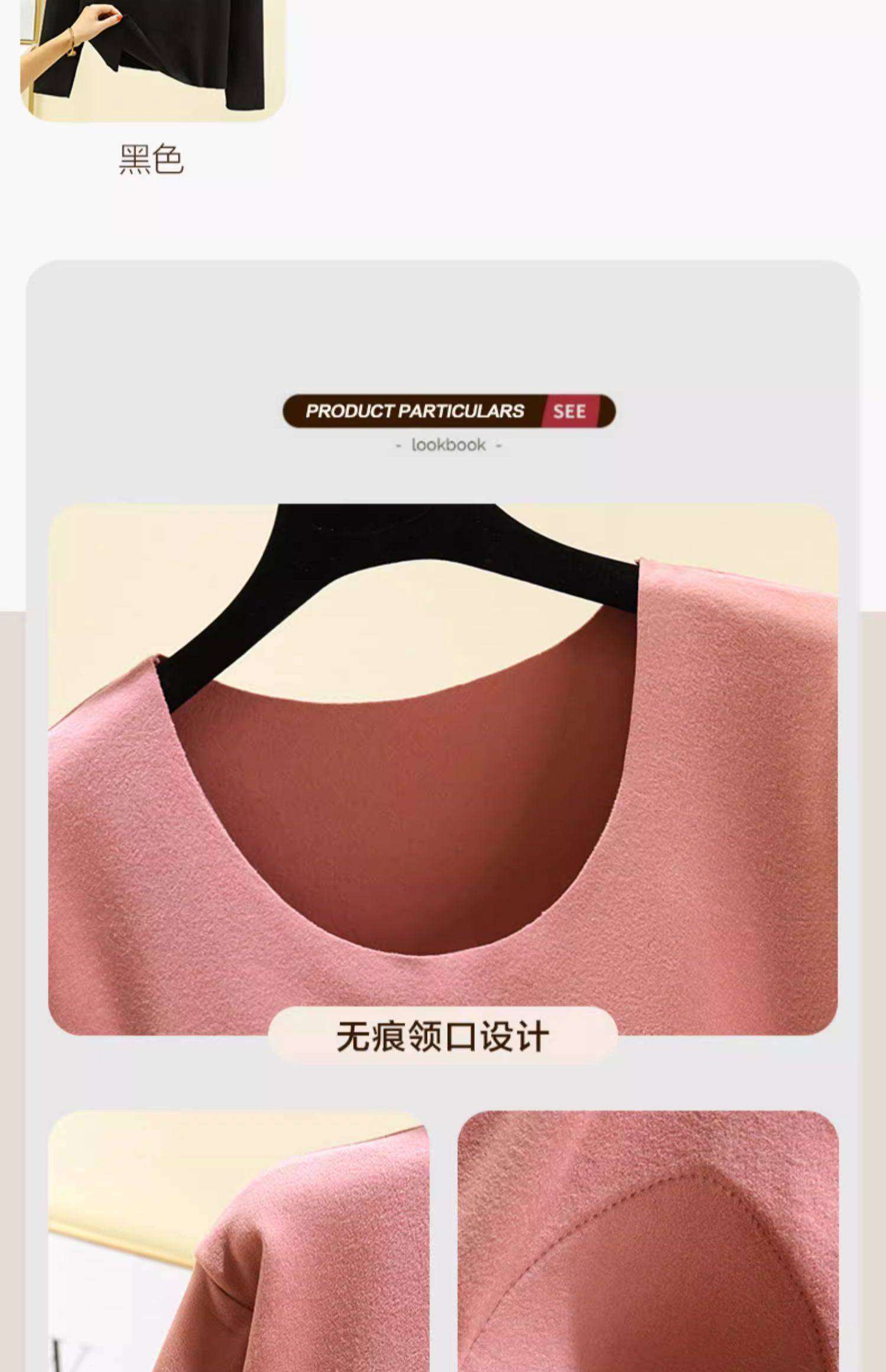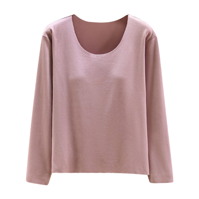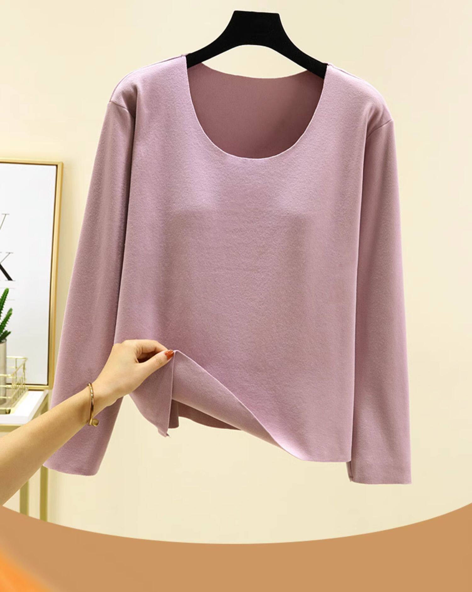 德絨帶胸墊保暖上衣女秋冬加絨加厚圓領內搭秋衣長袖T恤棉打底衫