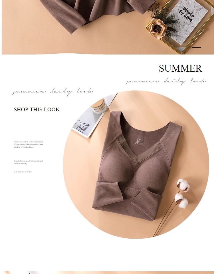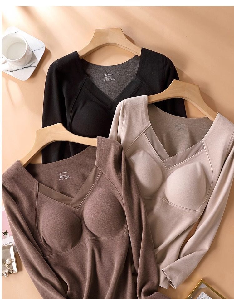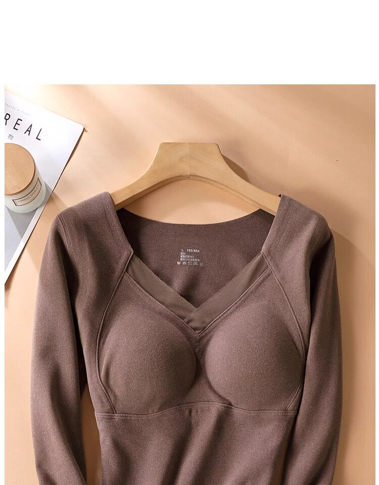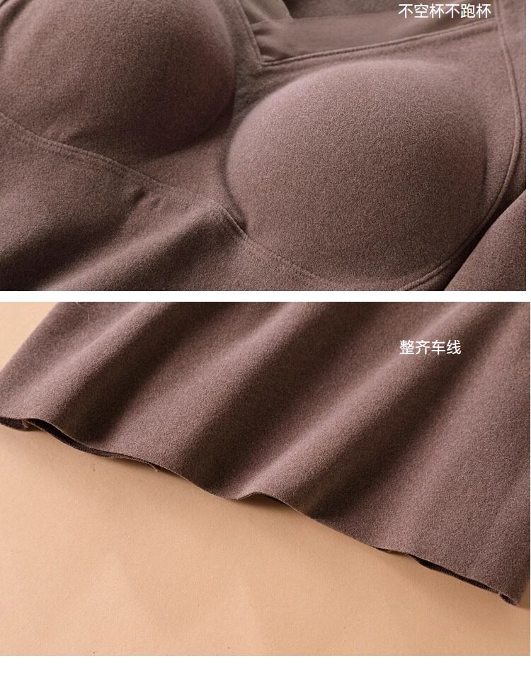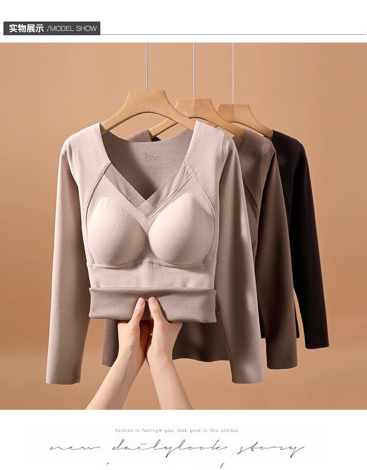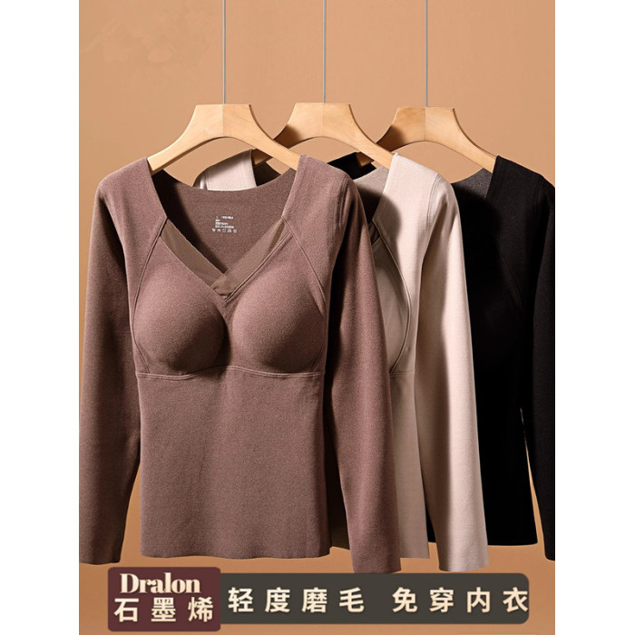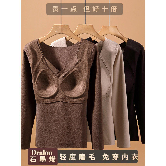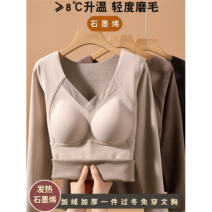 石墨烯保暖內衣女長袖帶胸墊固定杯加絨加厚2025冬季鎖溫髮熱上衣