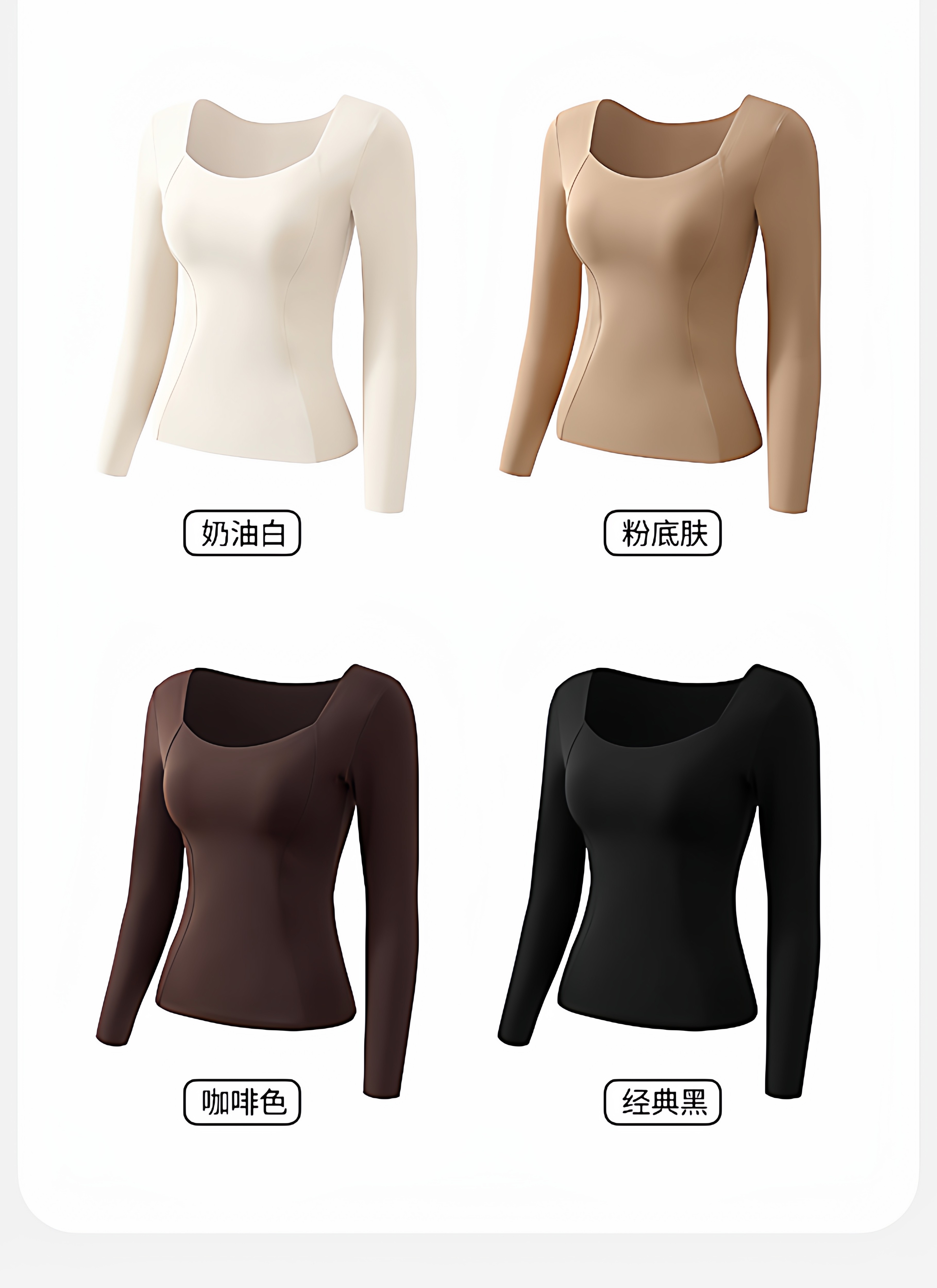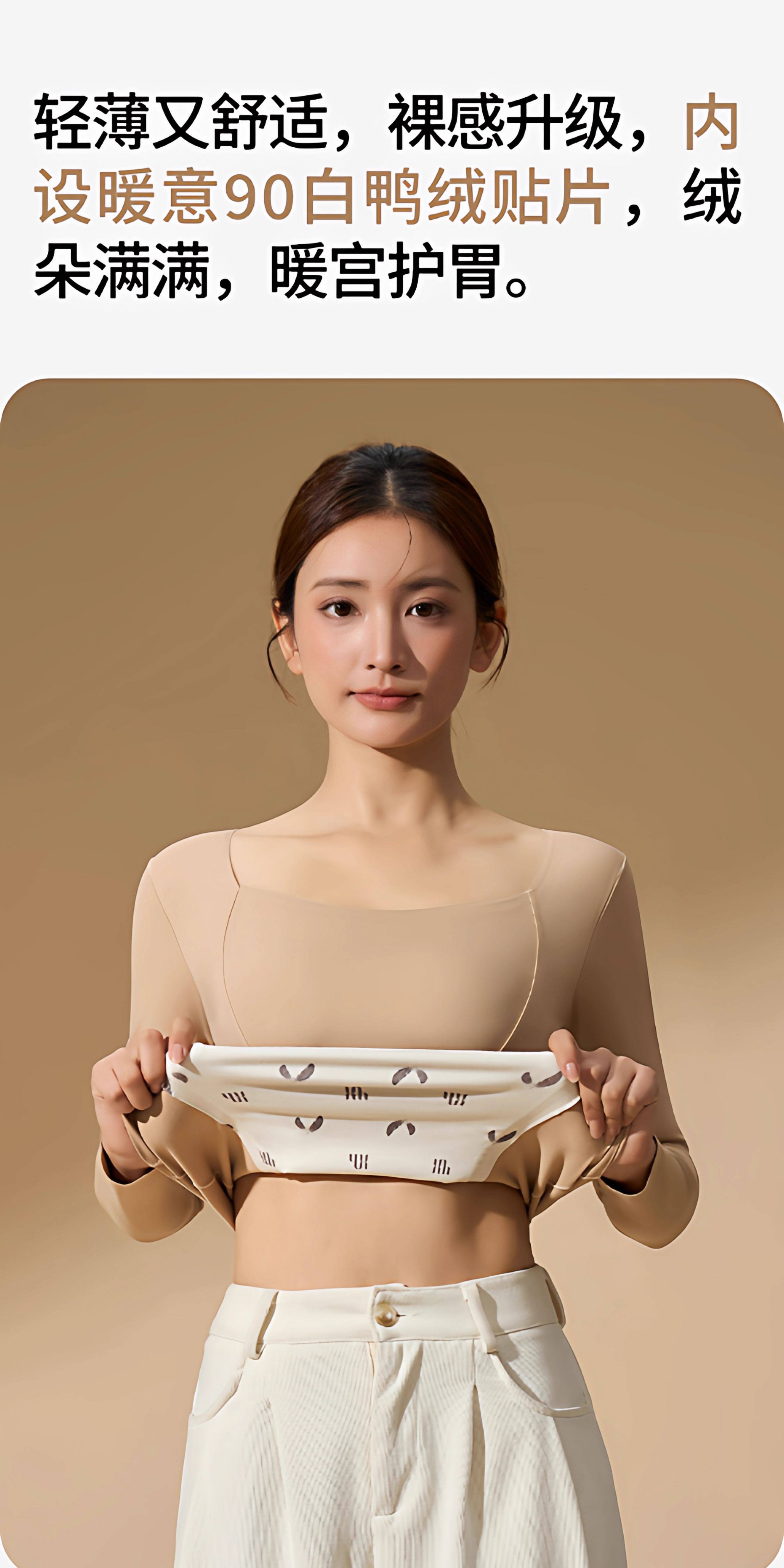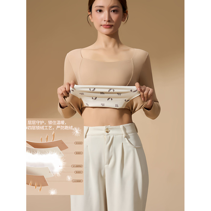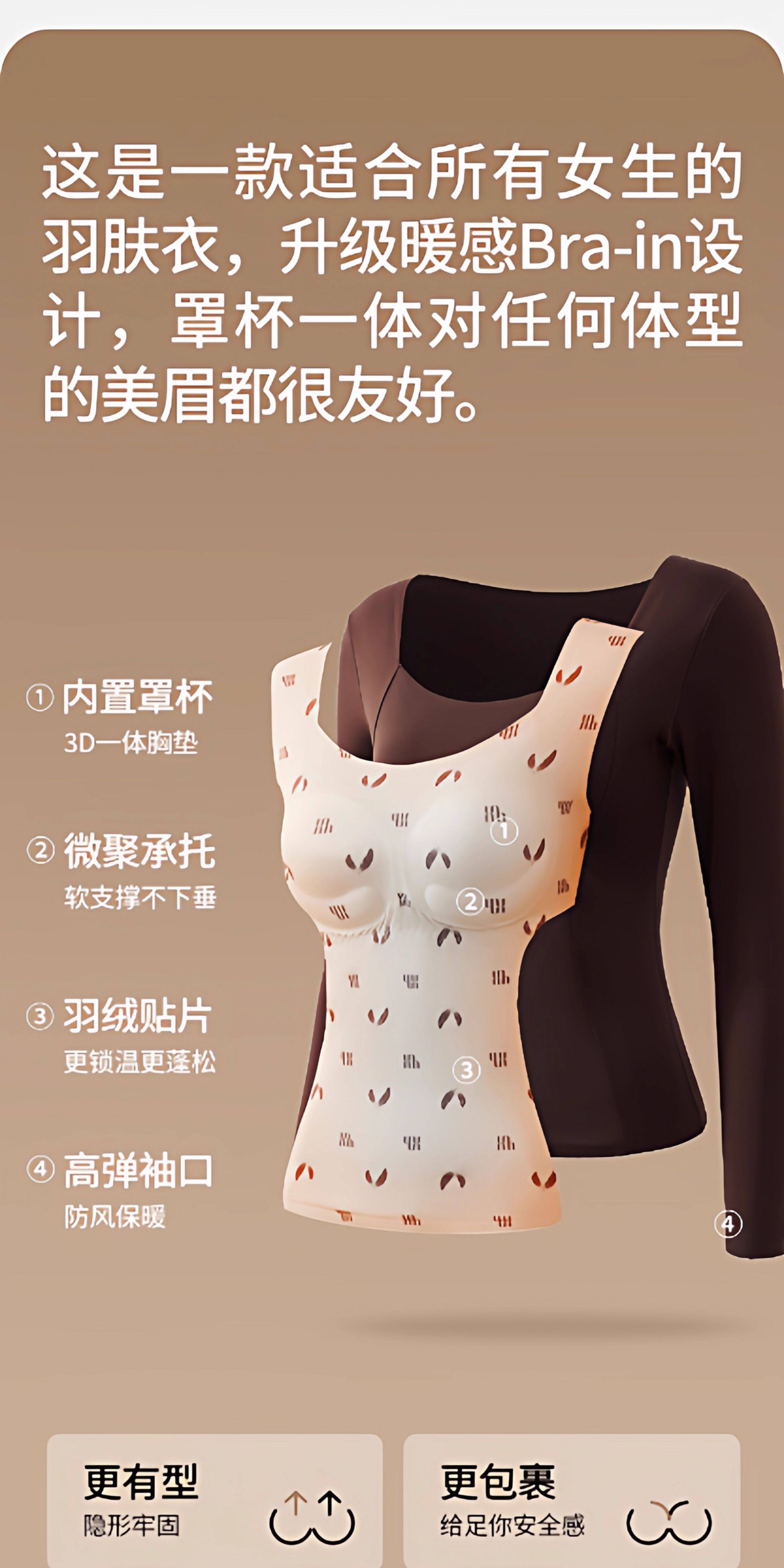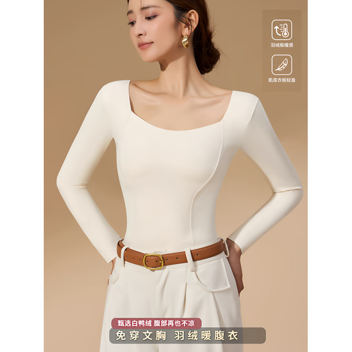2025冬羽絨保暖內衣女長袖帶胸墊固定杯加絨加厚秋季打底無痕內穿