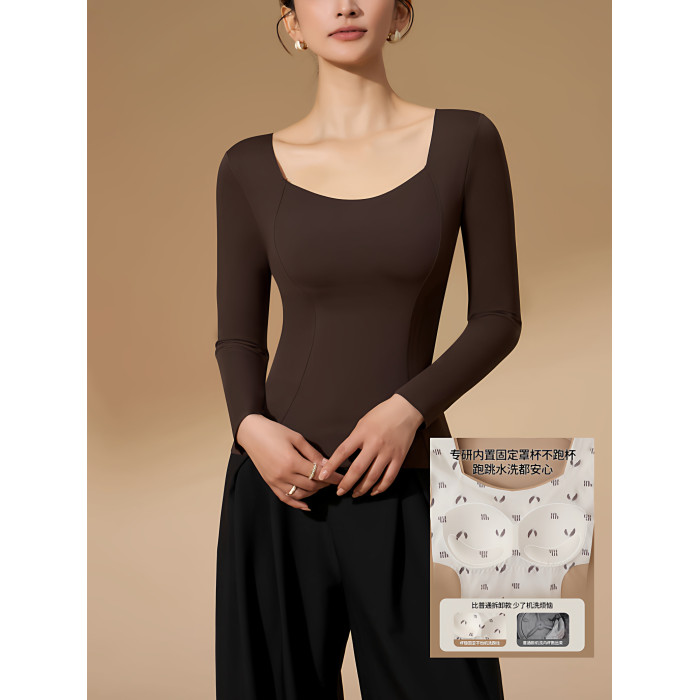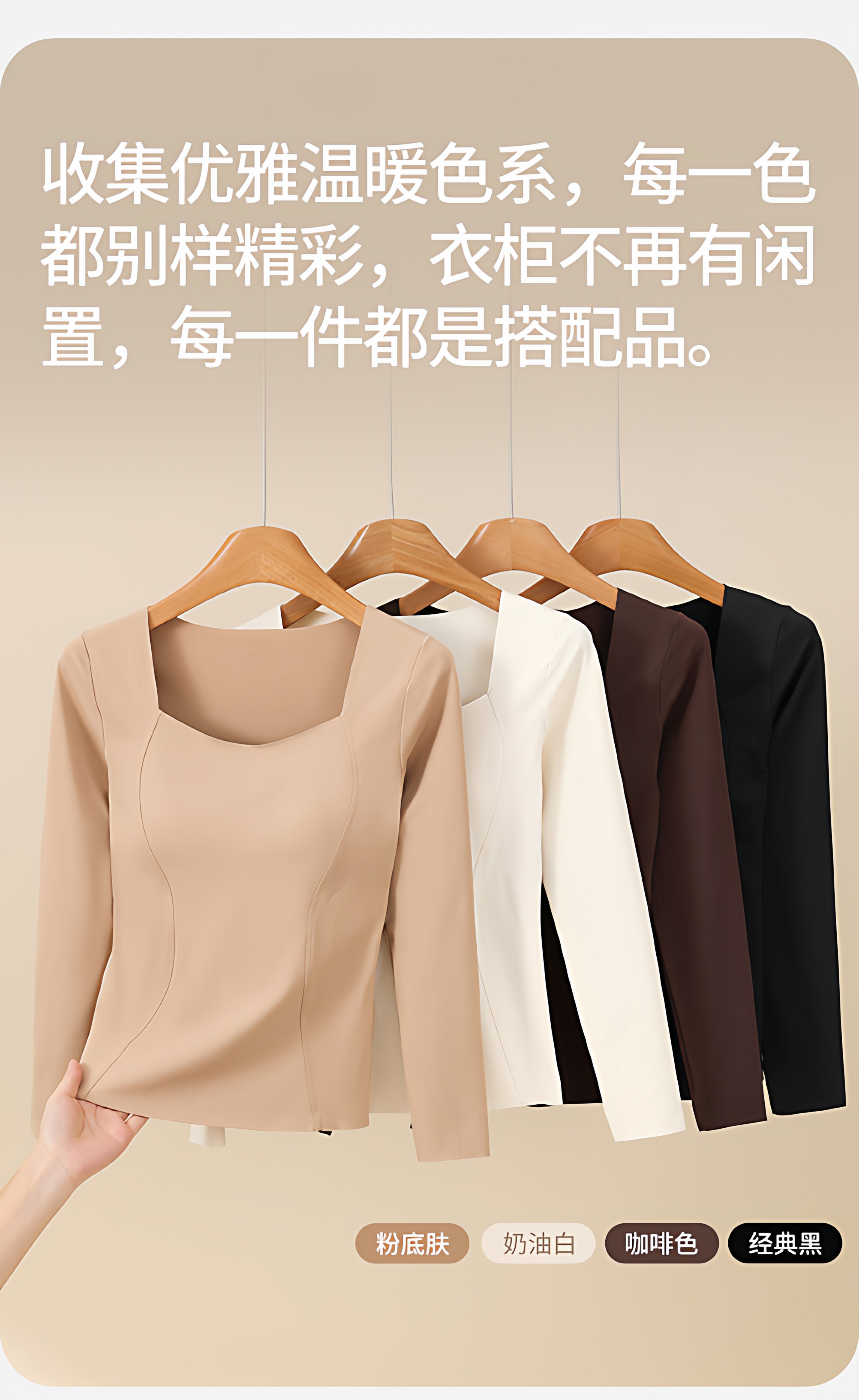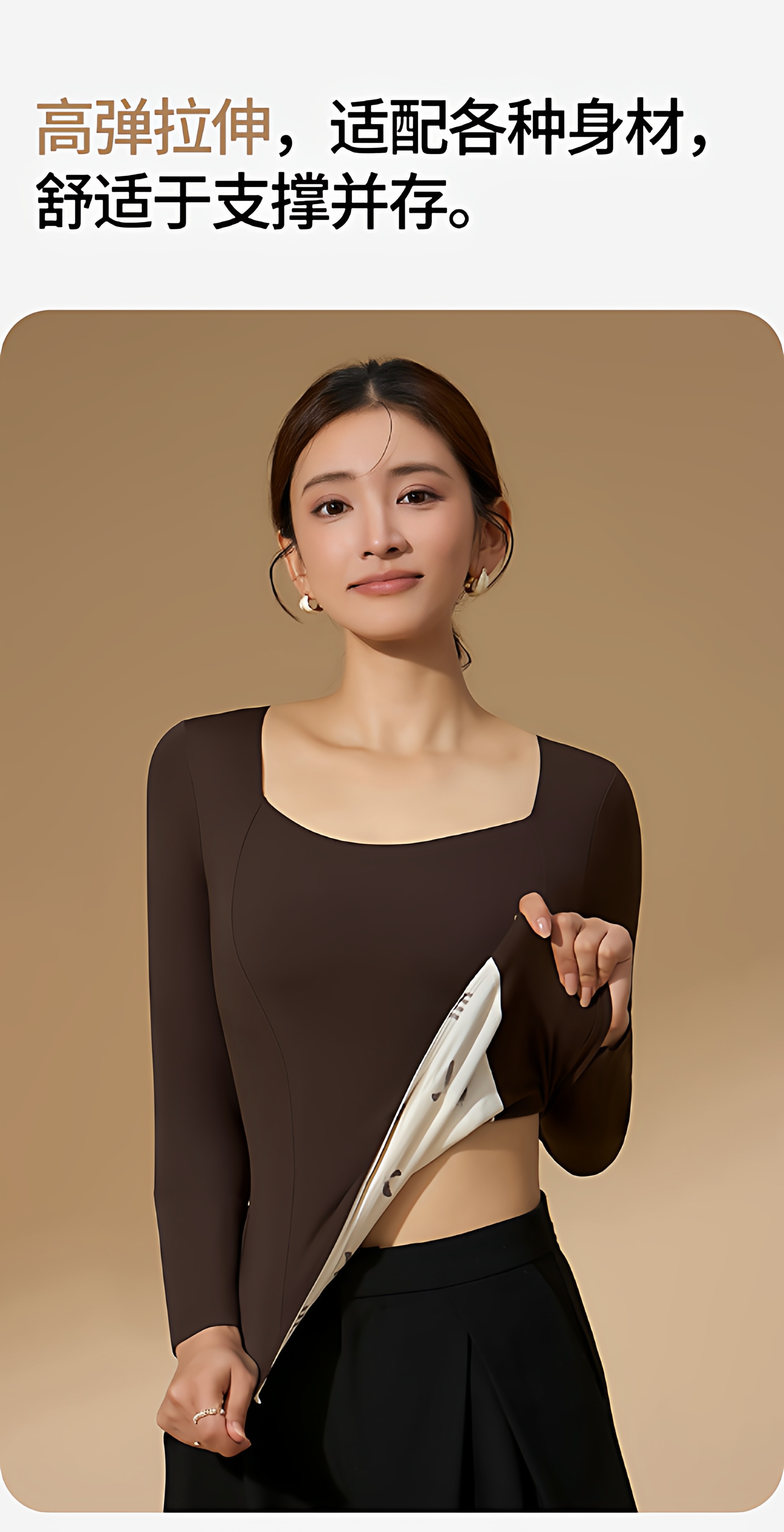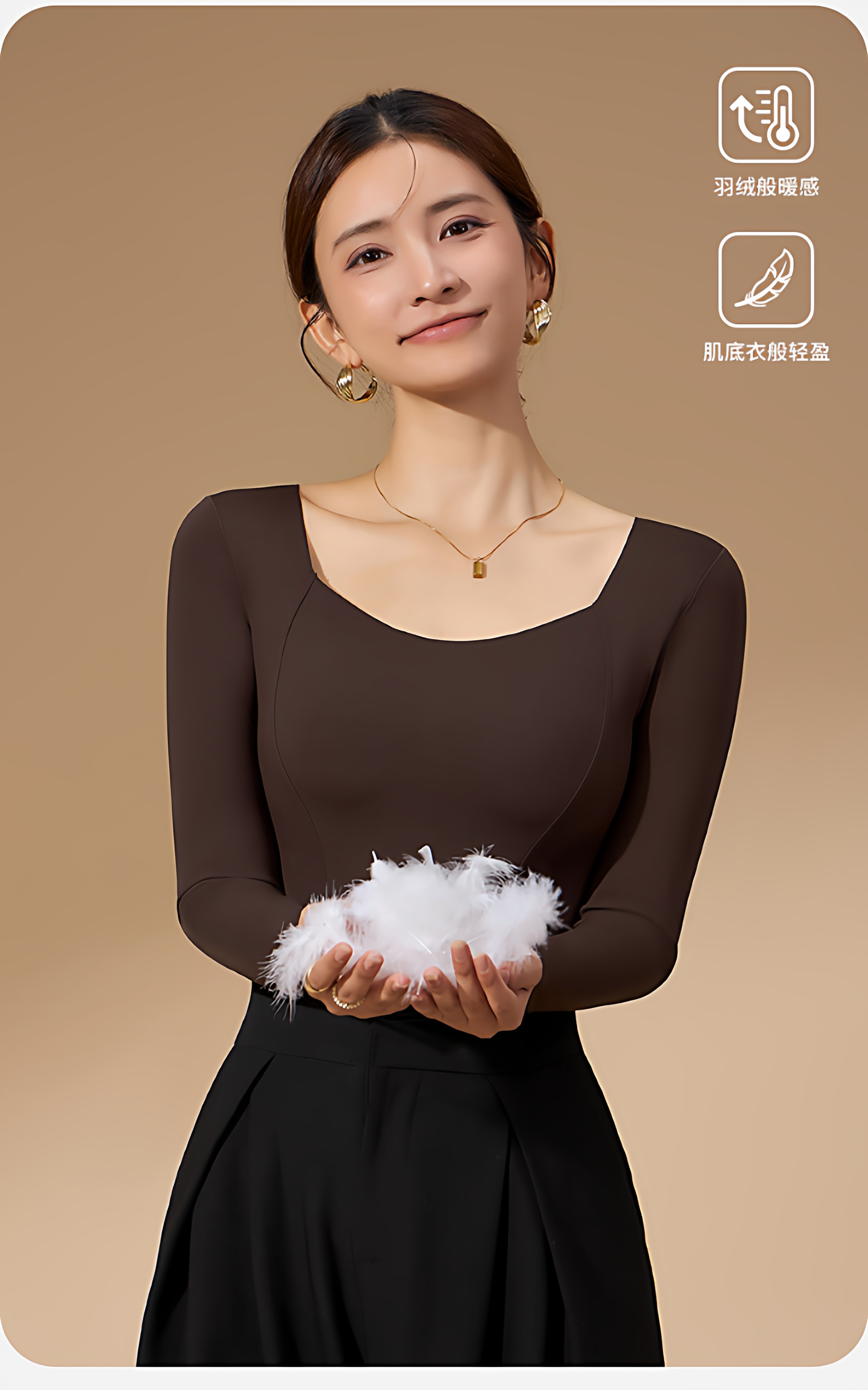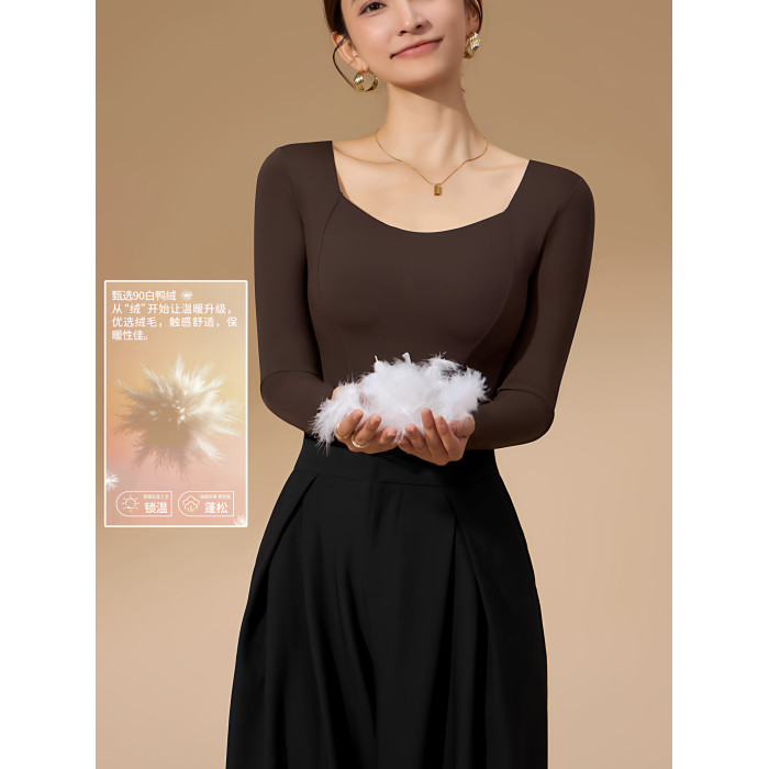 2025冬羽絨保暖內衣女長袖帶胸墊固定杯加絨加厚秋季打底無痕內穿
