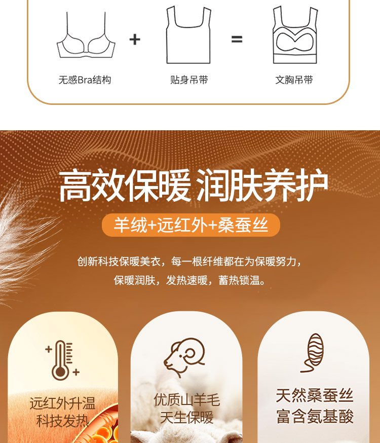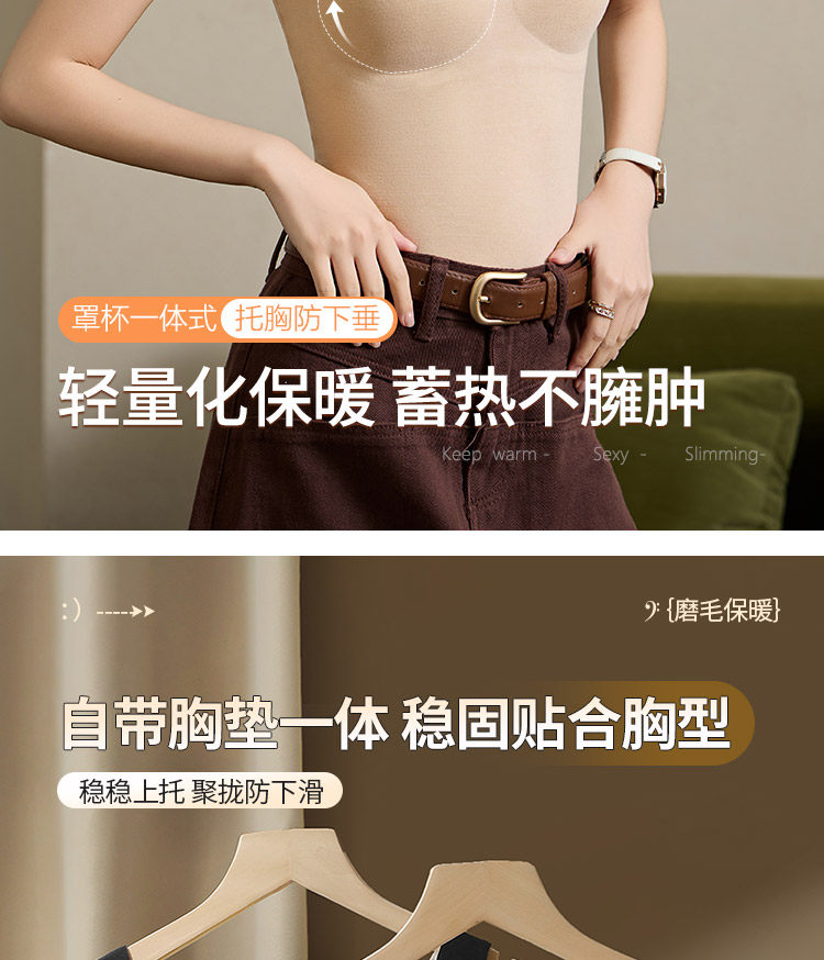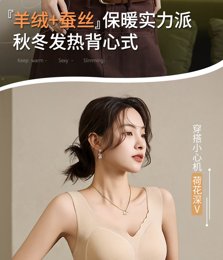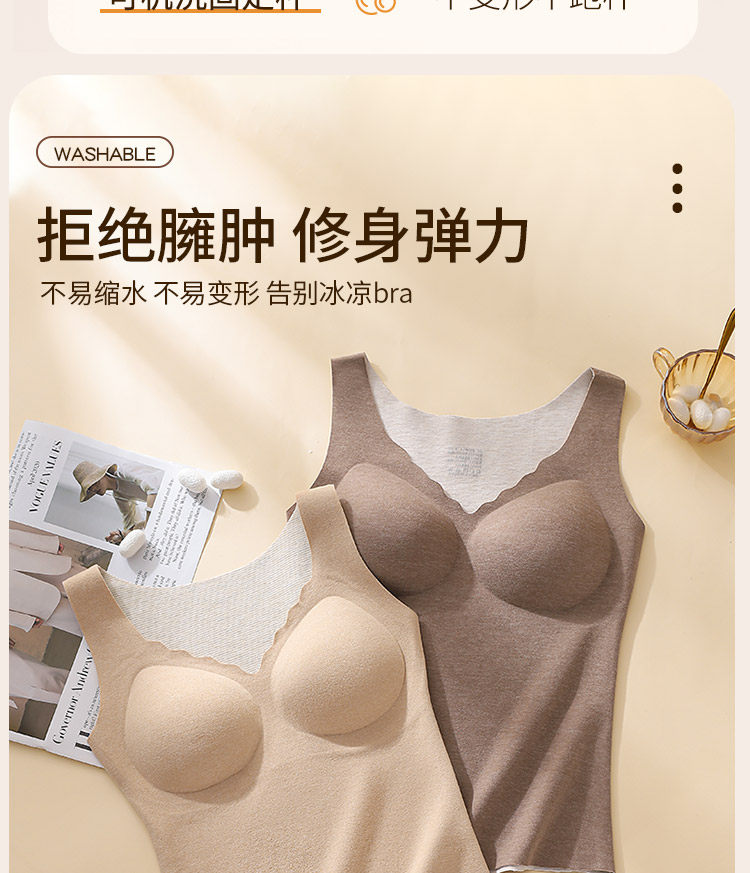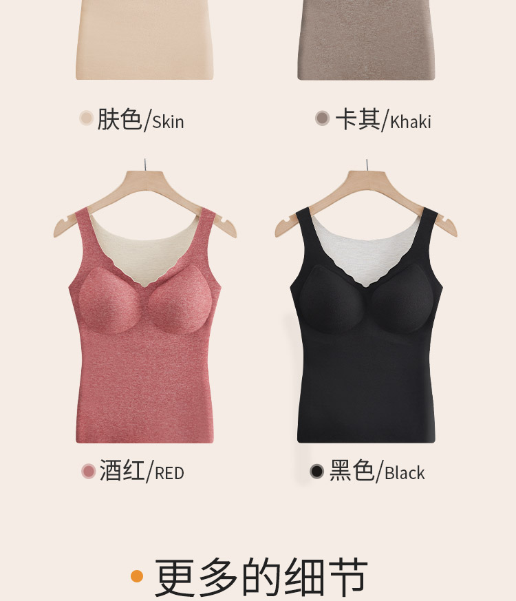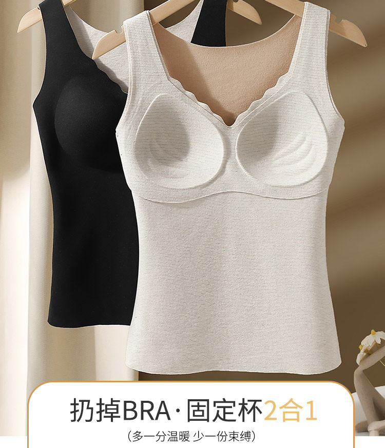 羊絨保暖背心女帶胸墊秋冬加絨吊帶胸罩一體式內衣冬季內搭打底衫