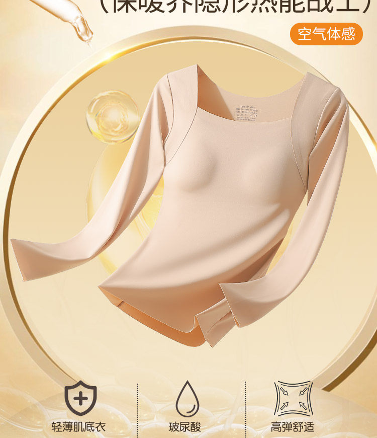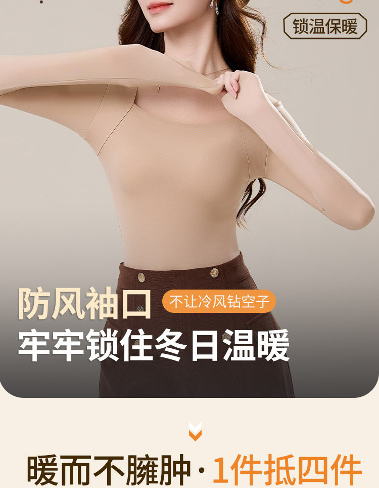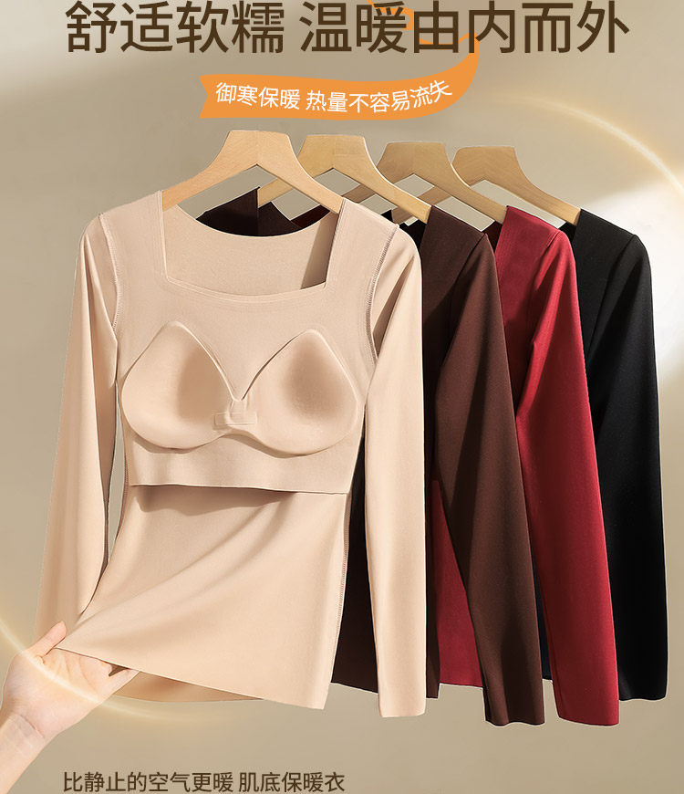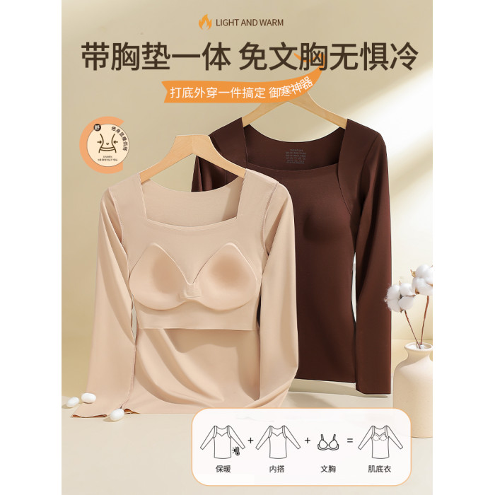 保暖內衣女帶胸墊免穿文胸超薄無痕打底衫內搭髮熱美膚肌底衣秋衣