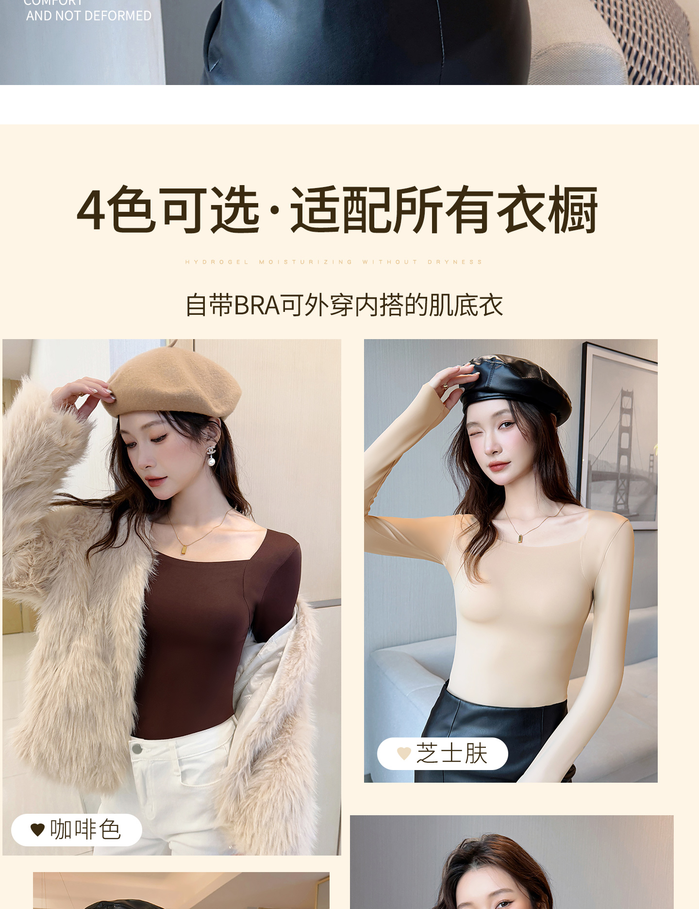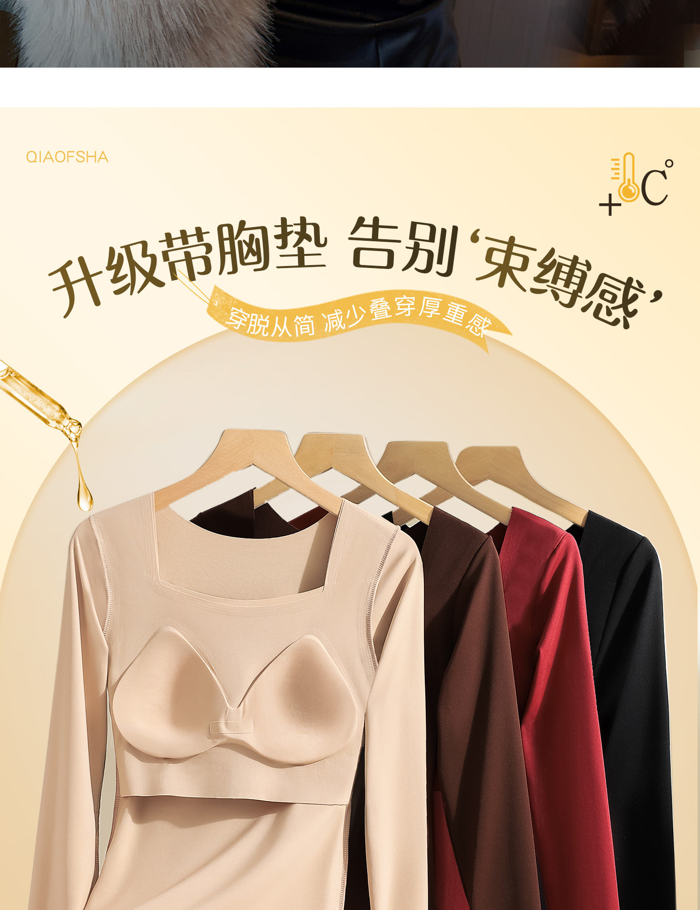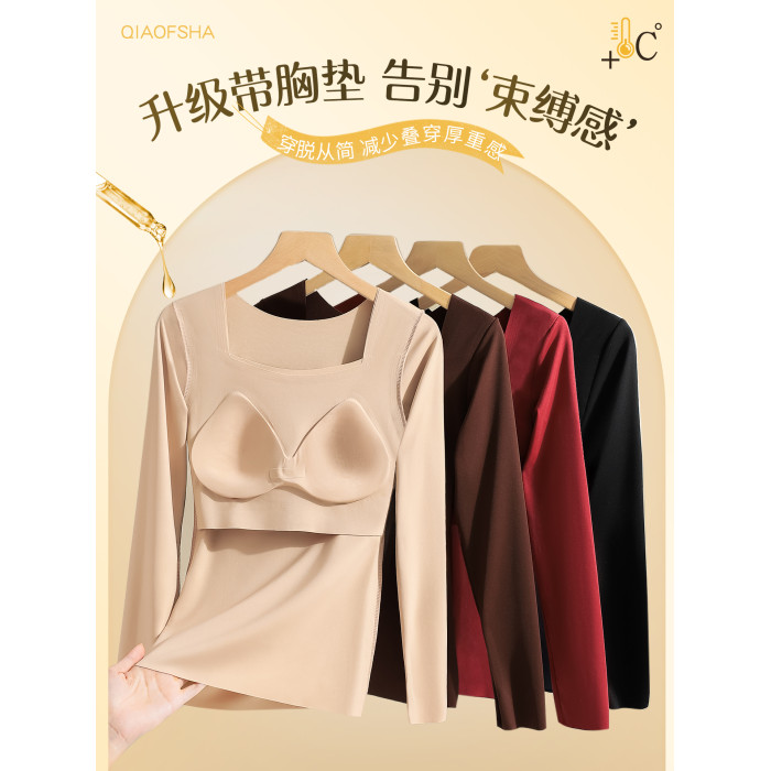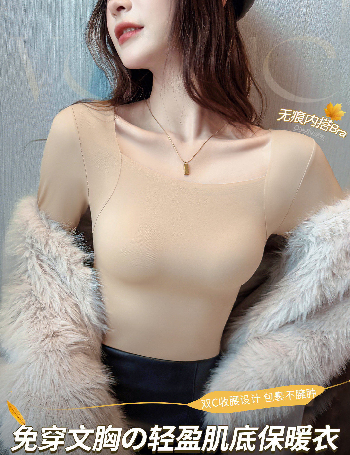 保暖內衣女帶胸墊一體免穿文胸女士美膚肌底衣髮熱內搭打底衫上衣