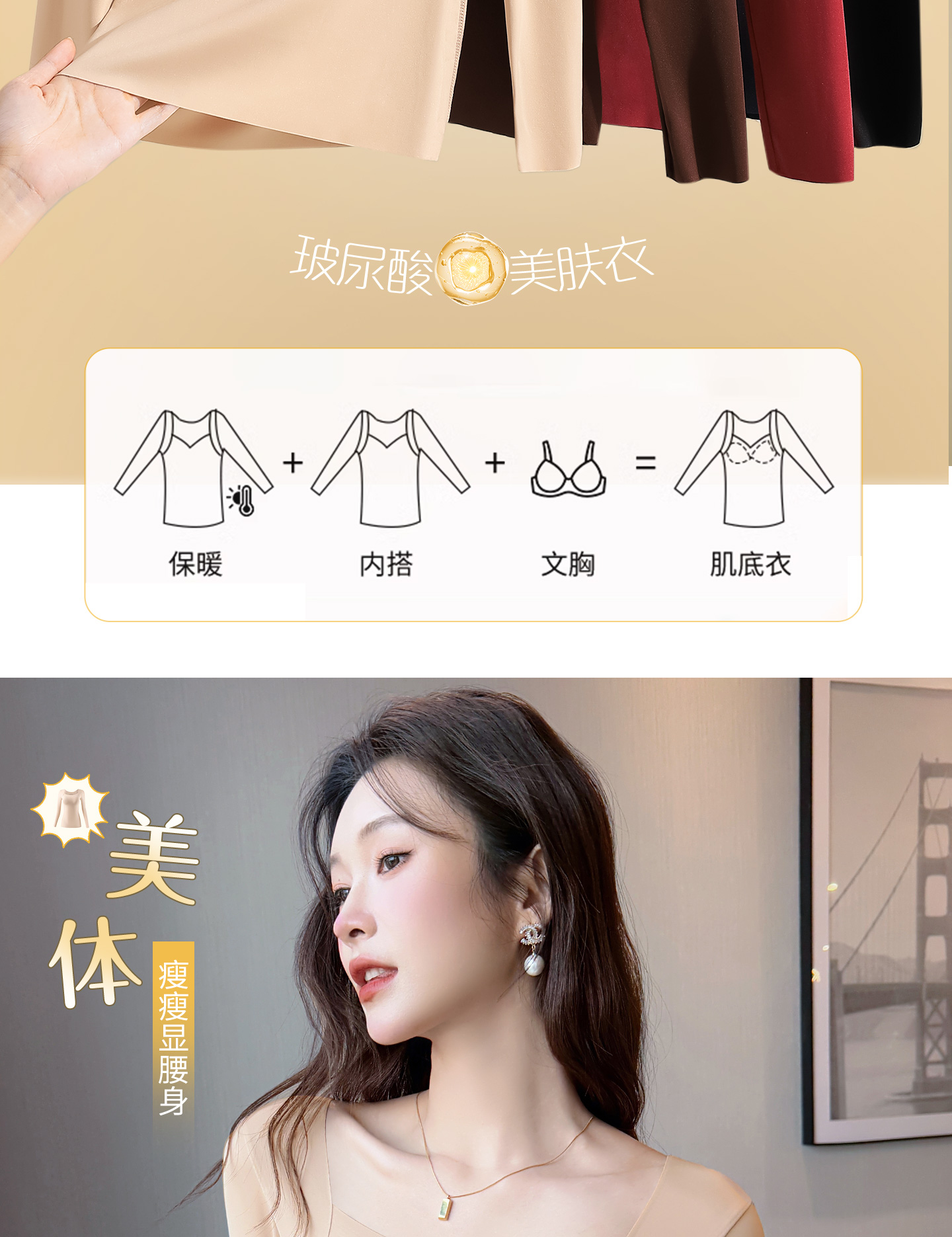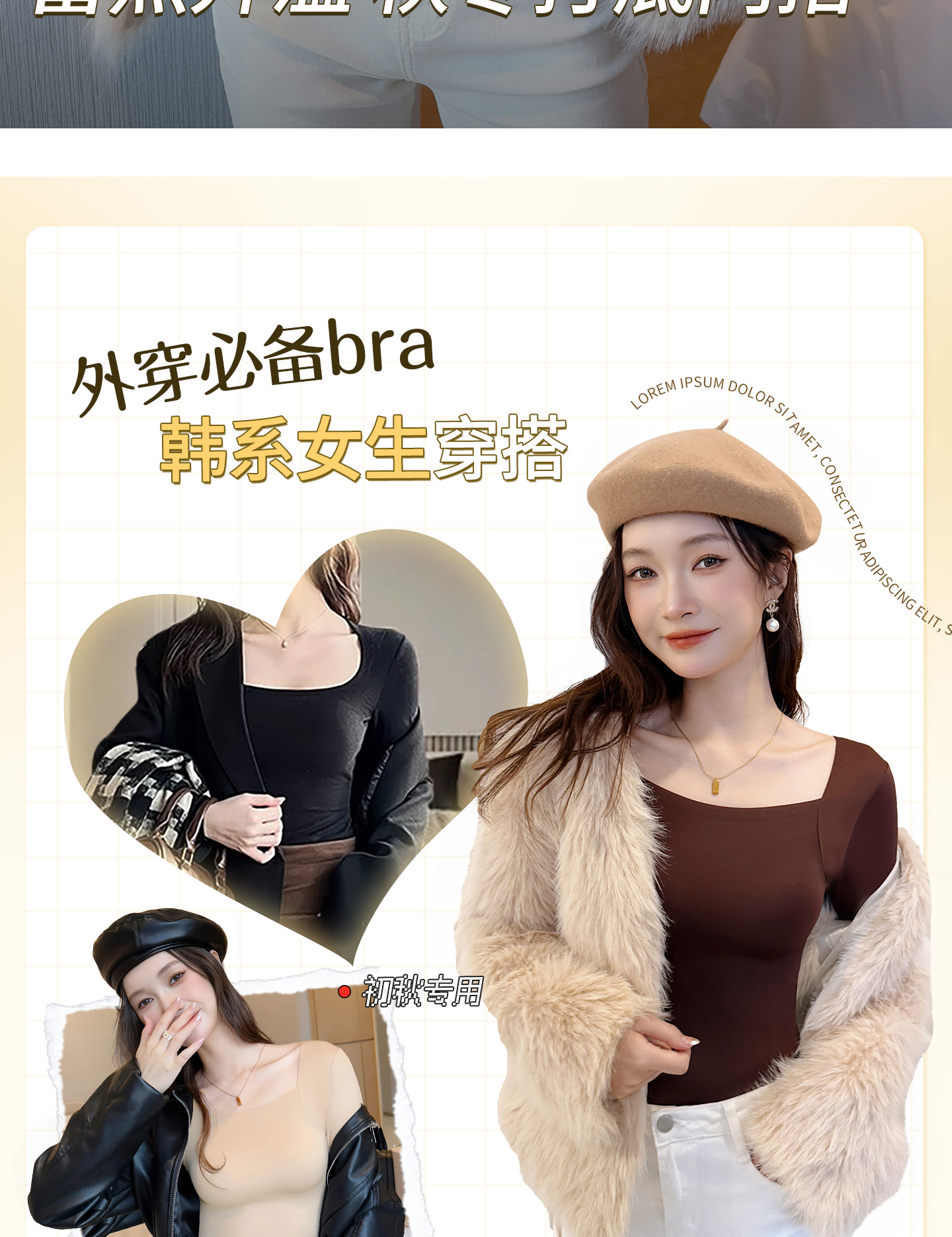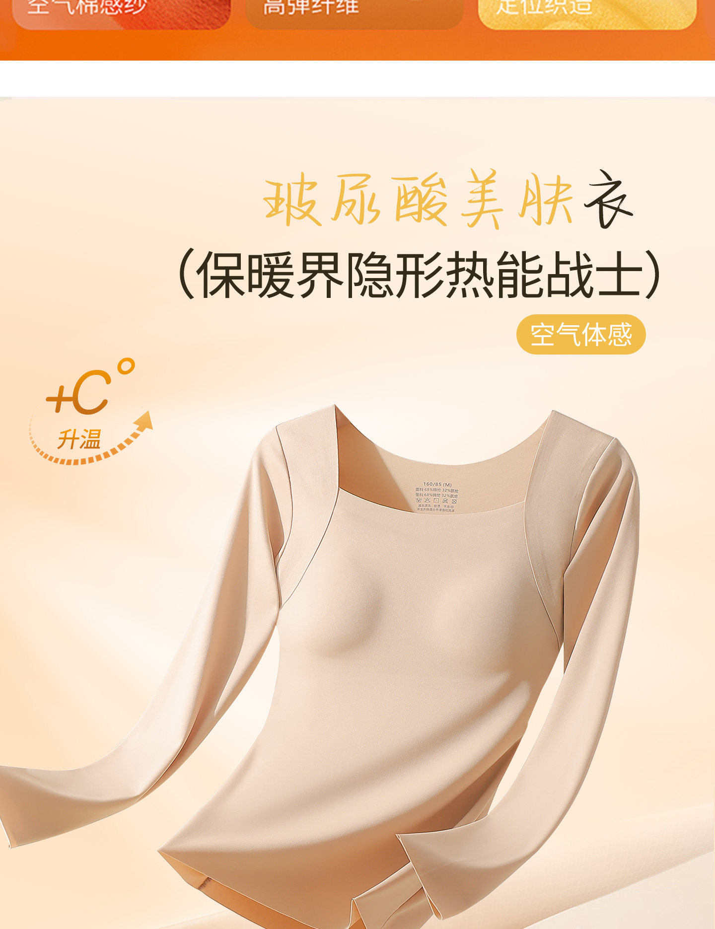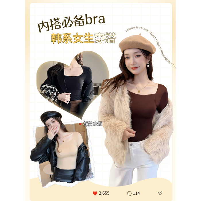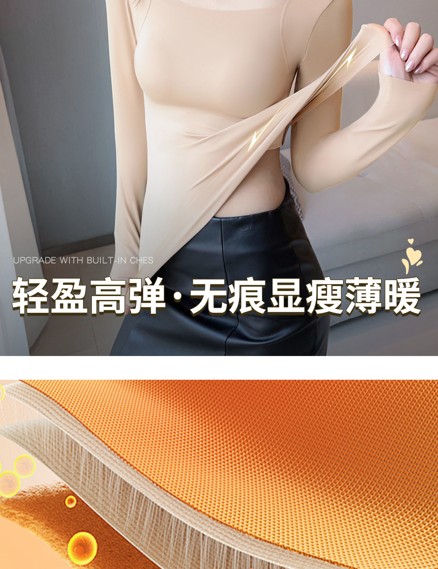 保暖內衣女帶胸墊一體免穿文胸女士美膚肌底衣髮熱內搭打底衫上衣