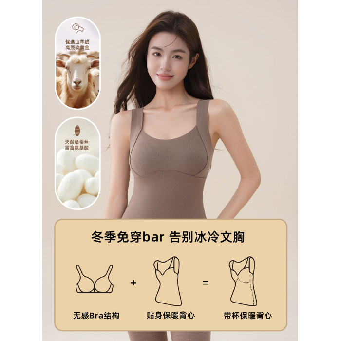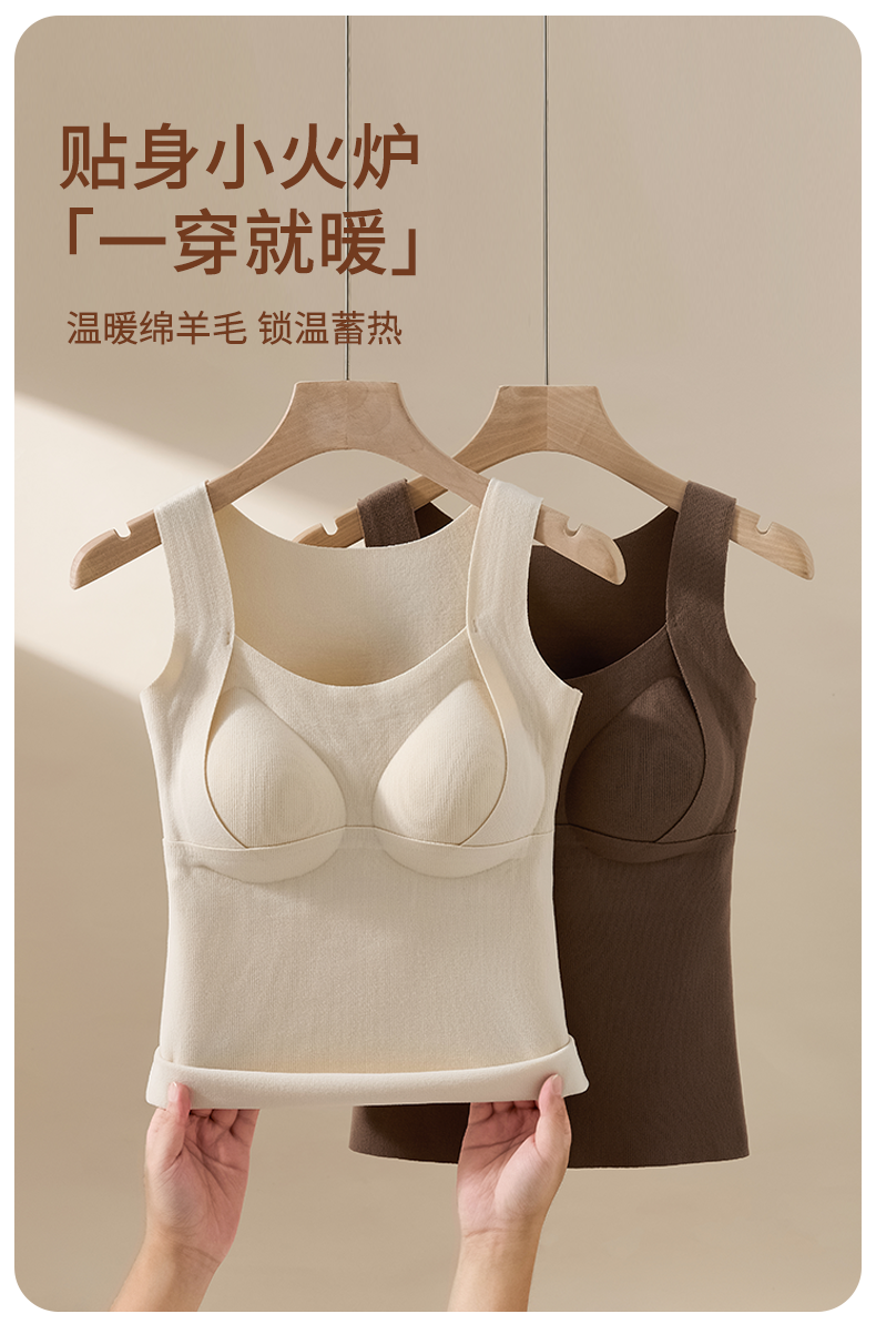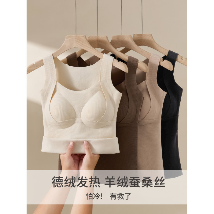 德絨保暖吊帶背心女士冬季女款2025新款加絨帶胸墊內衣內搭打底衣