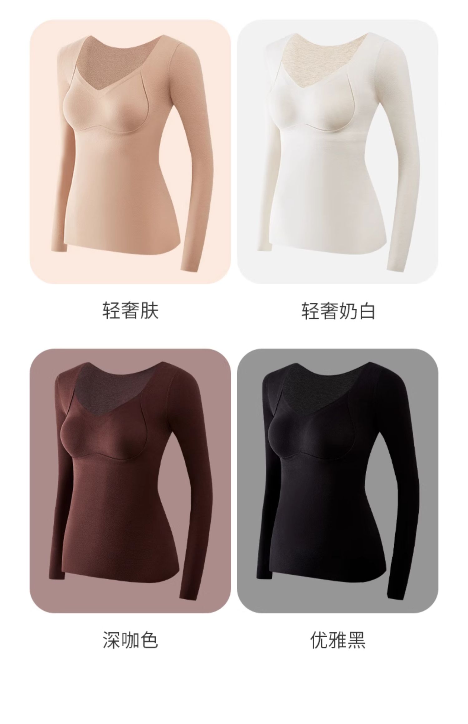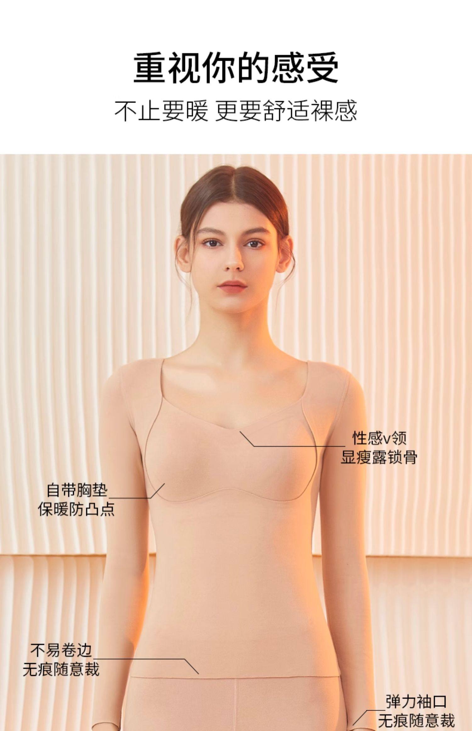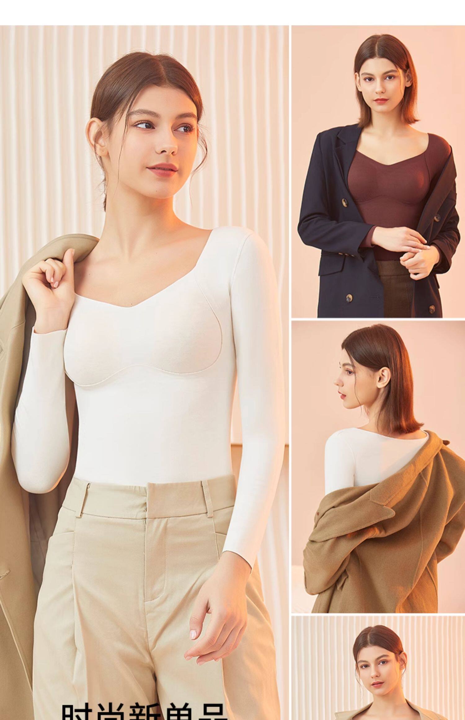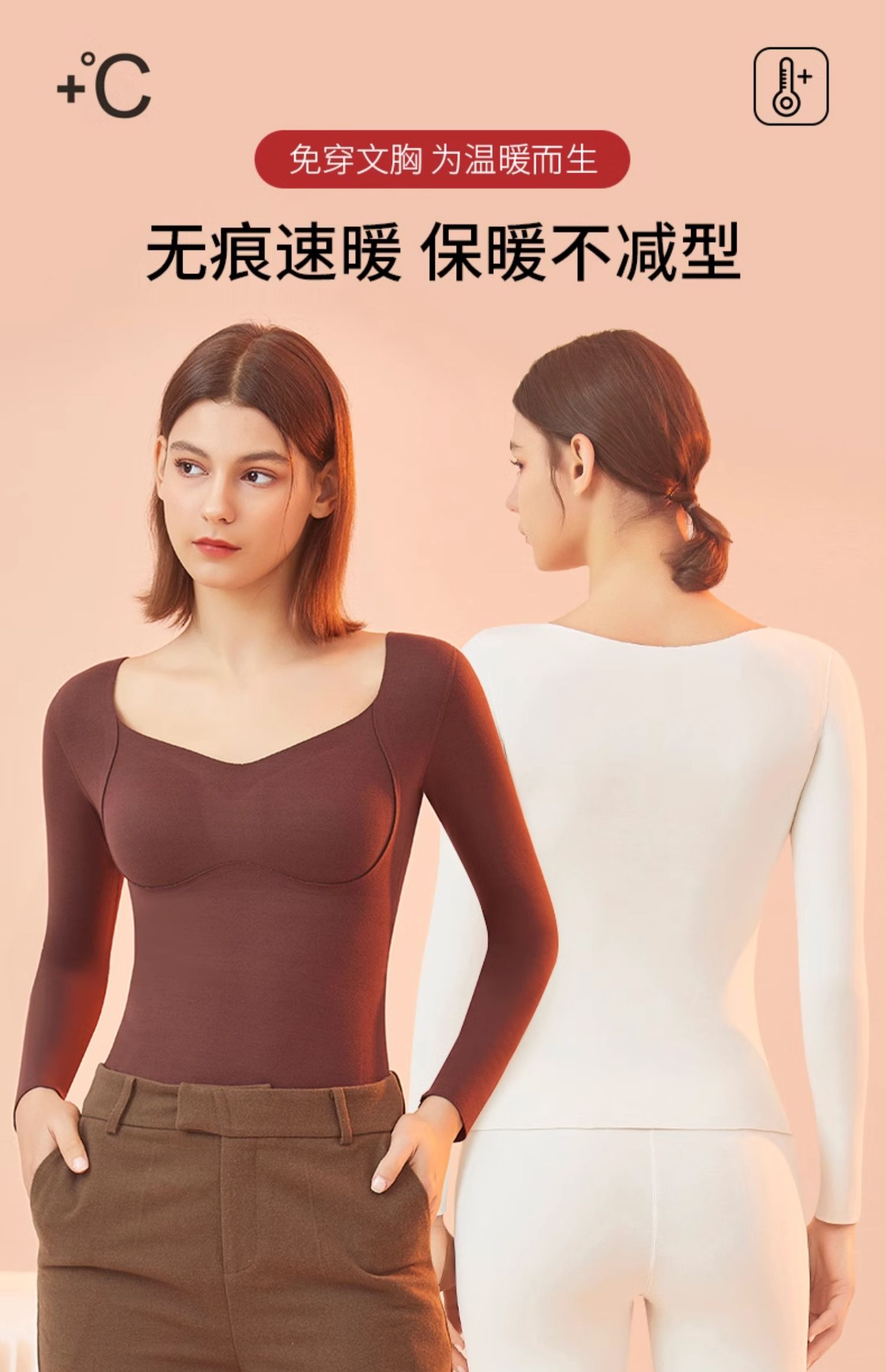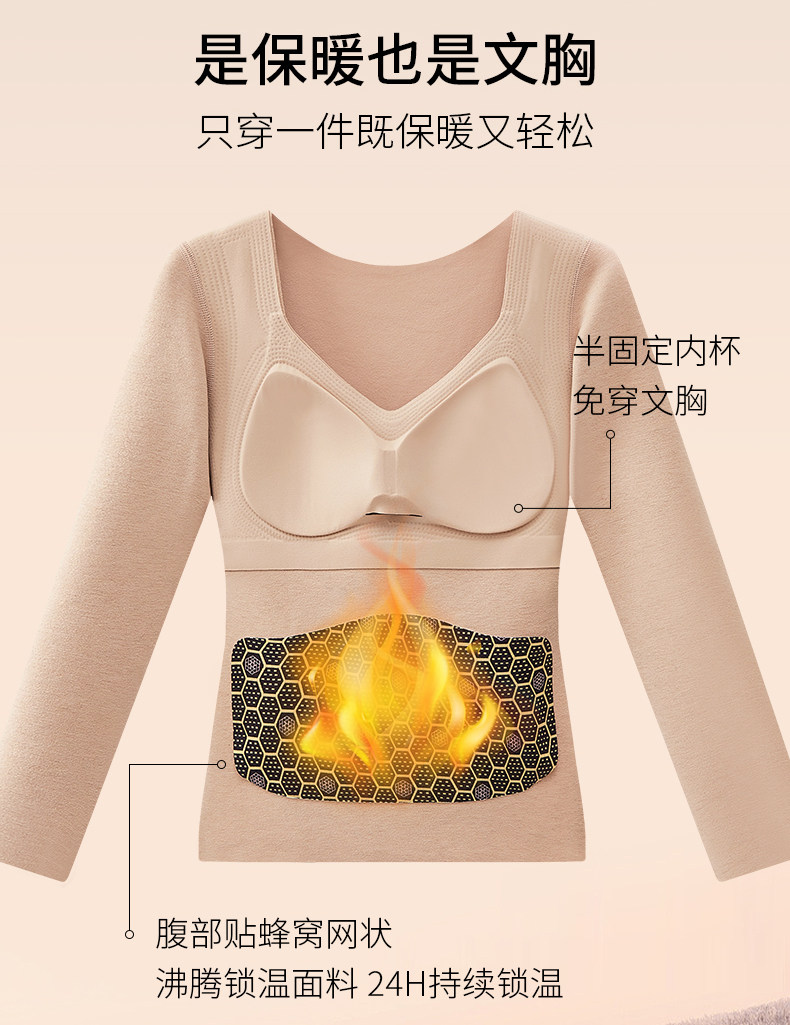 保暖內衣女帶胸墊秋衣無痕髮熱羊毛打底上衣加絨加厚2025新款秋冬