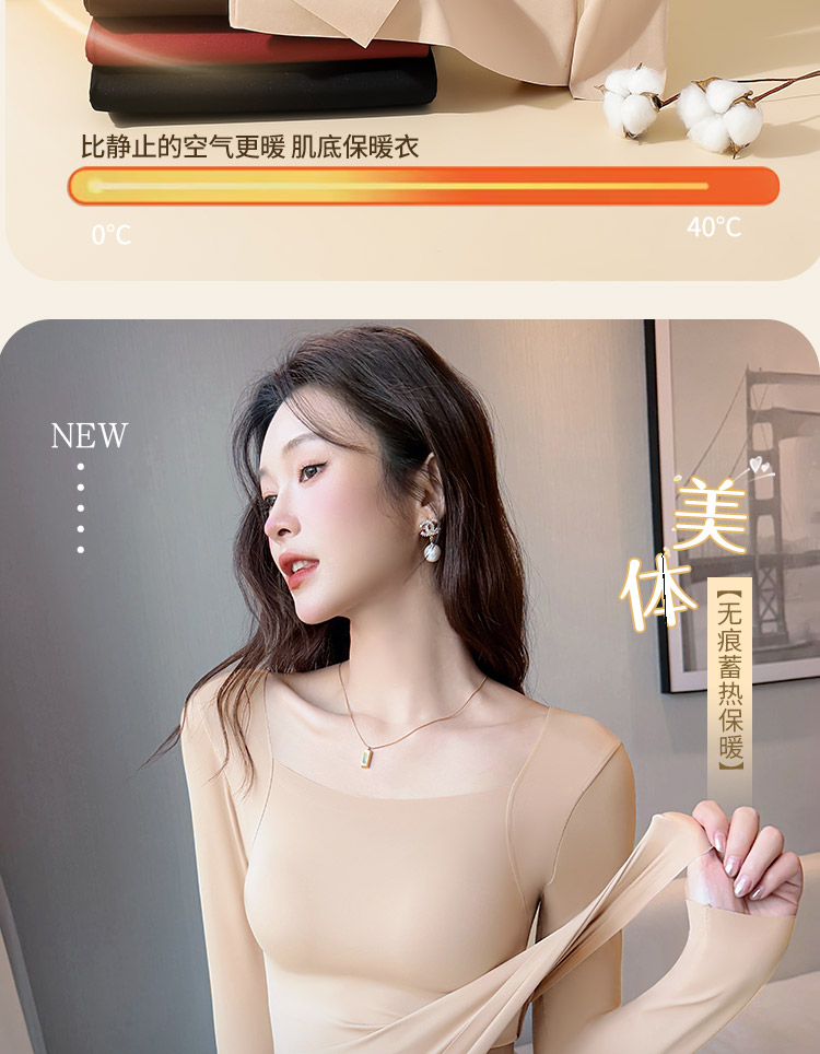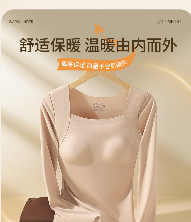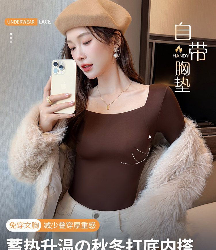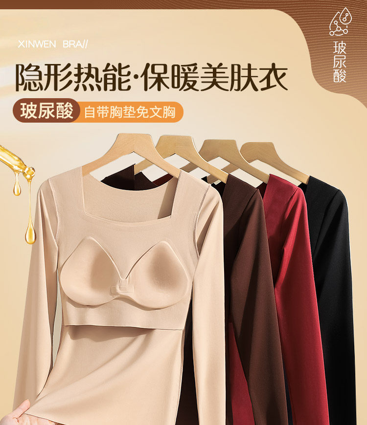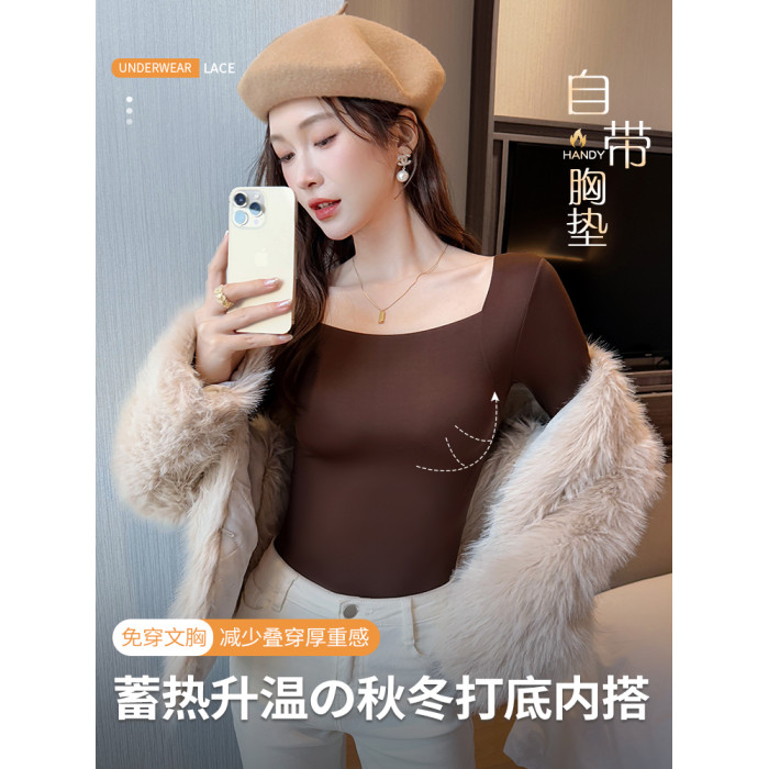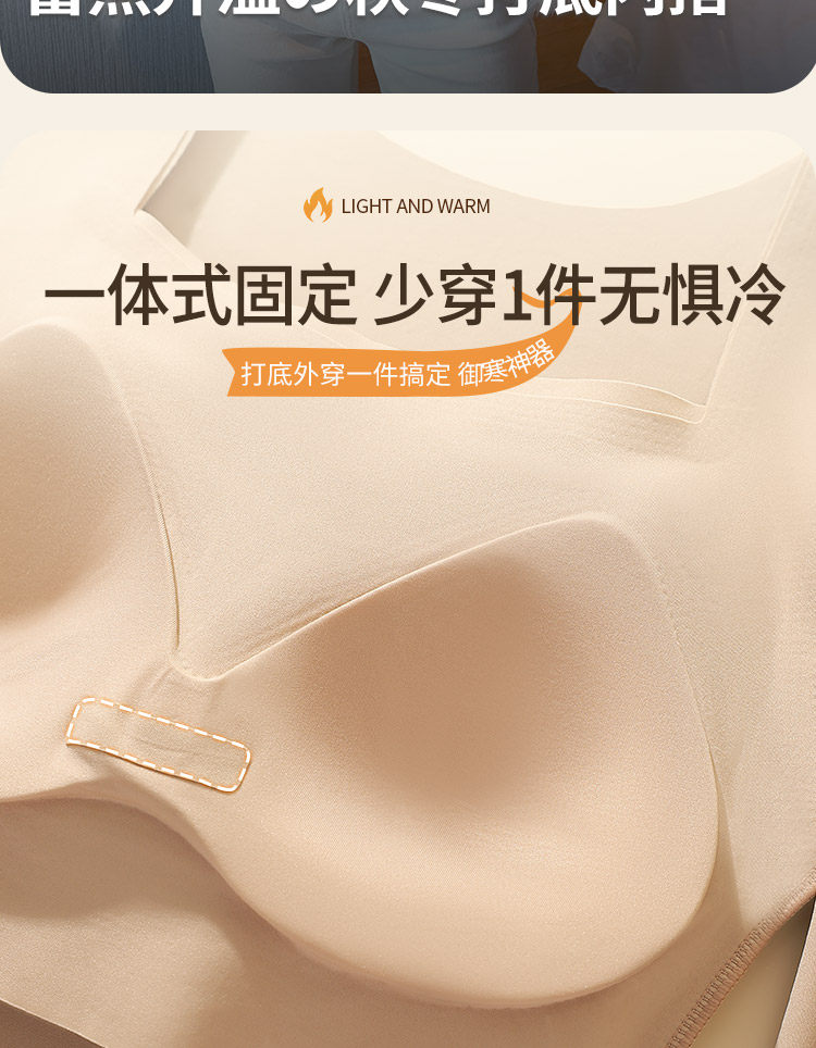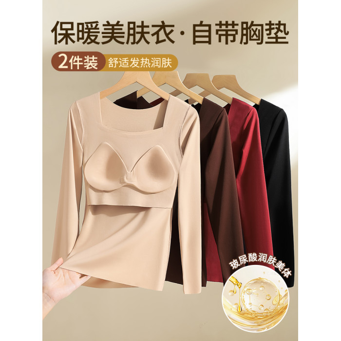 保暖內衣女帶胸墊免穿文胸秋冬打底衫超薄無痕髮熱美膚肌底衣內搭