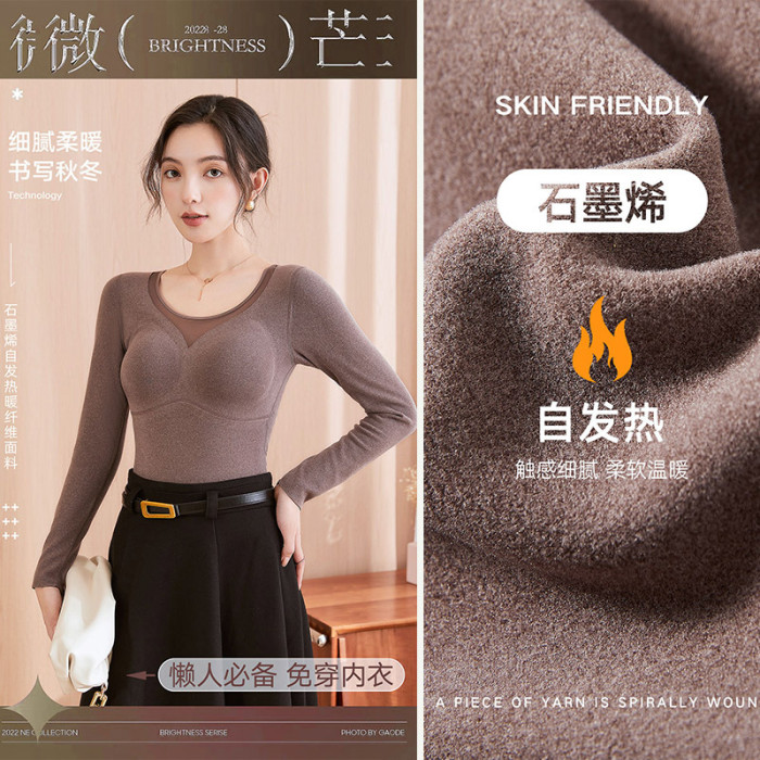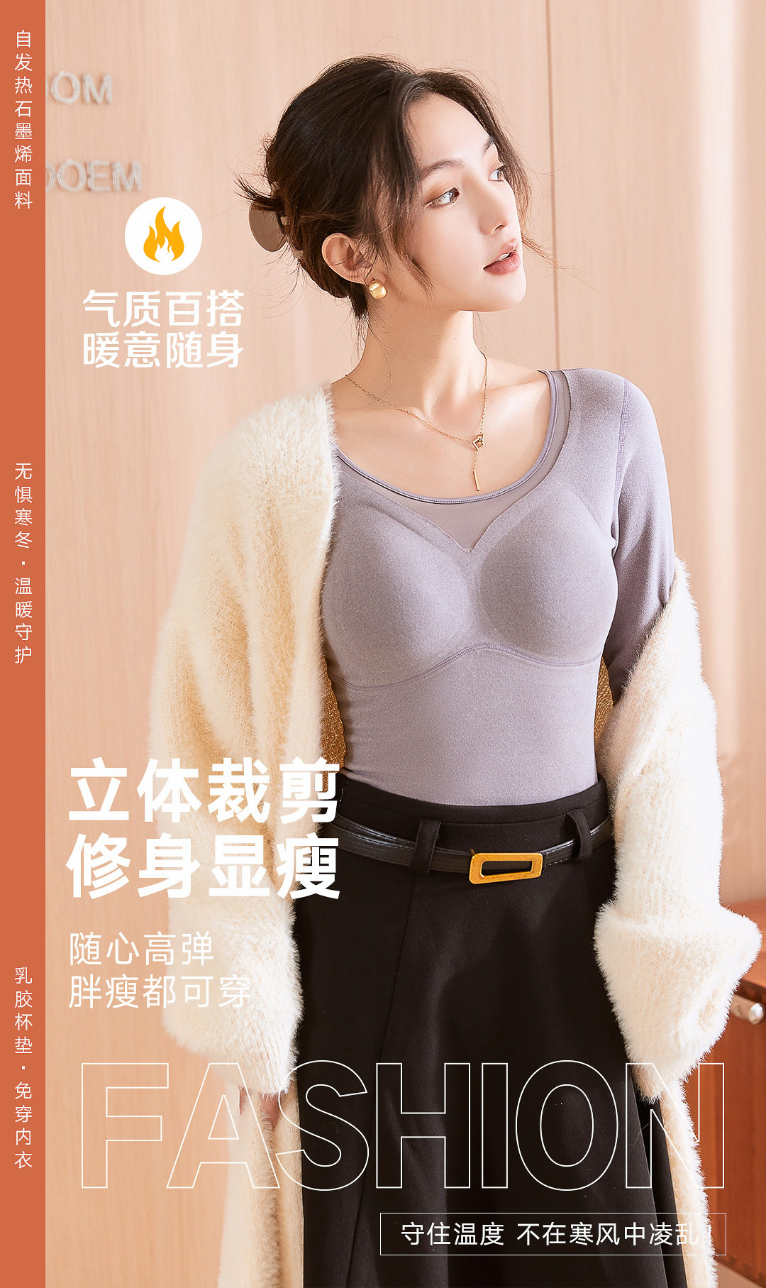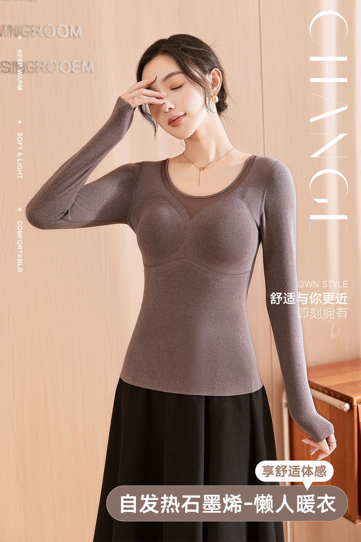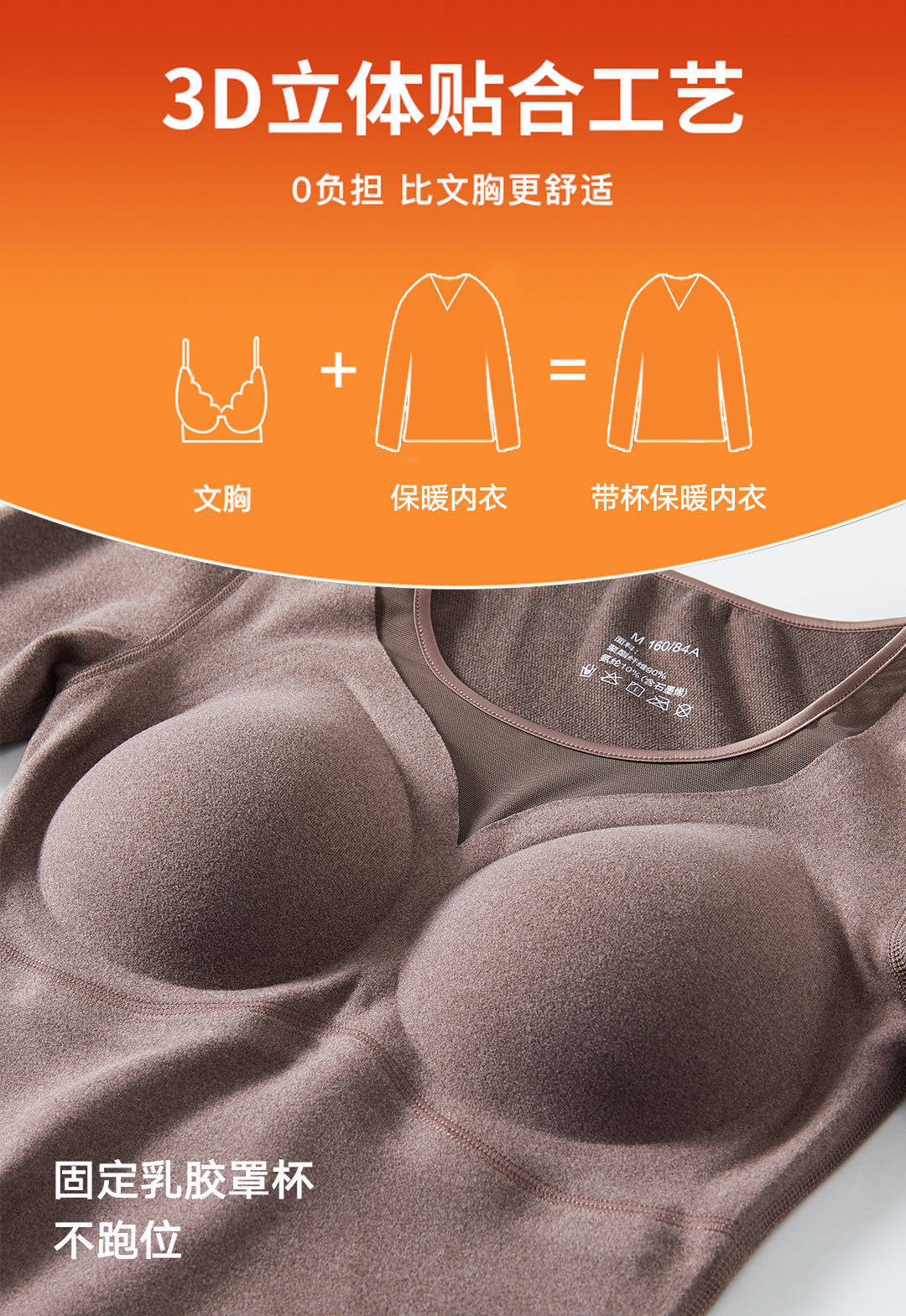 石墨烯自髮熱保暖背心女固定杯長袖無痕無鋼圈文胸塑身3D有型內衣