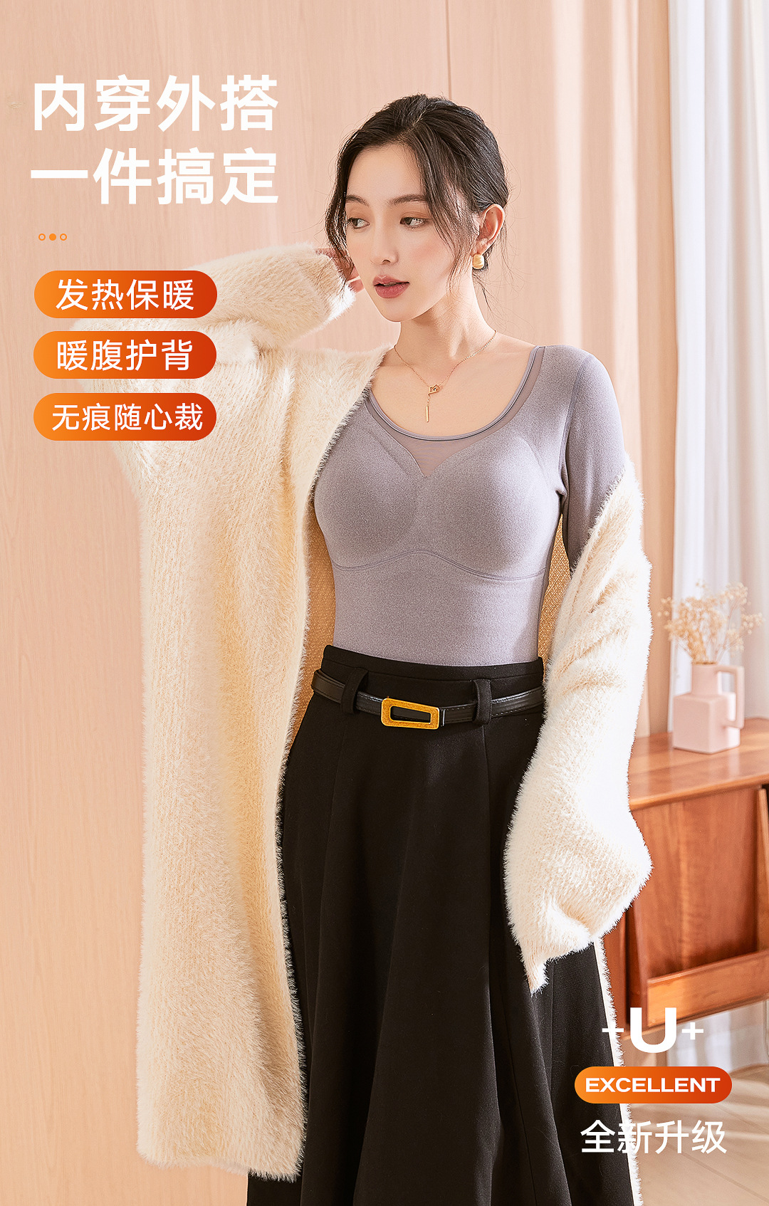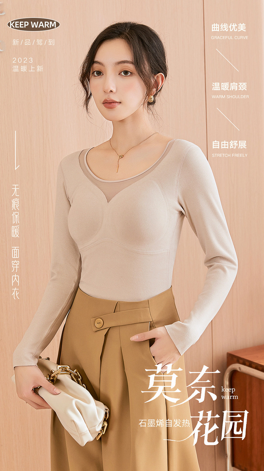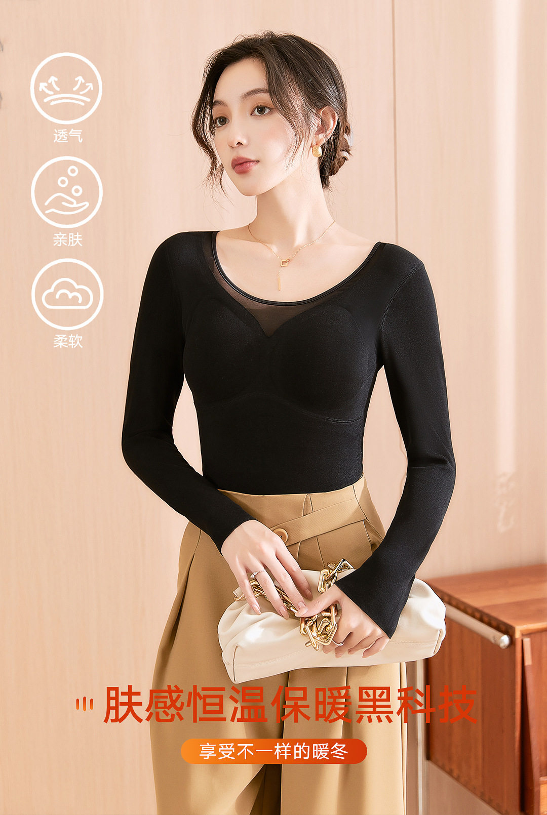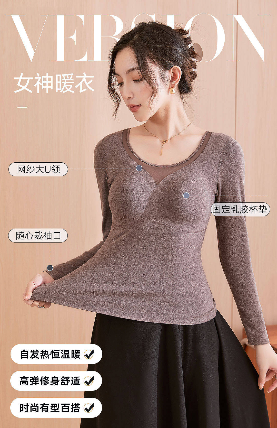 石墨烯自髮熱保暖背心女固定杯長袖無痕無鋼圈文胸塑身3D有型內衣
