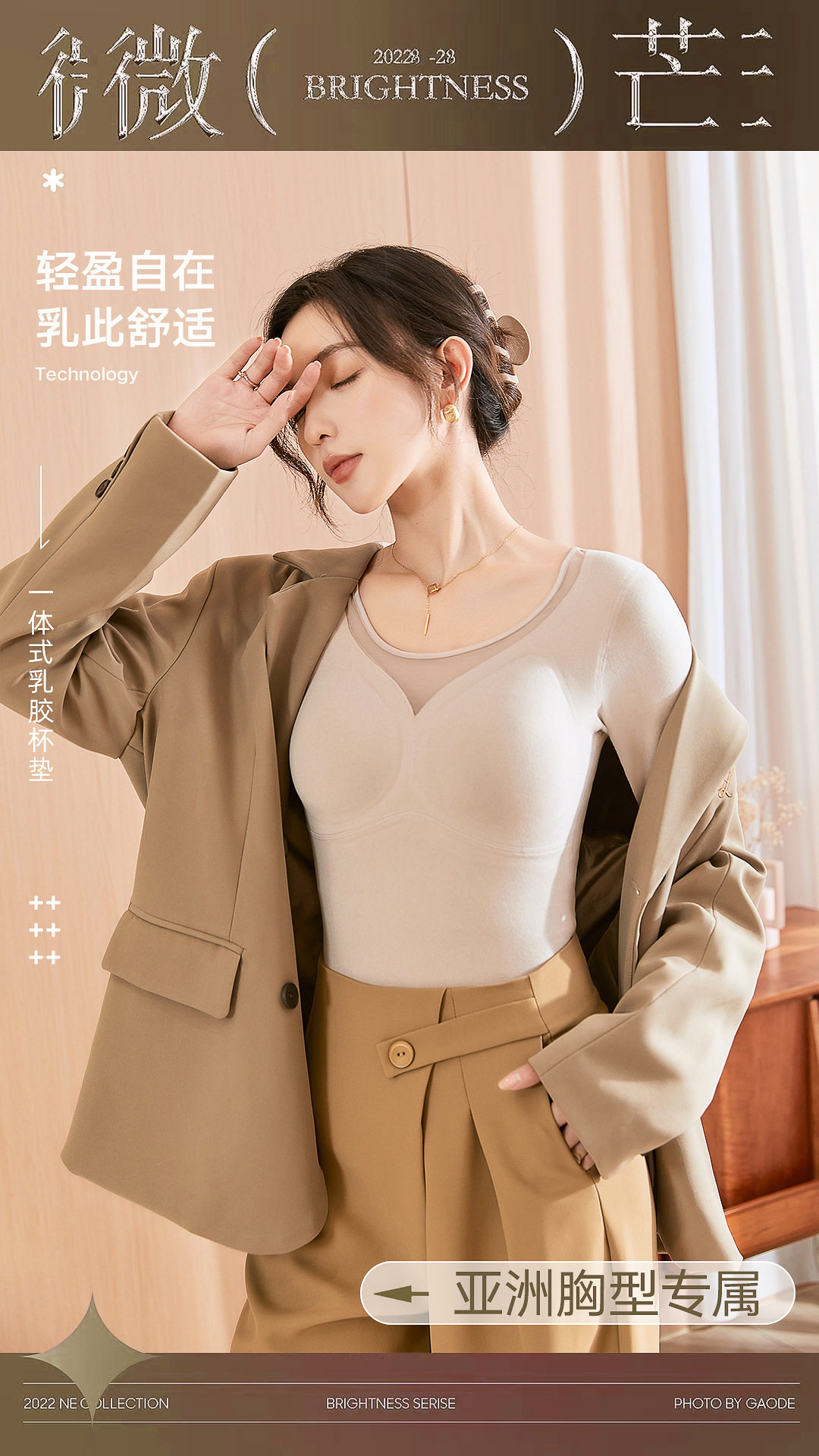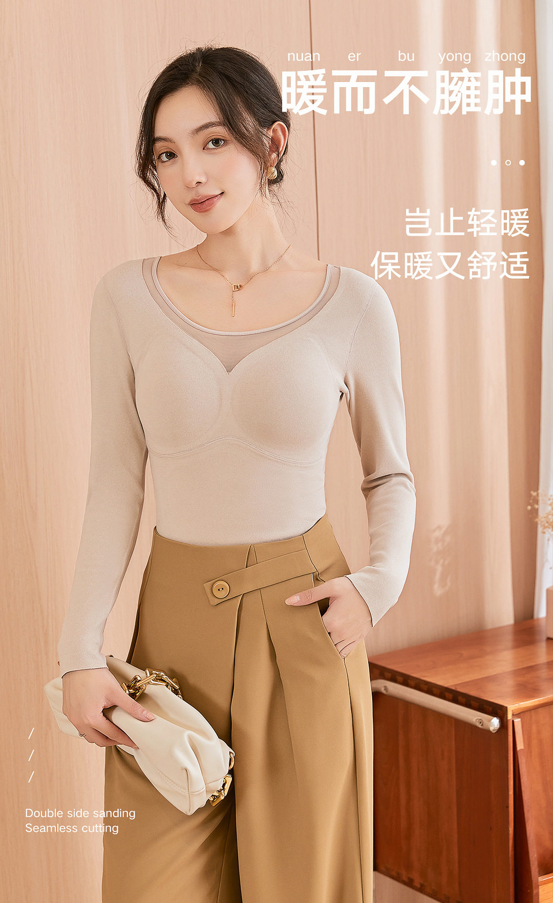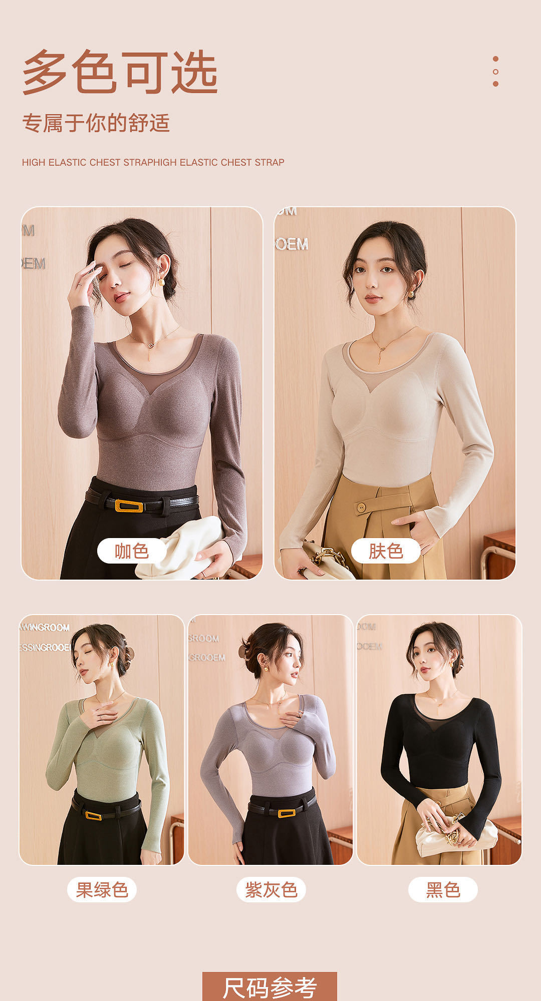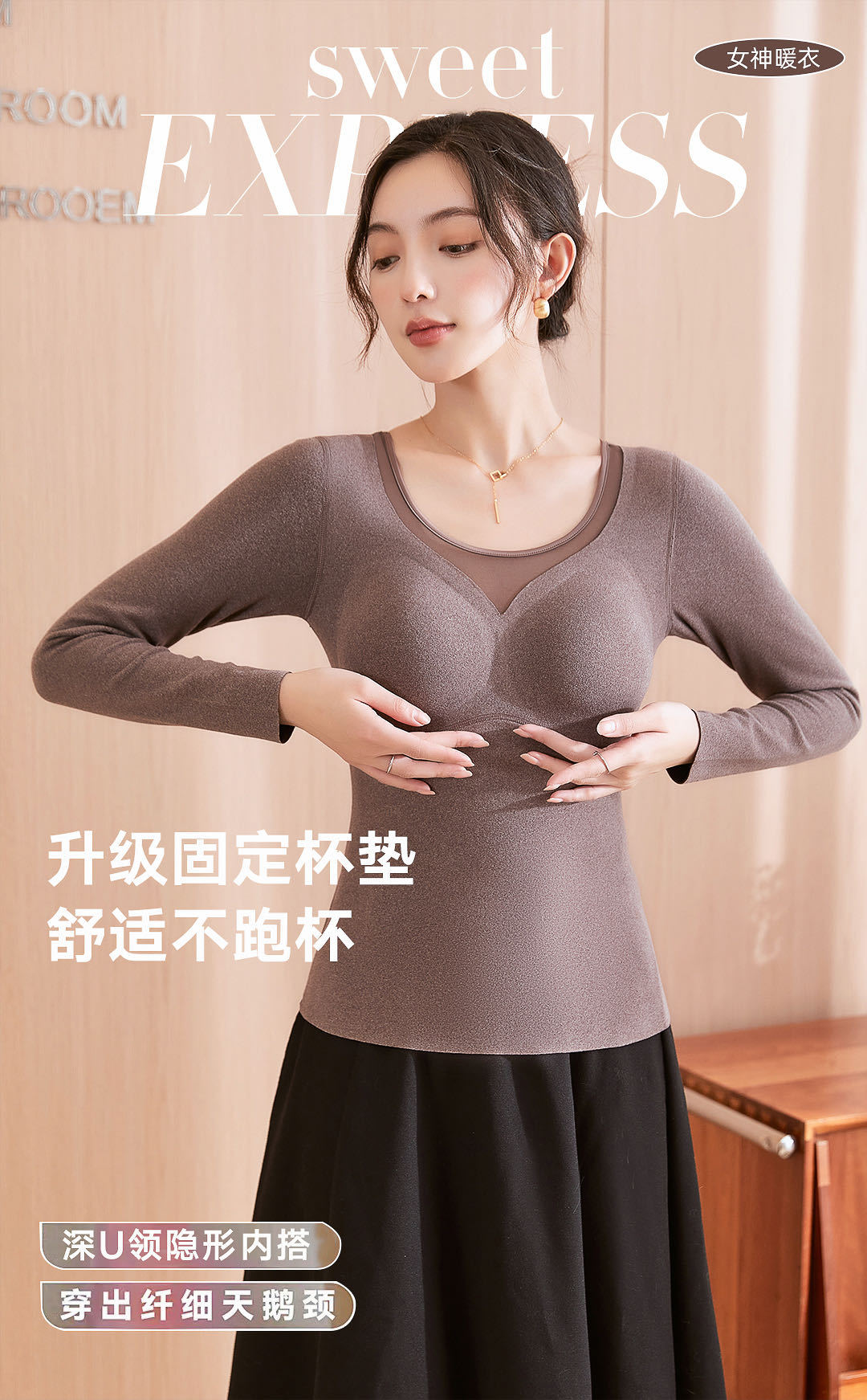 石墨烯自髮熱保暖背心女固定杯長袖無痕無鋼圈文胸塑身3D有型內衣