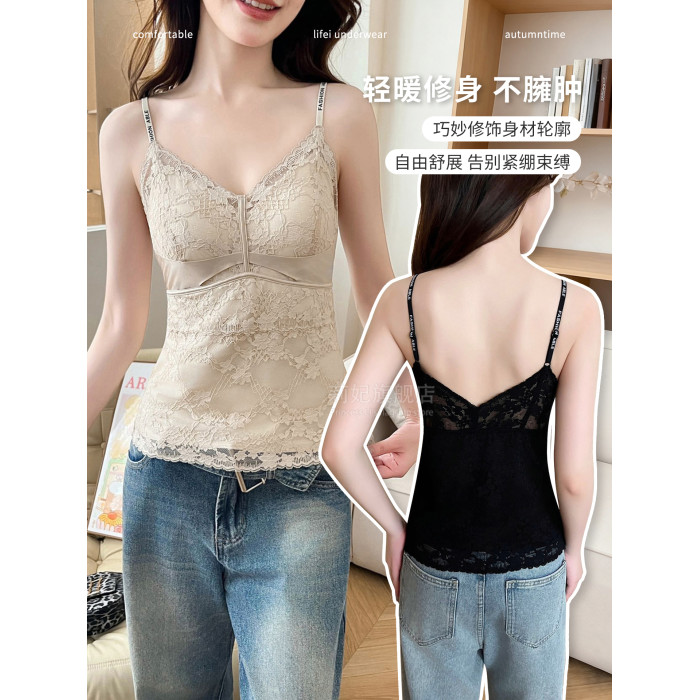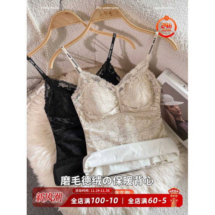 冬季加絨加厚保暖背心女吊帶帶胸墊一體打底修身2025新款德絨內衣