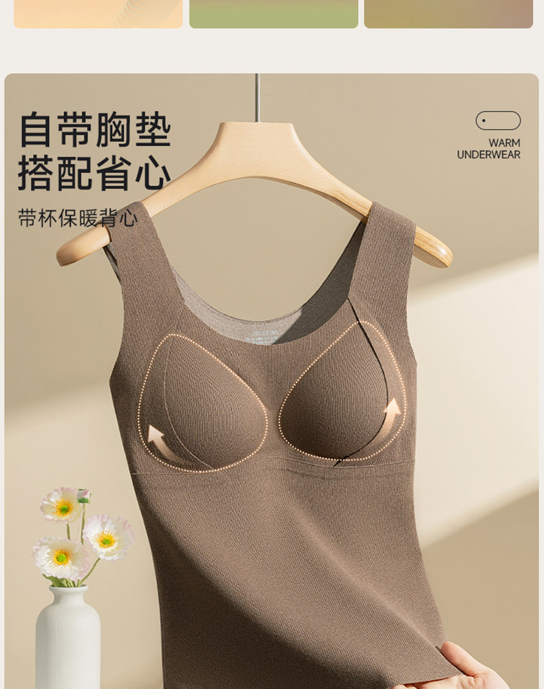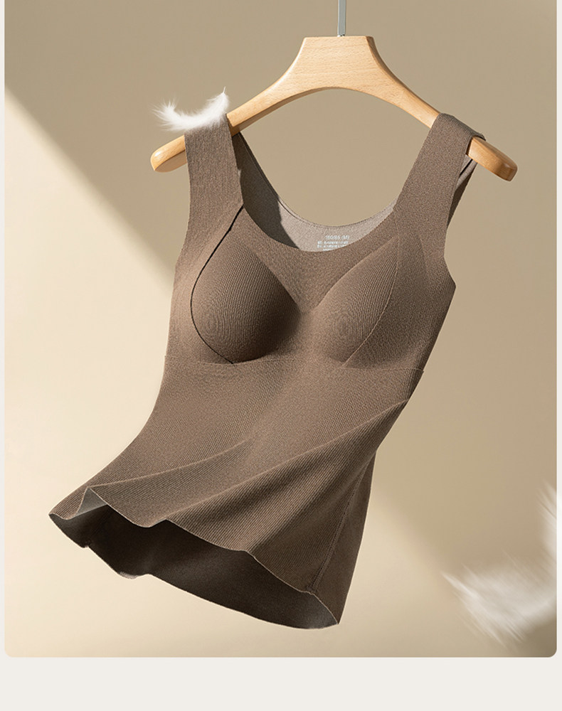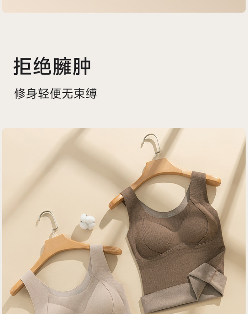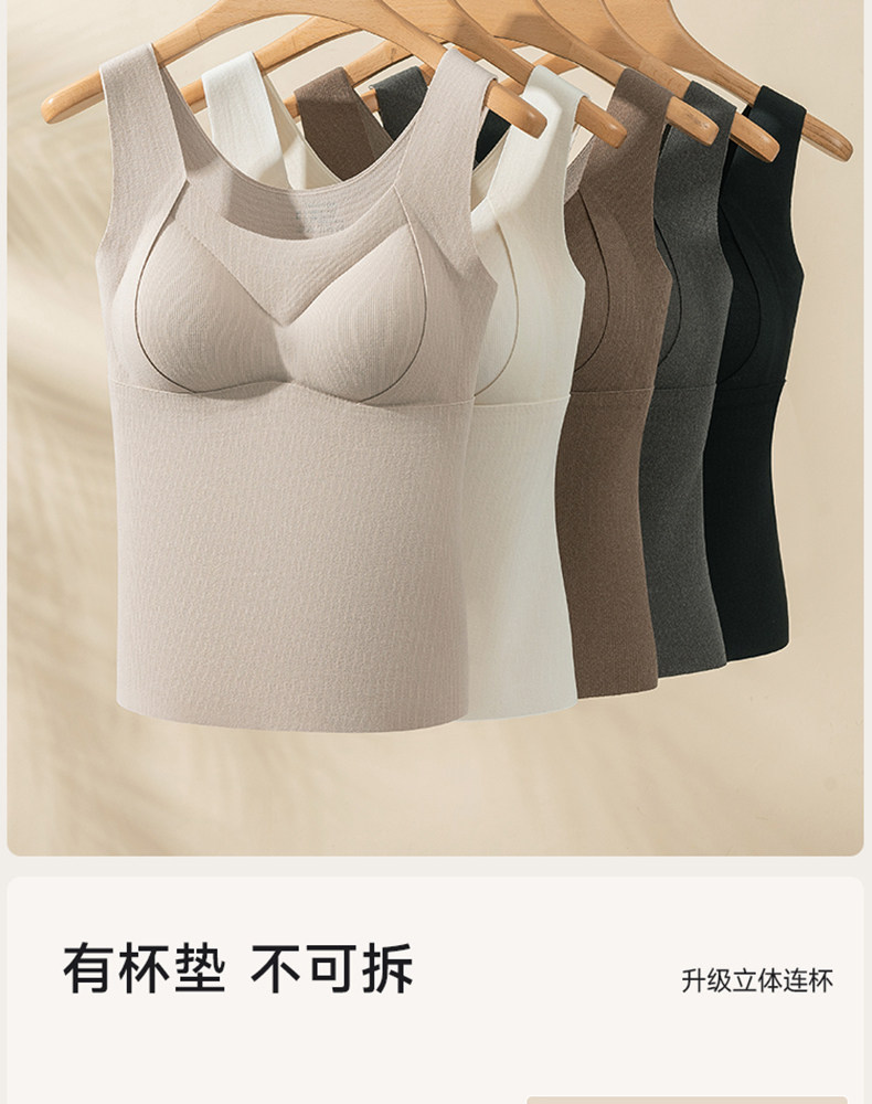 保暖背心女士帶胸墊內衣秋冬季加絨加厚內搭女款無痕羊毛上衣打底