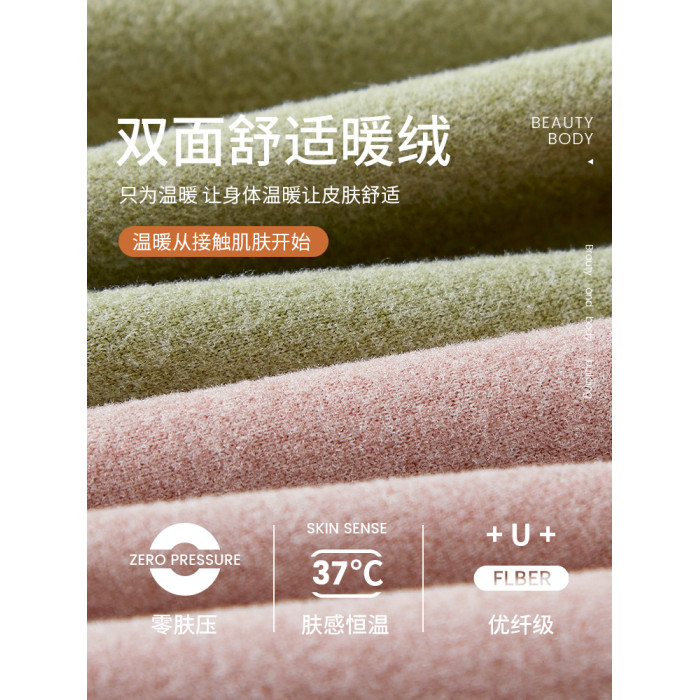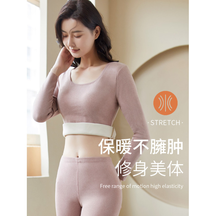 德絨保暖內衣女士自髮熱套裝秋衣秋褲上衣加絨一體帶胸墊打底衫冬