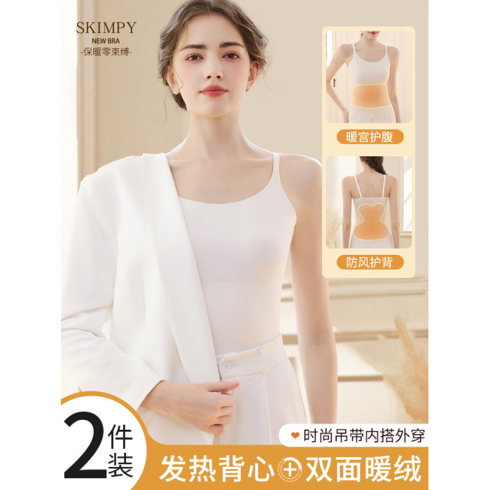 保暖背心內衣女士2024新款秋冬季加絨髮熱內搭外穿吊帶打底衫上衣