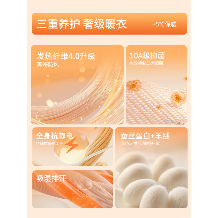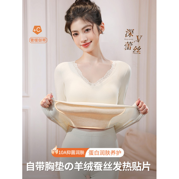 羊絨蠶絲保暖內衣女帶胸墊2025新款v領內搭打底衫加絨秋衣褲套裝