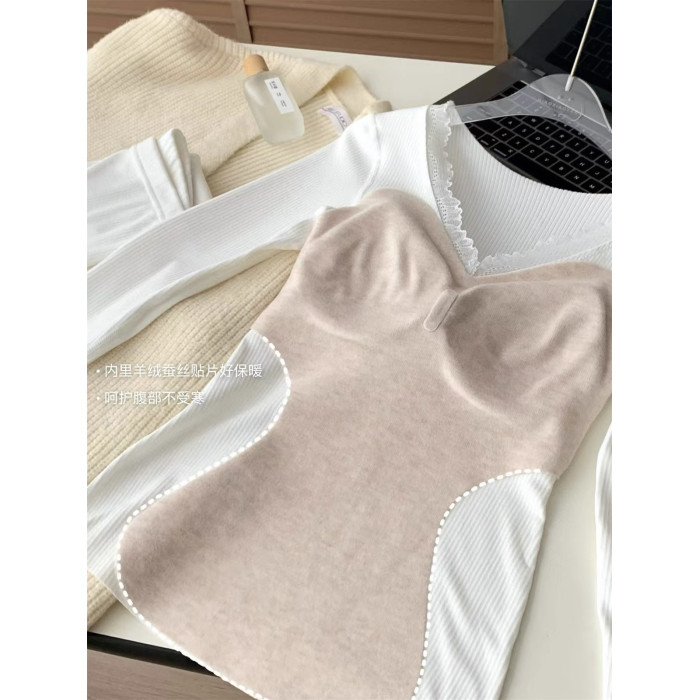 10A羊絨保暖內衣女加絨加厚秋衣秋褲套裝2025秋冬新款帶胸墊上衣