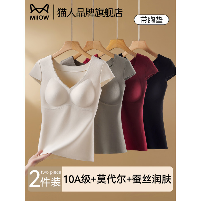 貓人保暖內衣女帶胸墊秋冬季髮熱防寒無痕隱形內搭打底衫2025新款