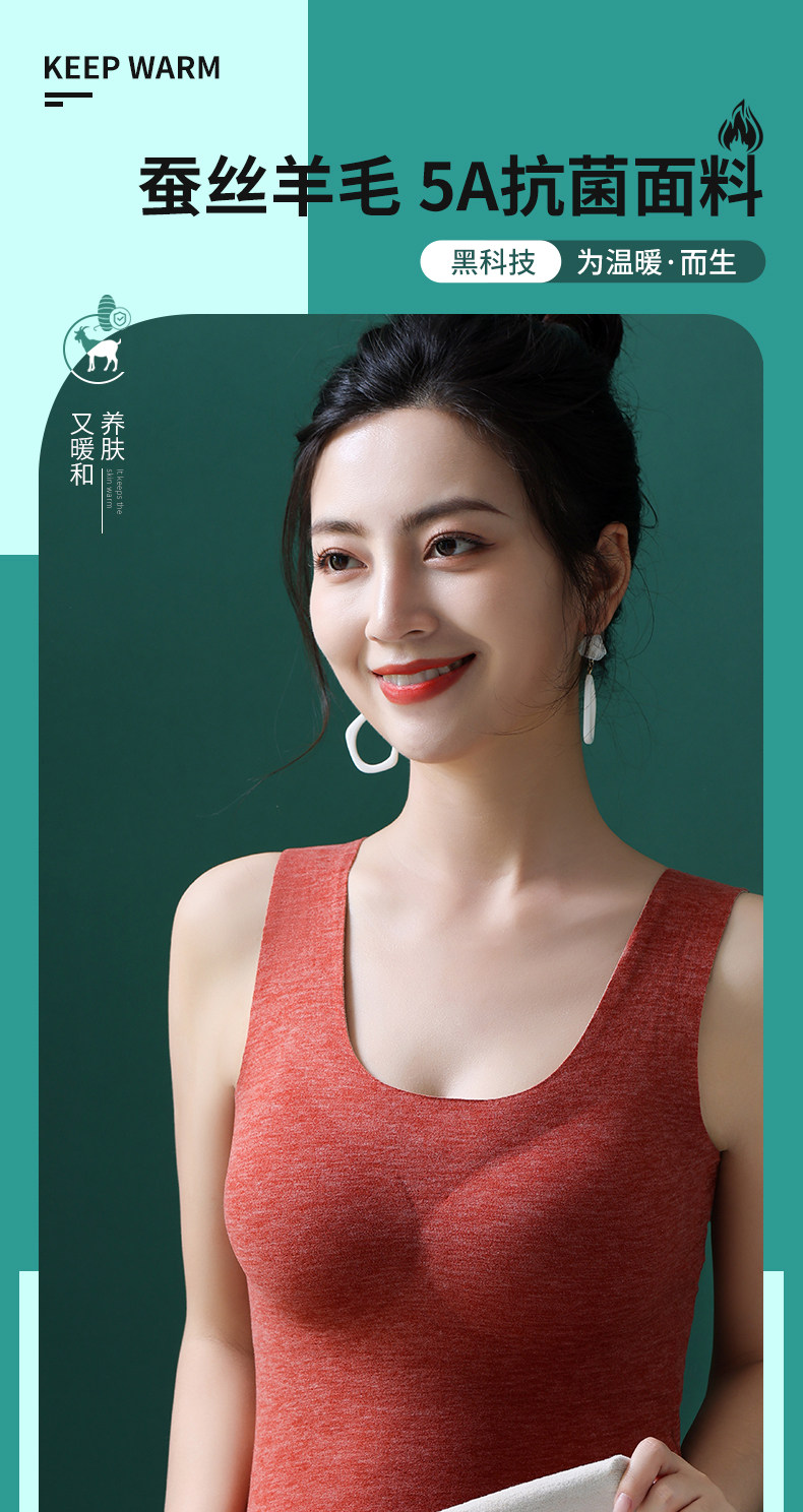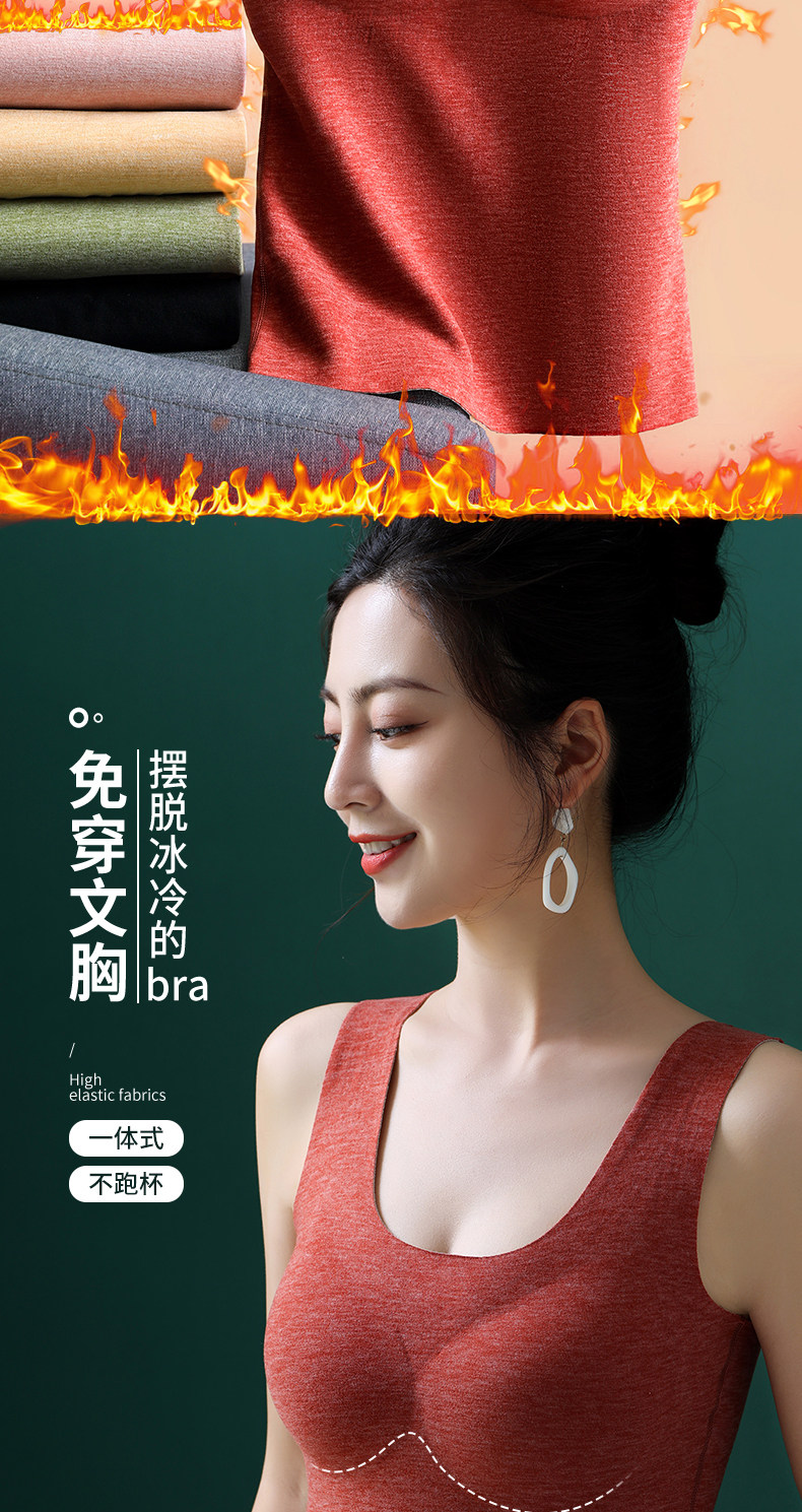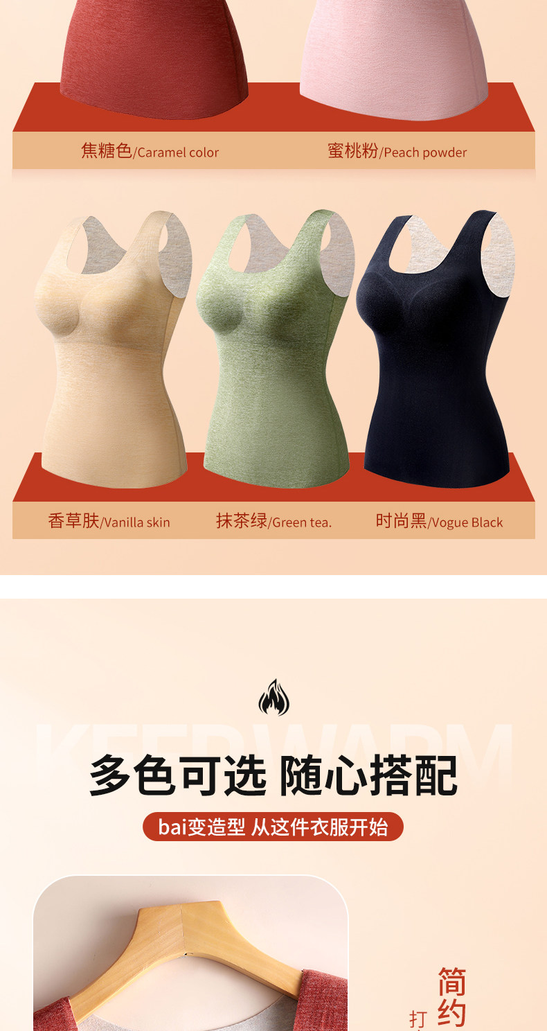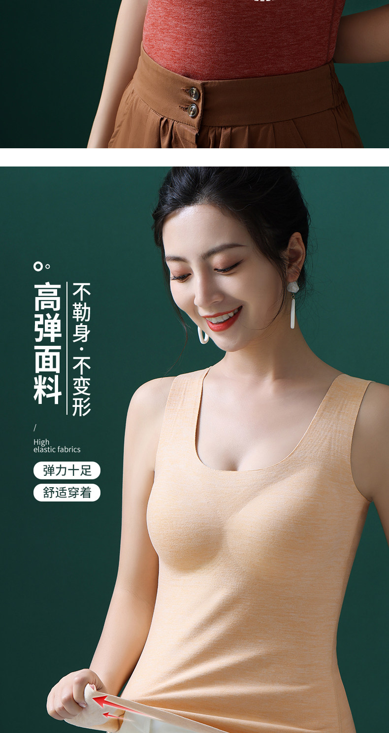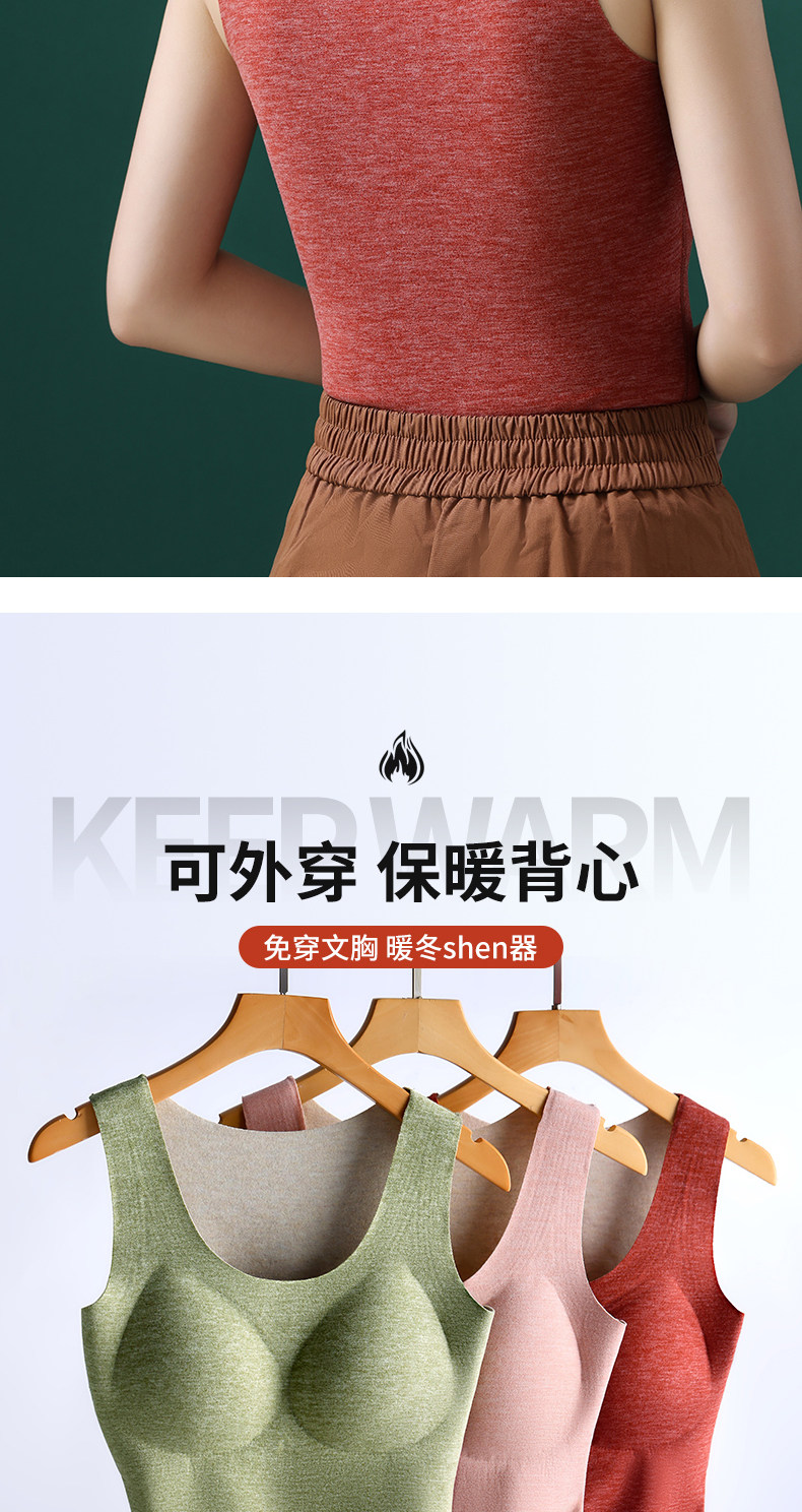 保暖背心女帶胸墊一體加絨加厚秋冬季德絨髮熱內衣2025新款大碼