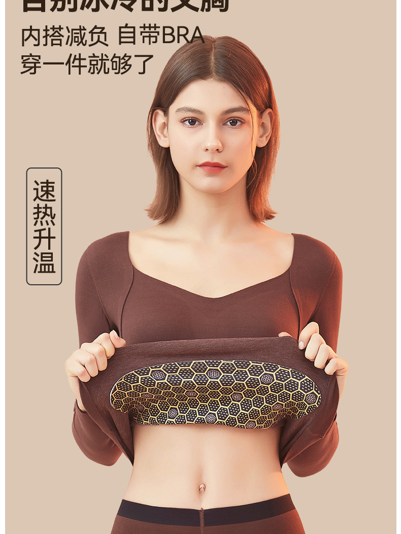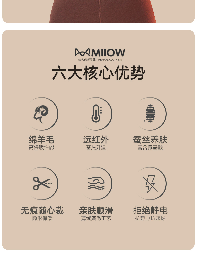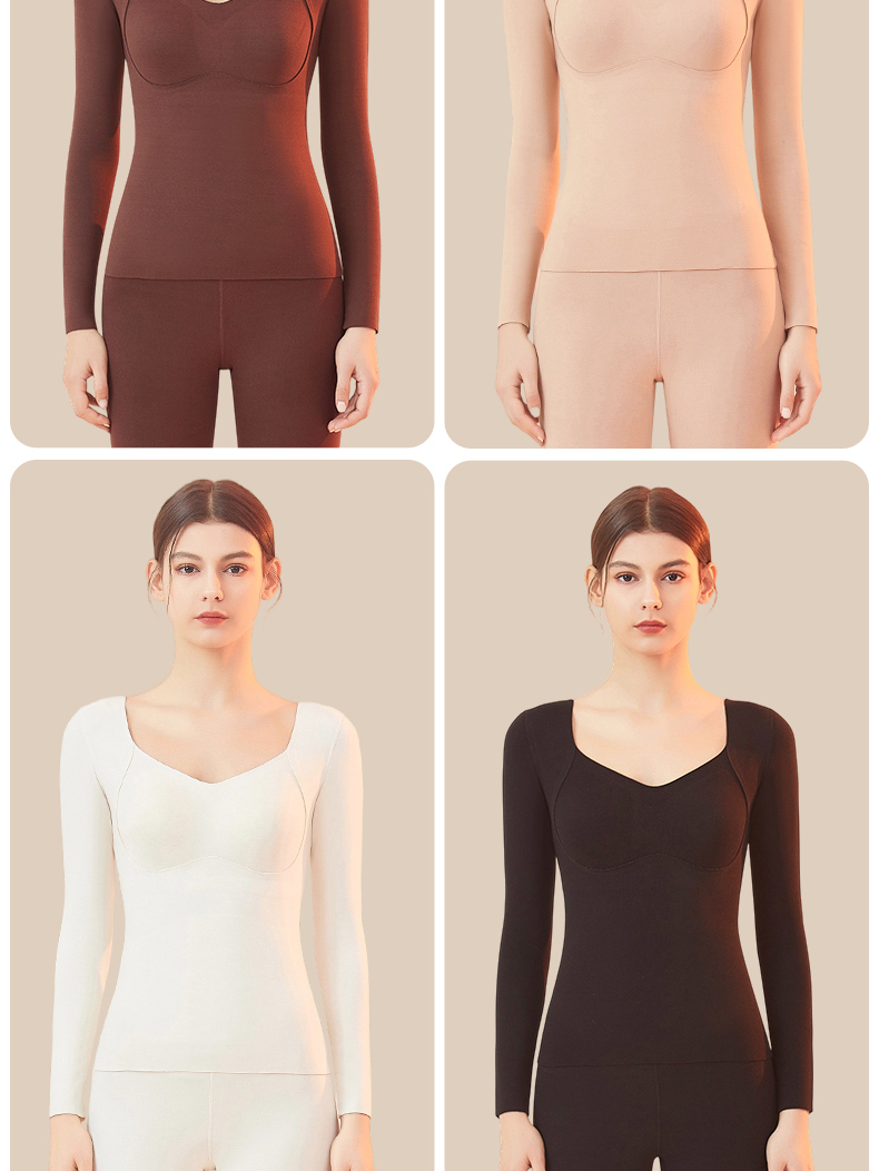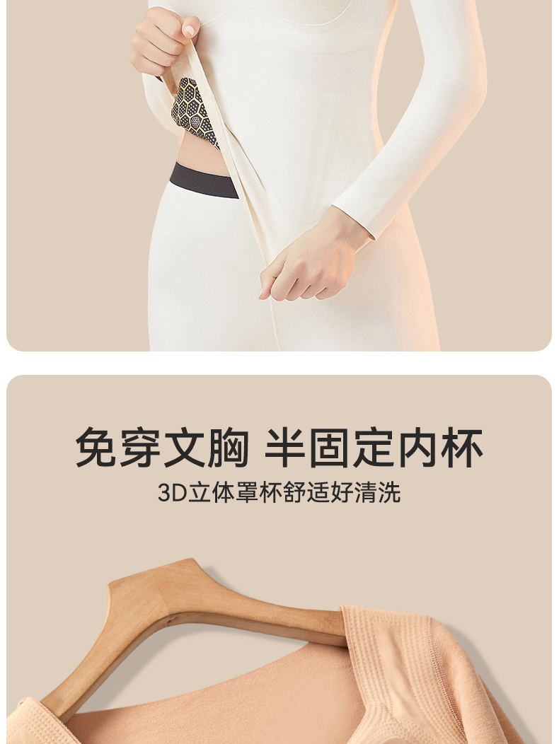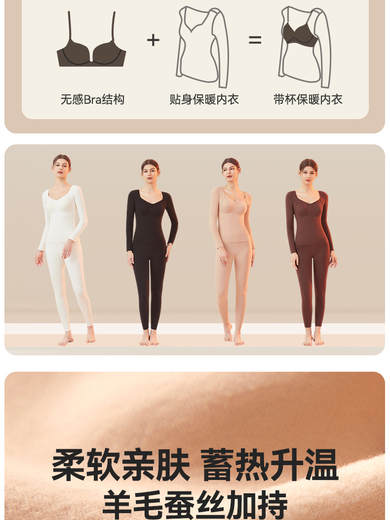 貓人保暖內衣女帶胸墊2025新款羊毛蠶絲秋冬髮熱內搭打底秋衣套裝