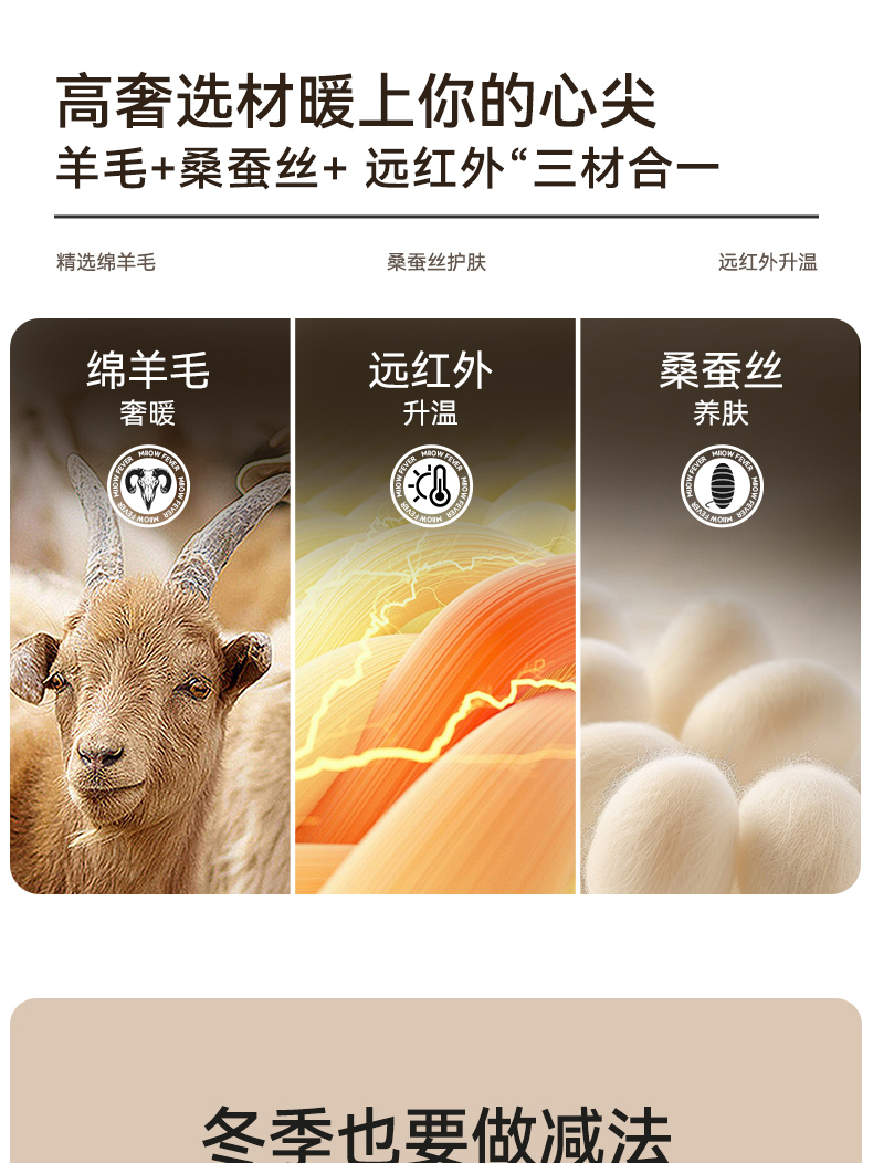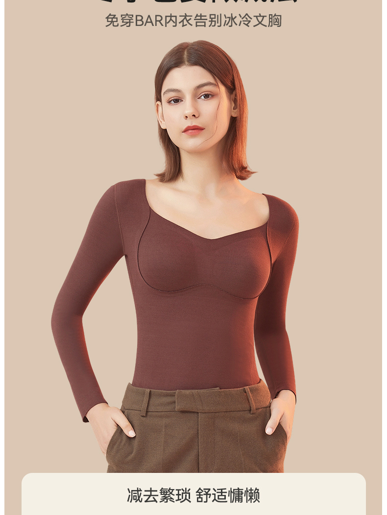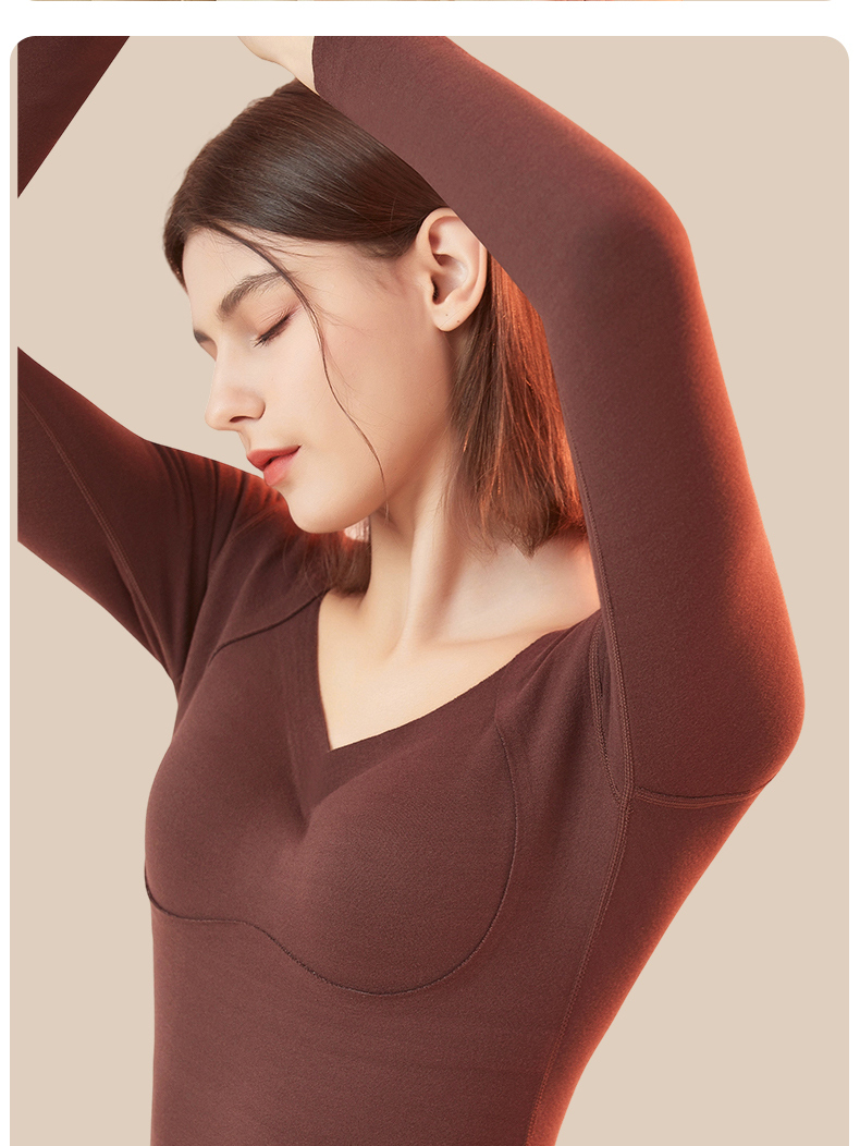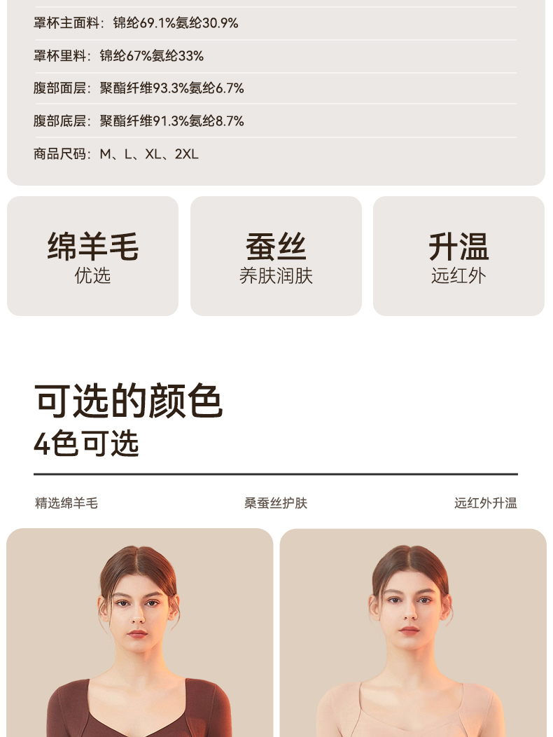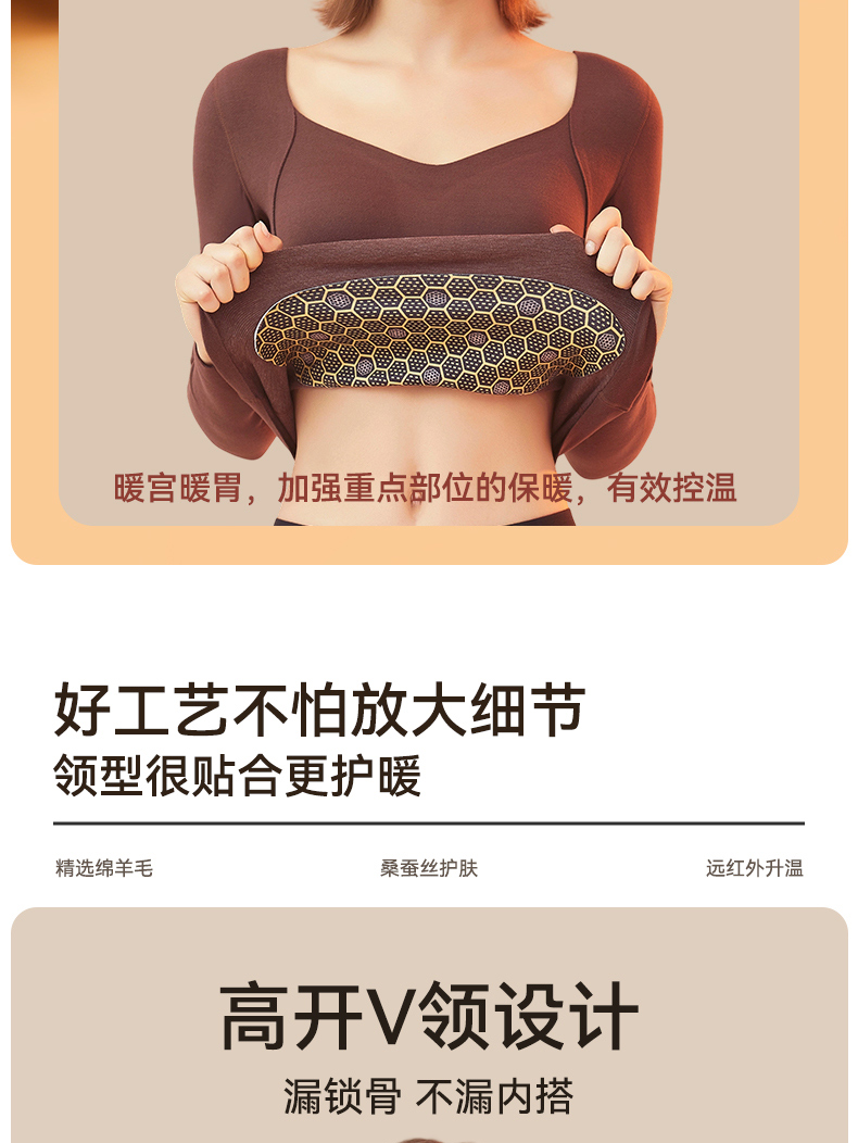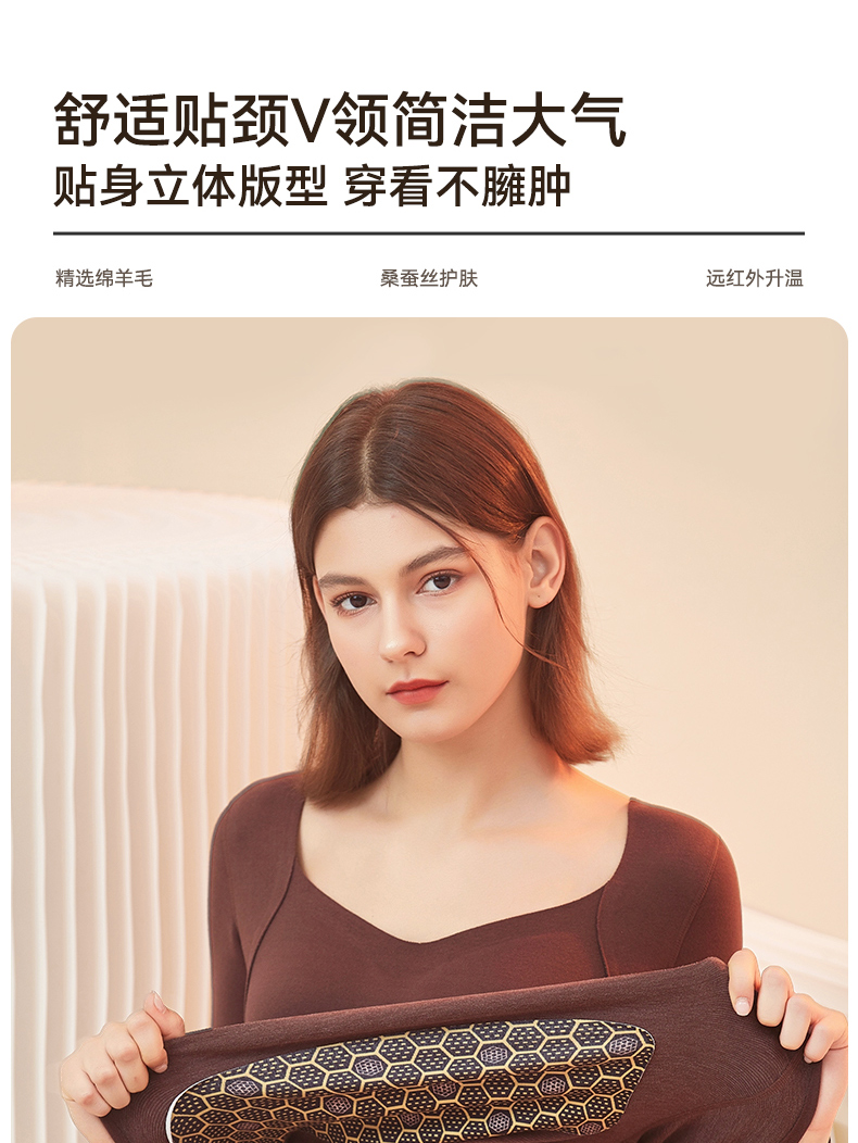 貓人保暖內衣女帶胸墊2025新款羊毛蠶絲秋冬髮熱內搭打底秋衣套裝