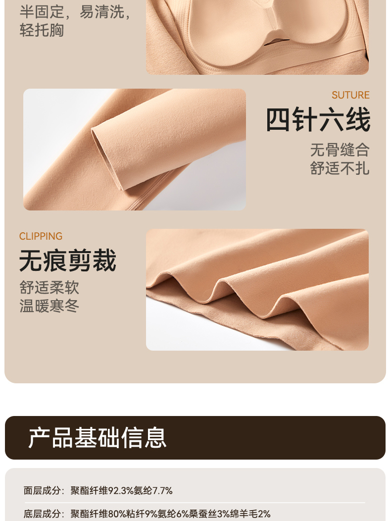 | 裡料材質成分 | 聚酯纖維80% 粘膠纖維(粘纖)9% 聚氨酯彈性纖維(氨綸)6% 桑蠶絲3% 綿羊毛2% |