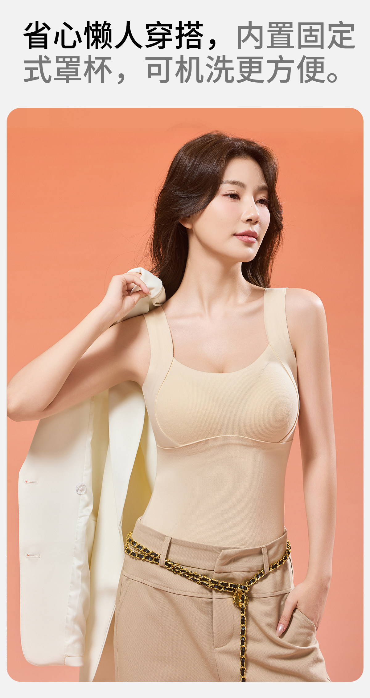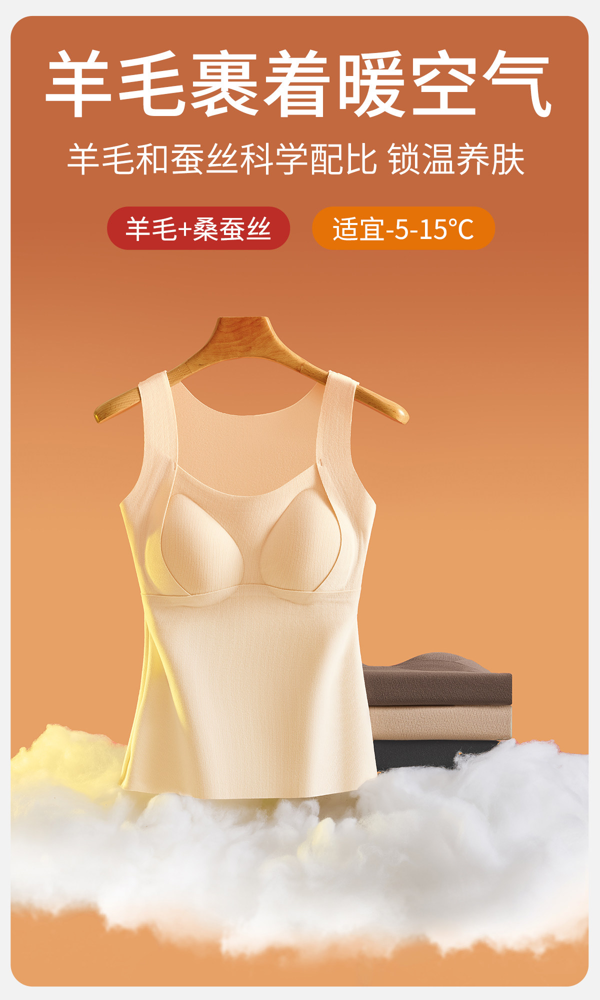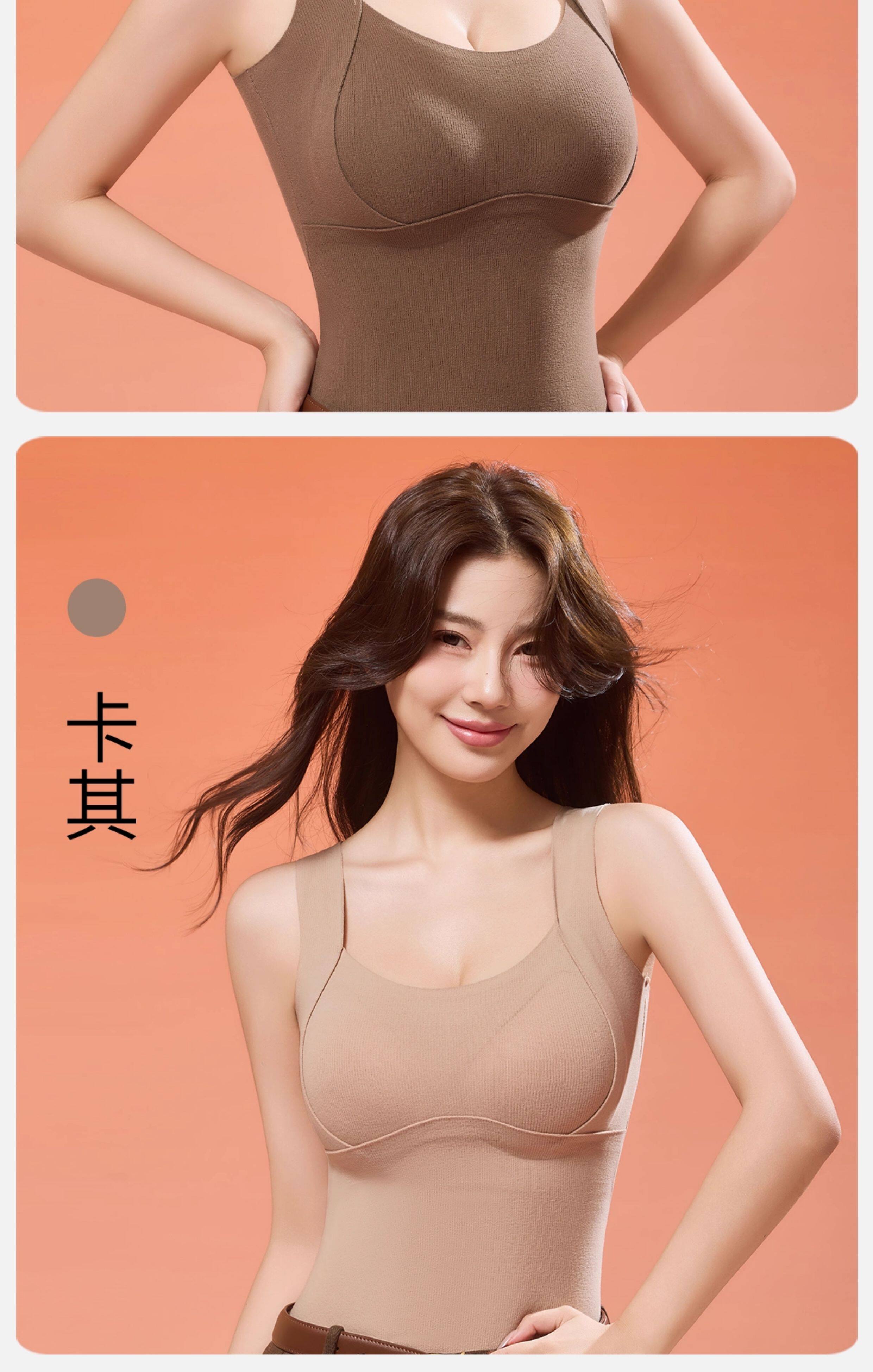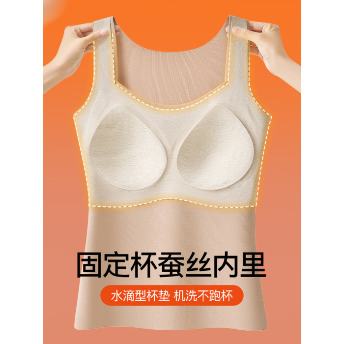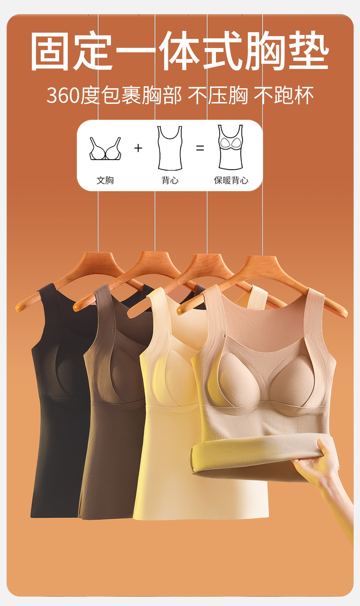 德絨髮熱保暖背心女士帶胸墊一體加絨加厚款羊絨內衣無痕秋衣冬季