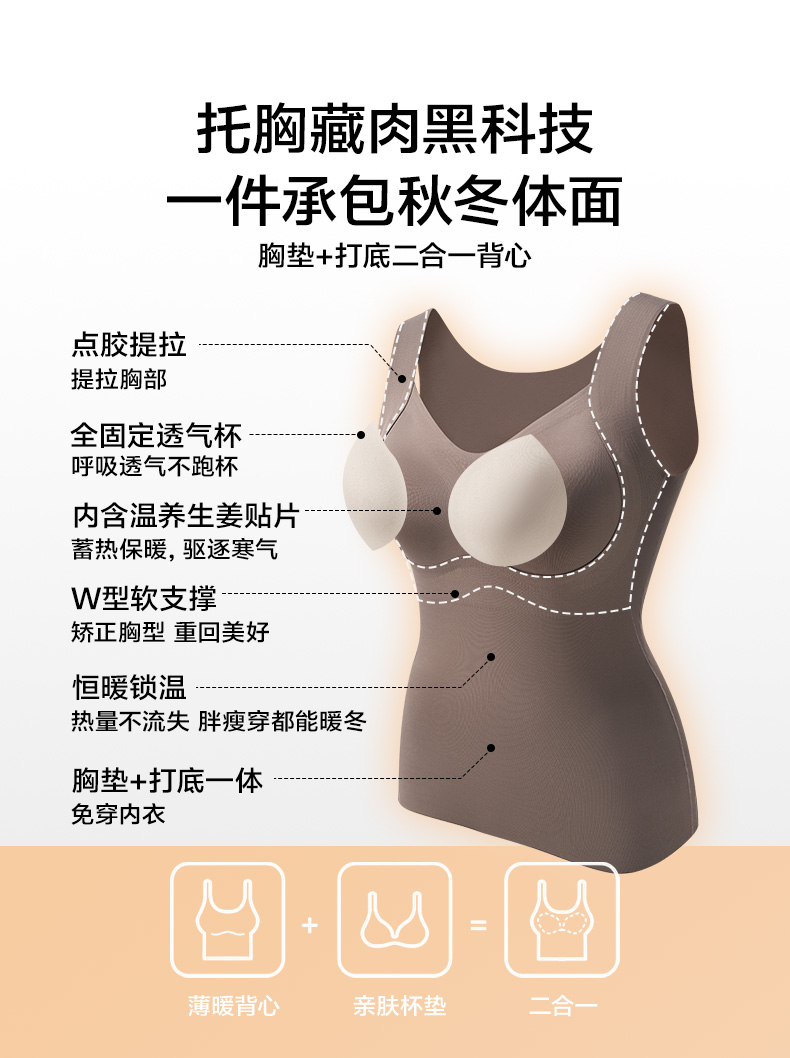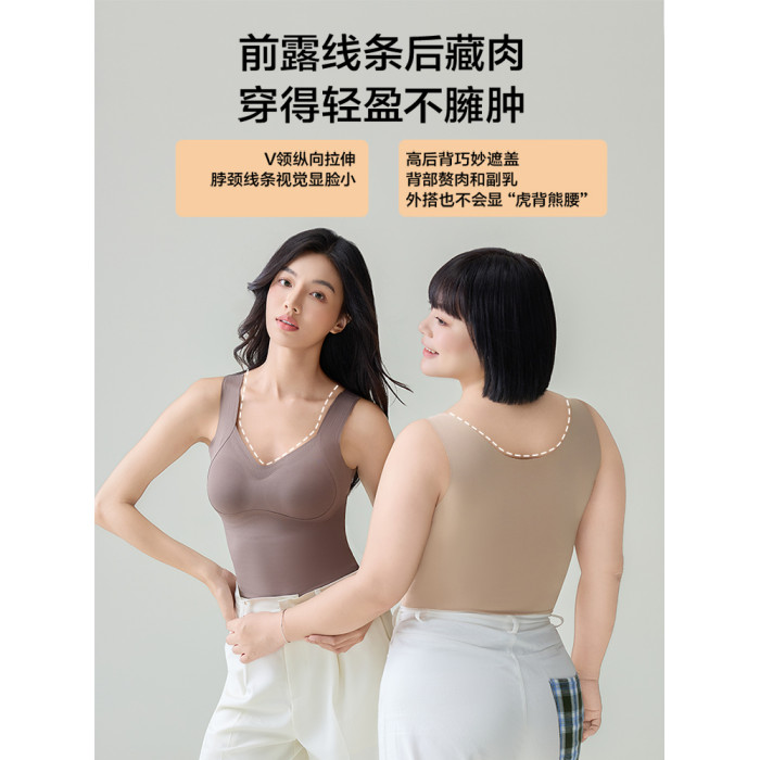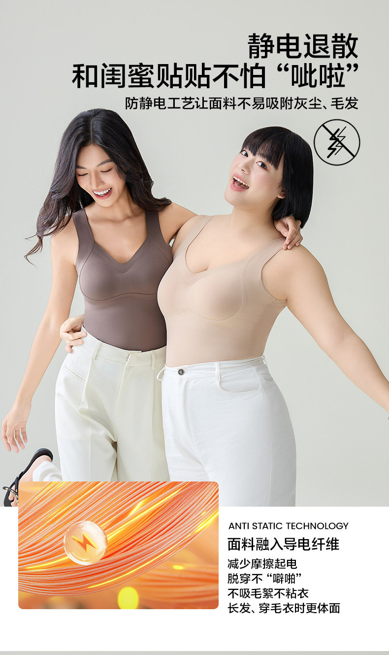 南極人保暖背心女款帶胸墊加肥加大碼胖mm冬季內搭上衣打底衫內衣