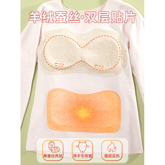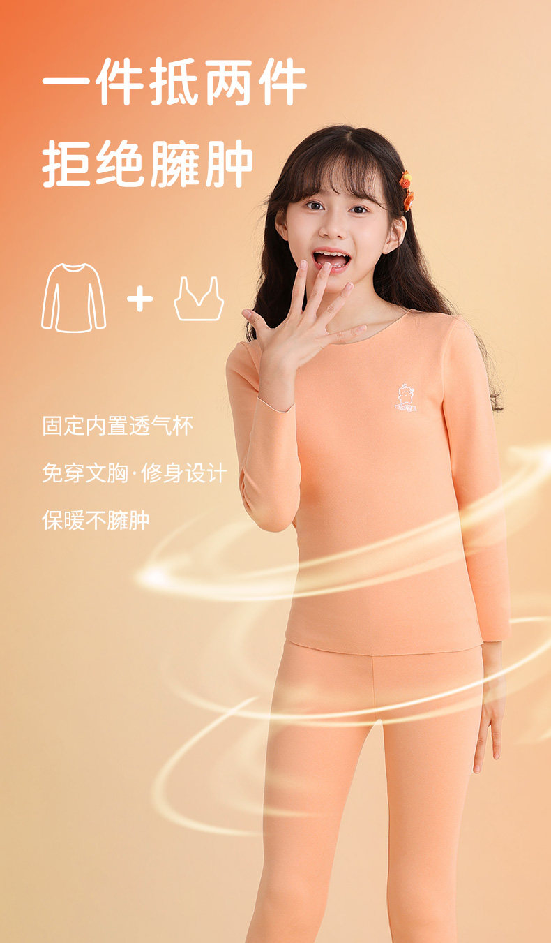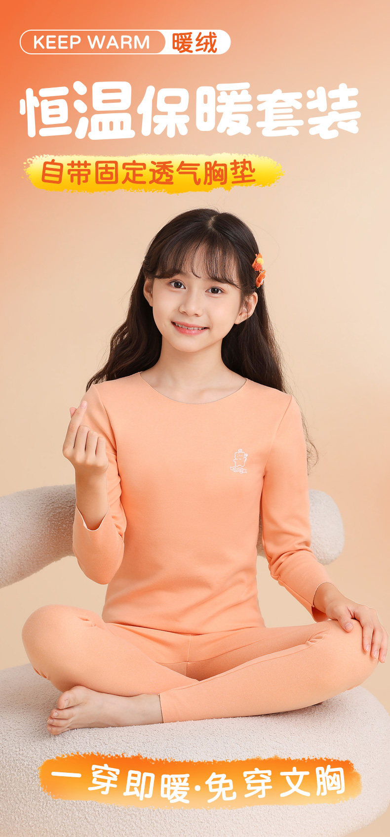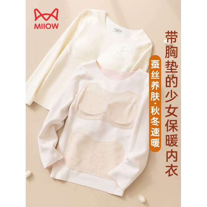貓人少女暖絨保暖內衣加絨加厚女大童髮育期帶胸墊套裝初中生冬季