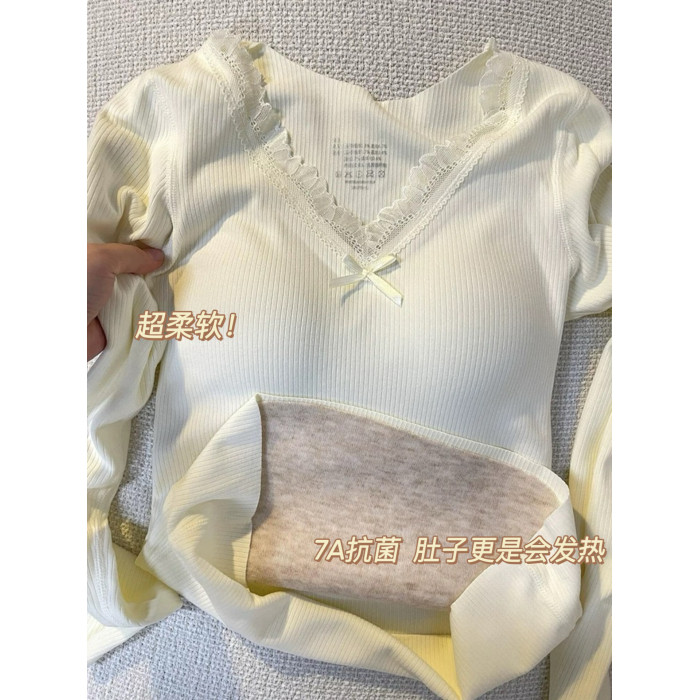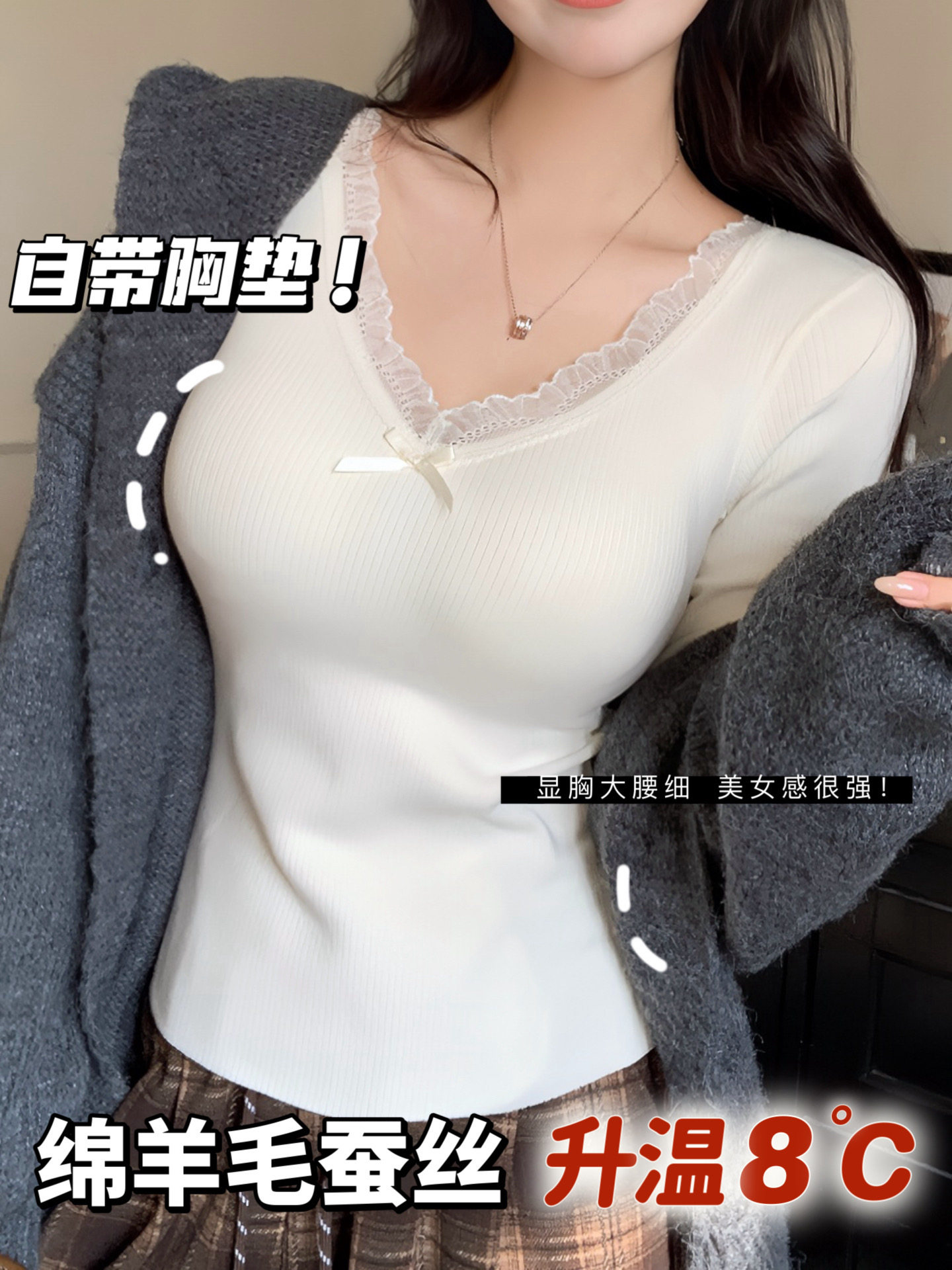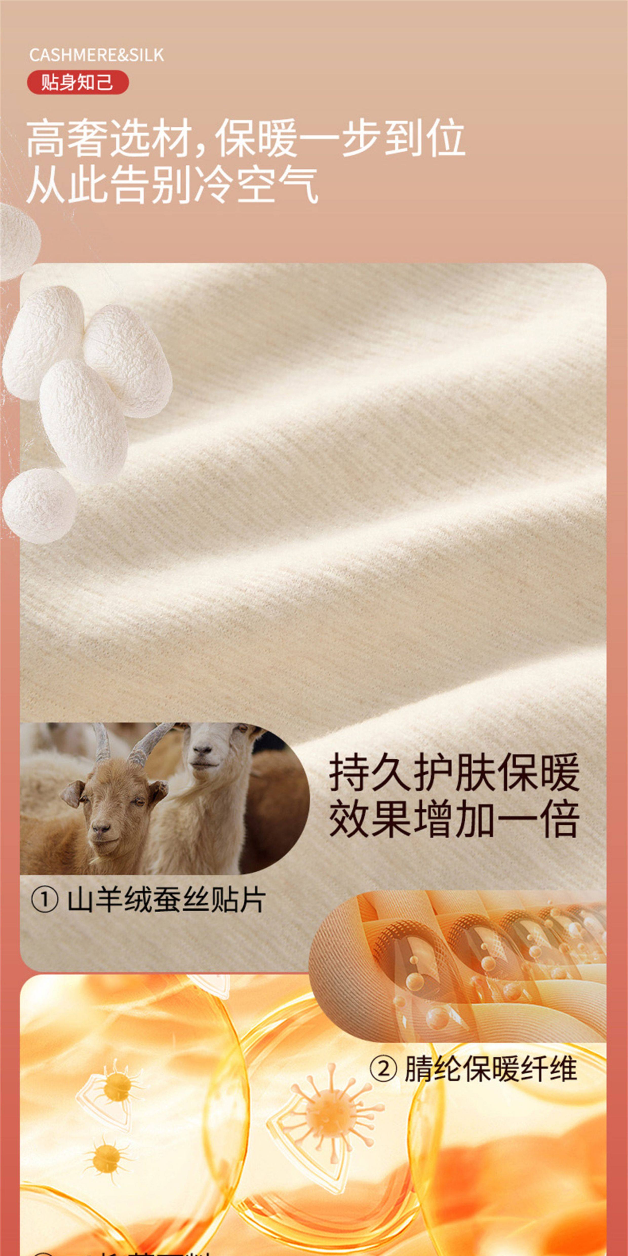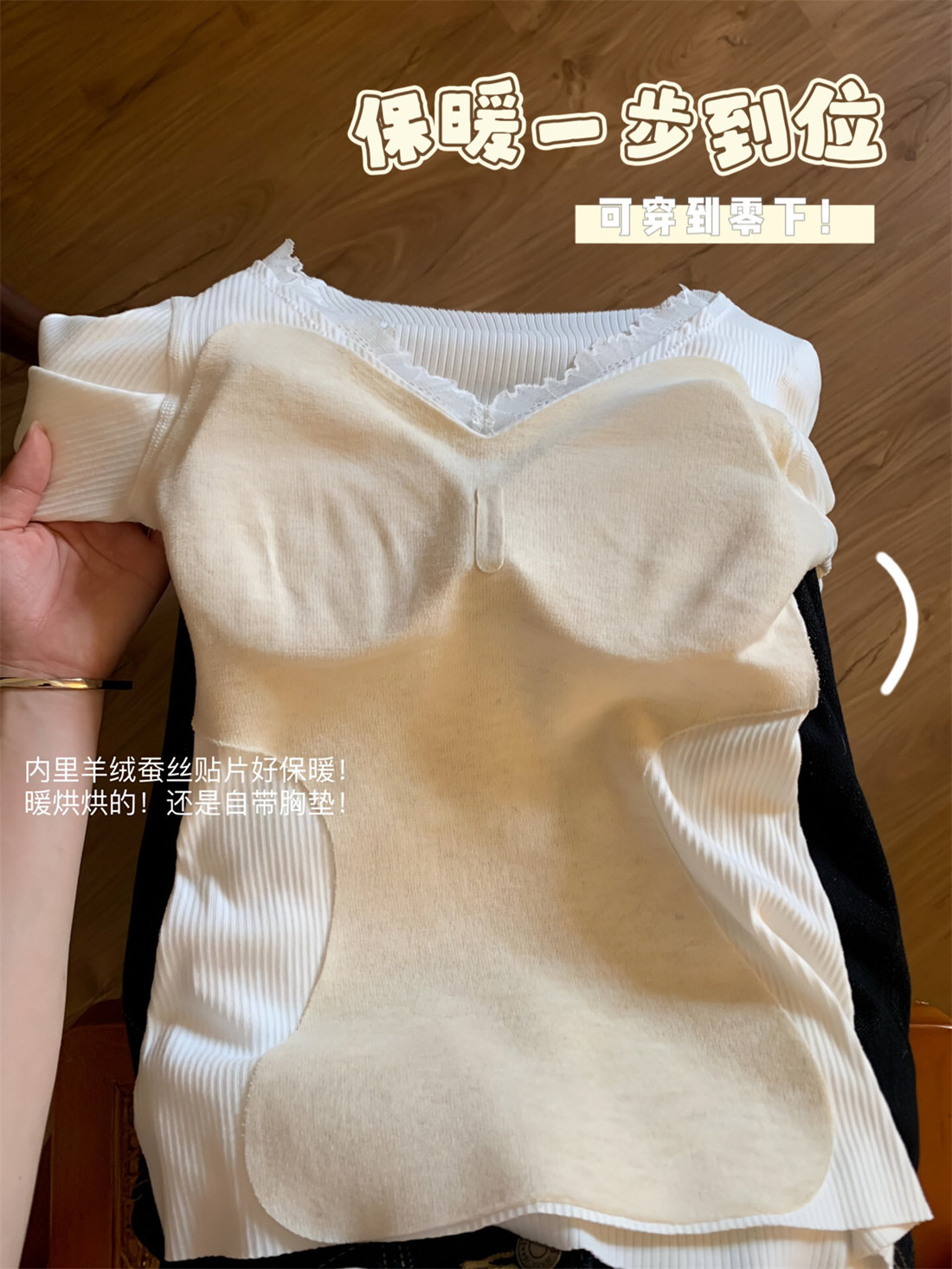 綿羊毛蠶絲保暖內衣套裝女加厚秋衣自帶胸墊2024秋冬抗菌小胸暖宮