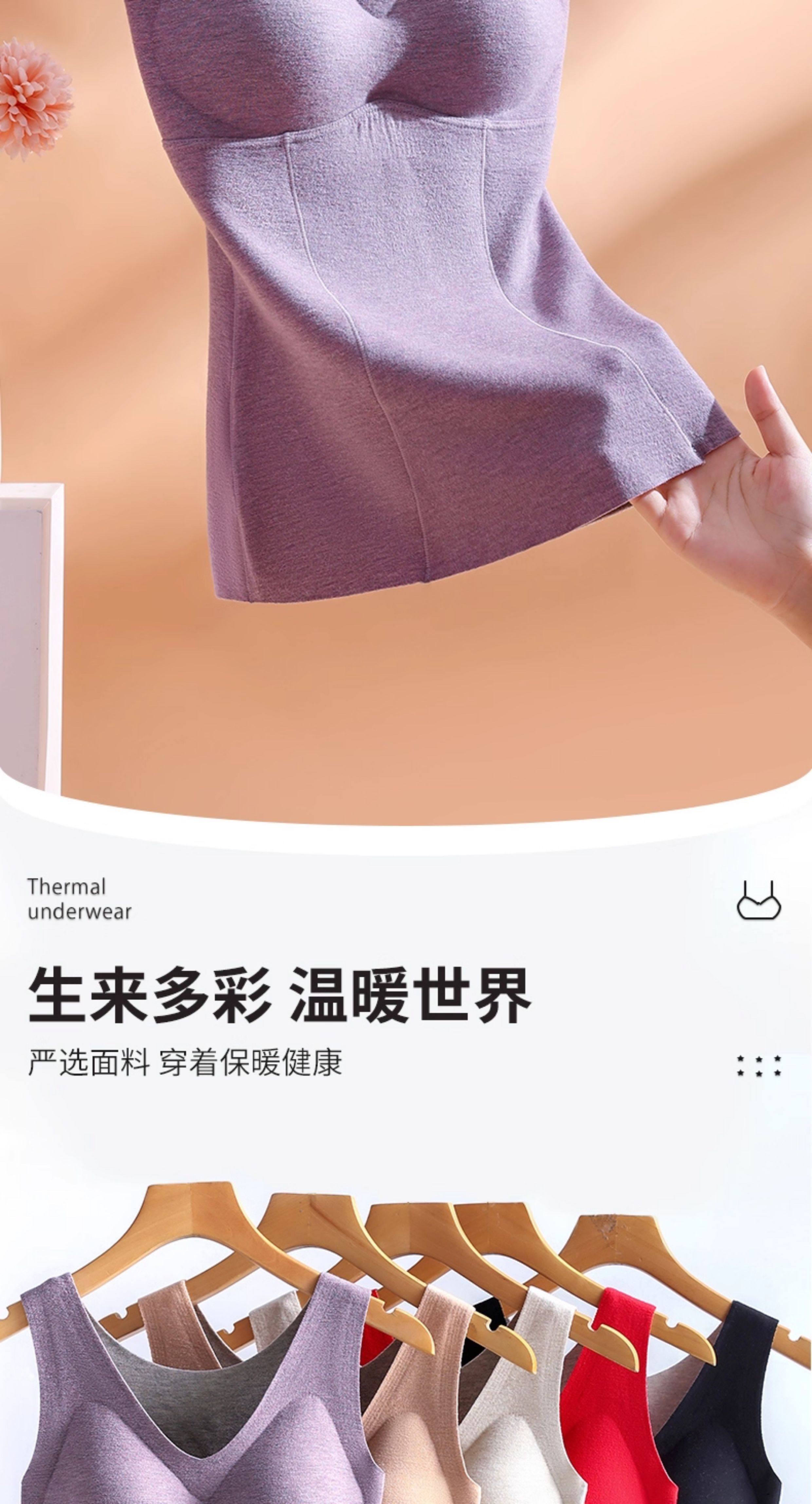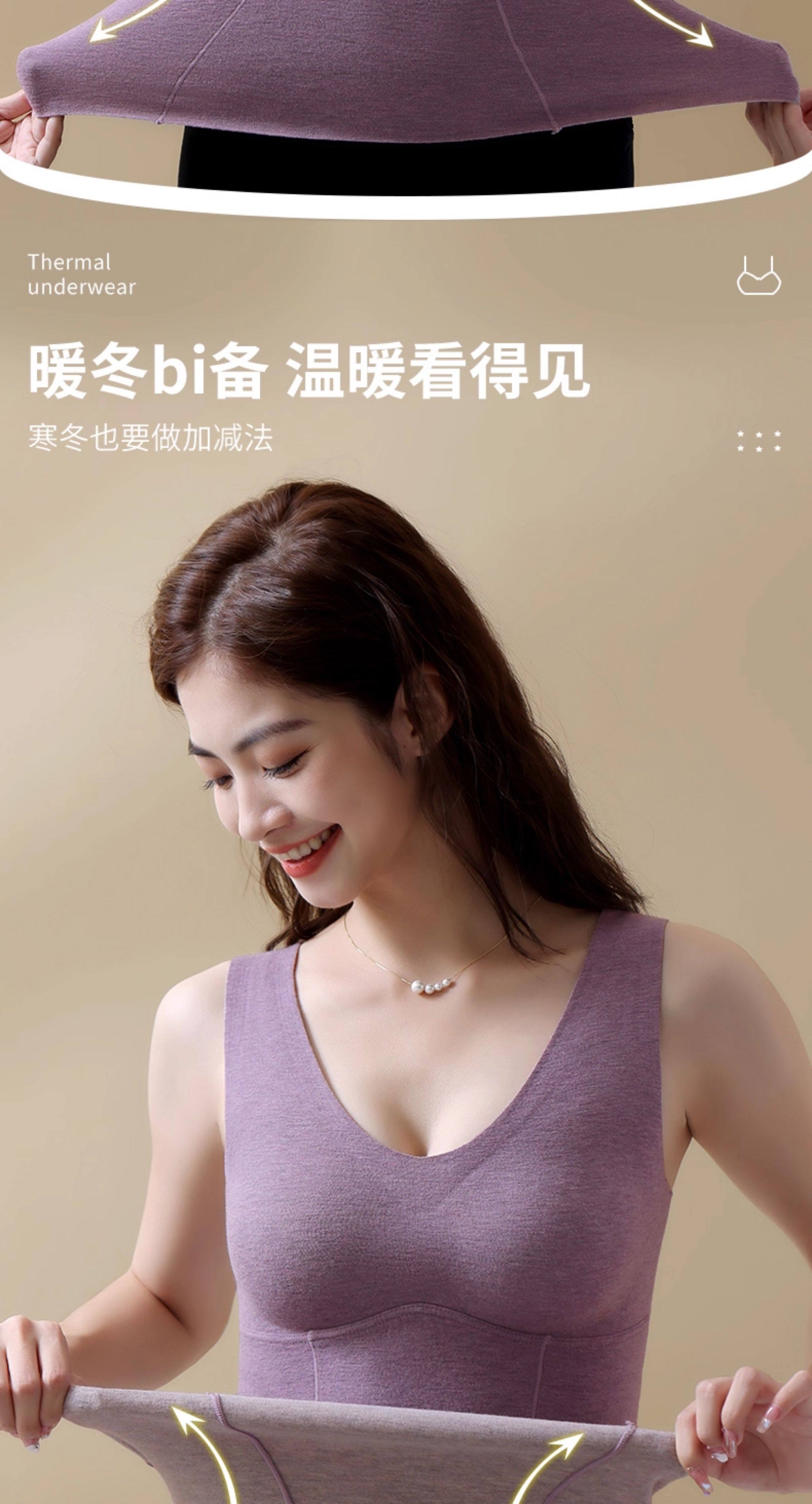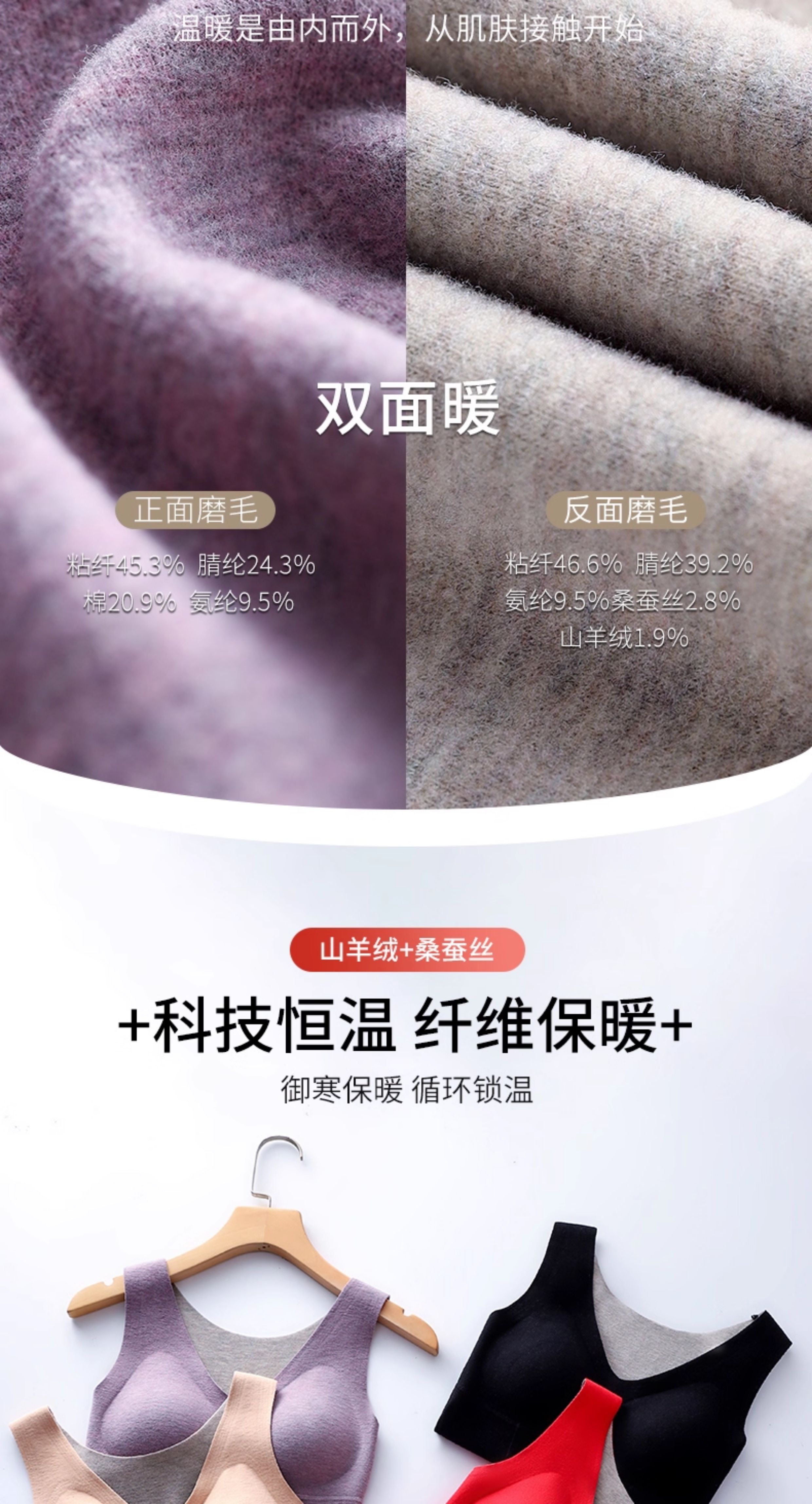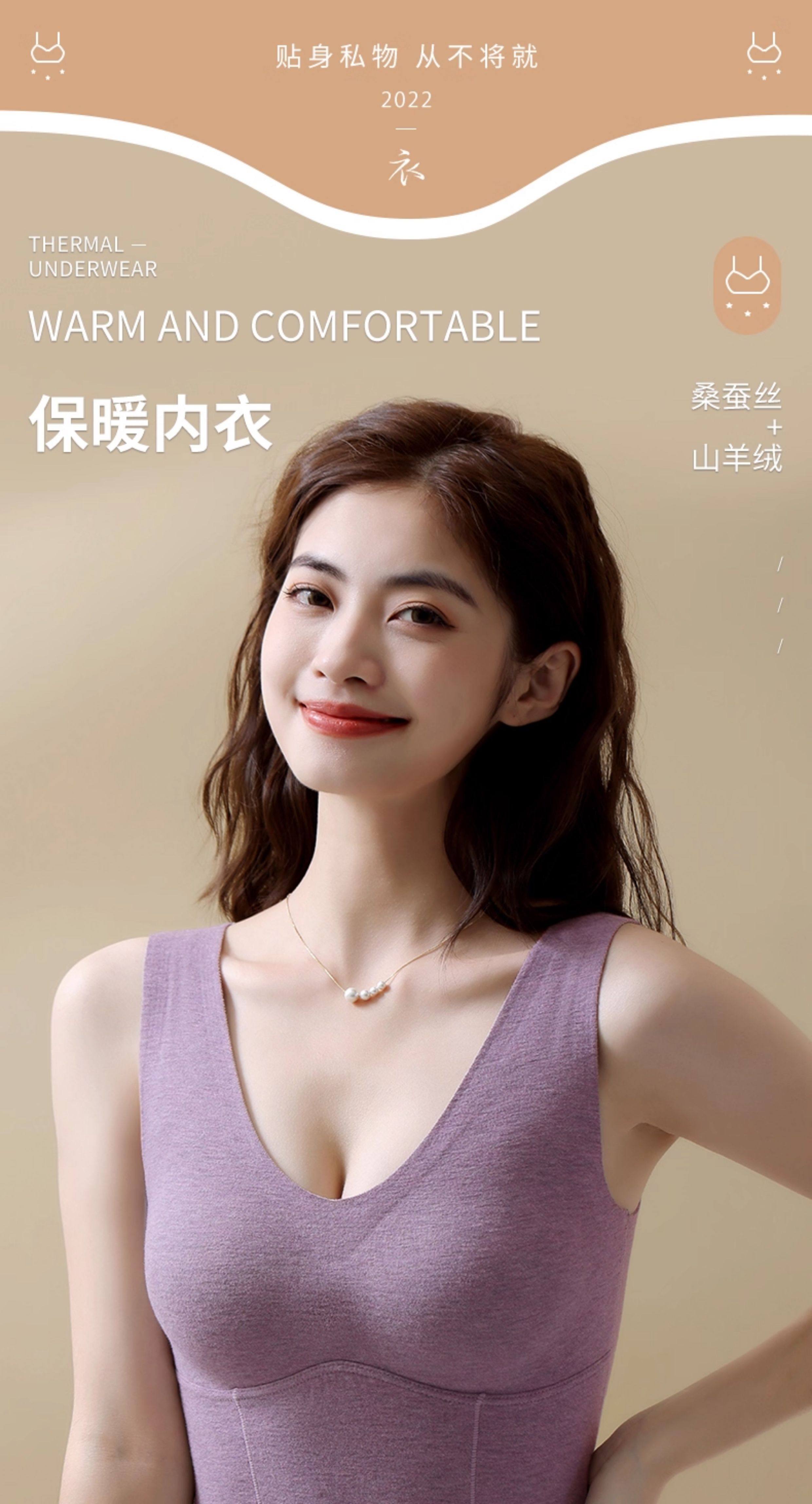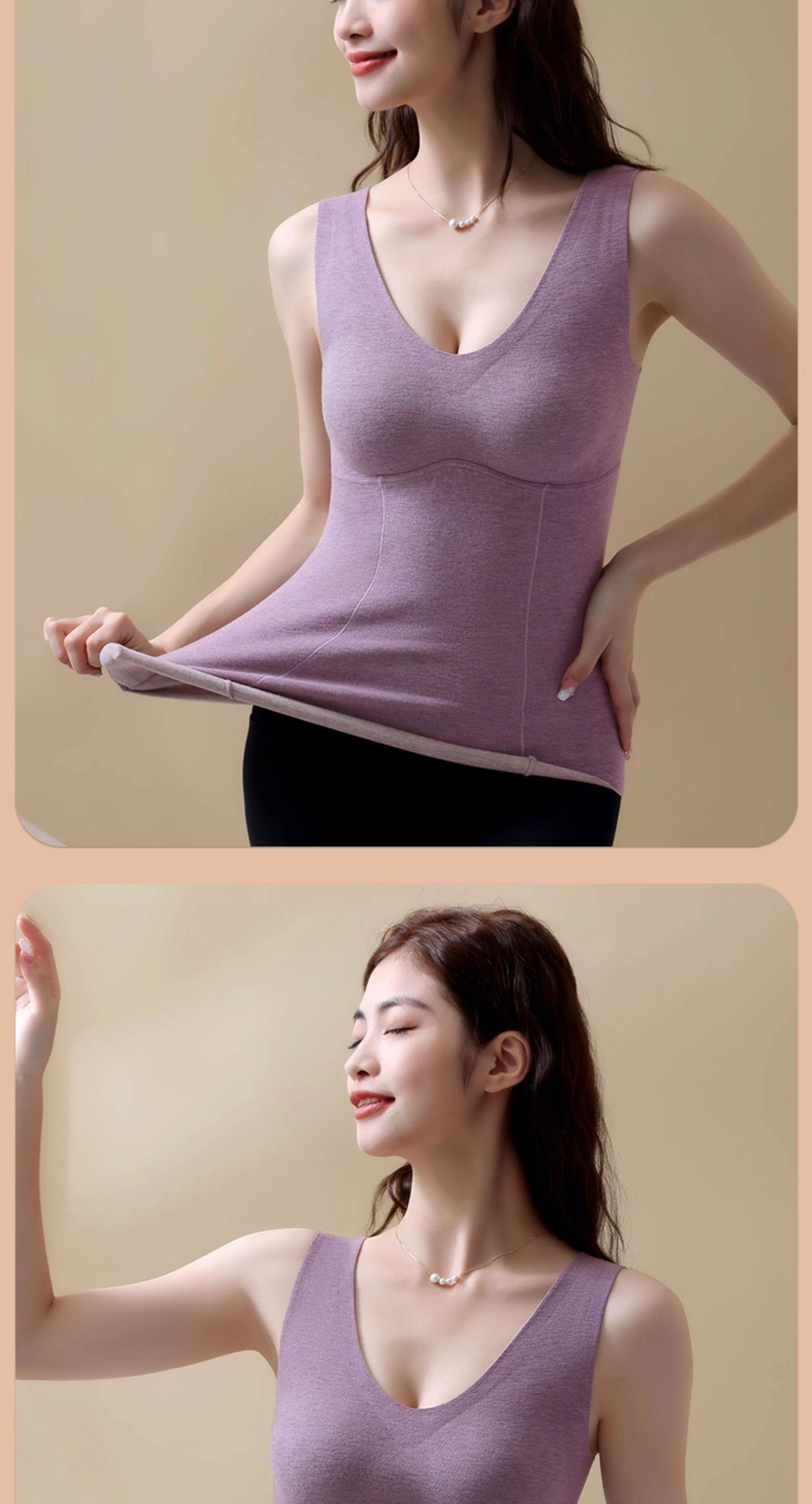 保暖背心女羊毛絨蠶絲德絨內衣加絨加厚帶胸墊冬季內穿無痕打底衫