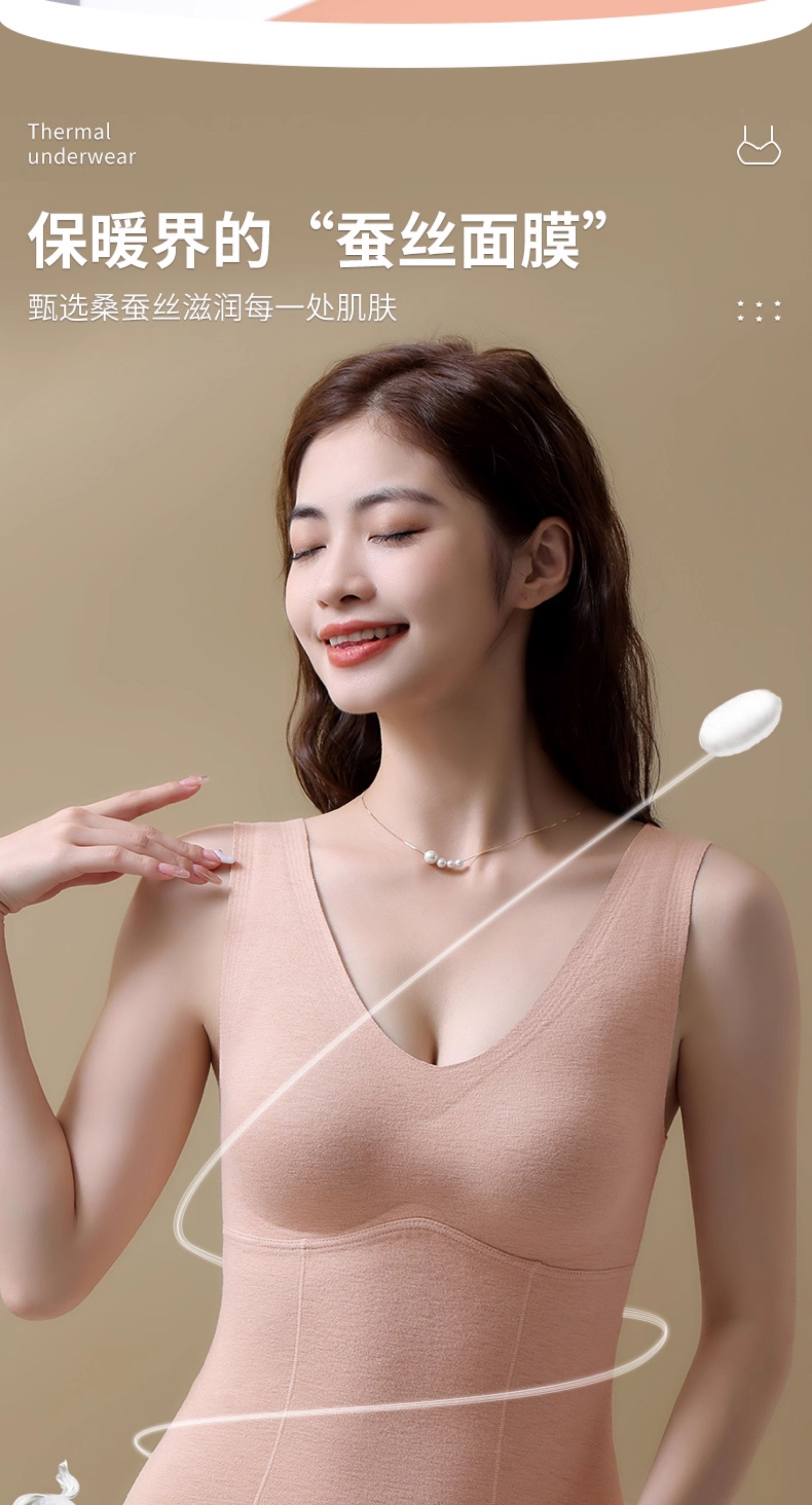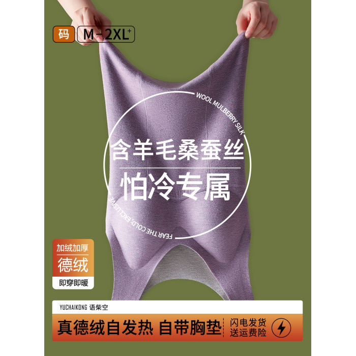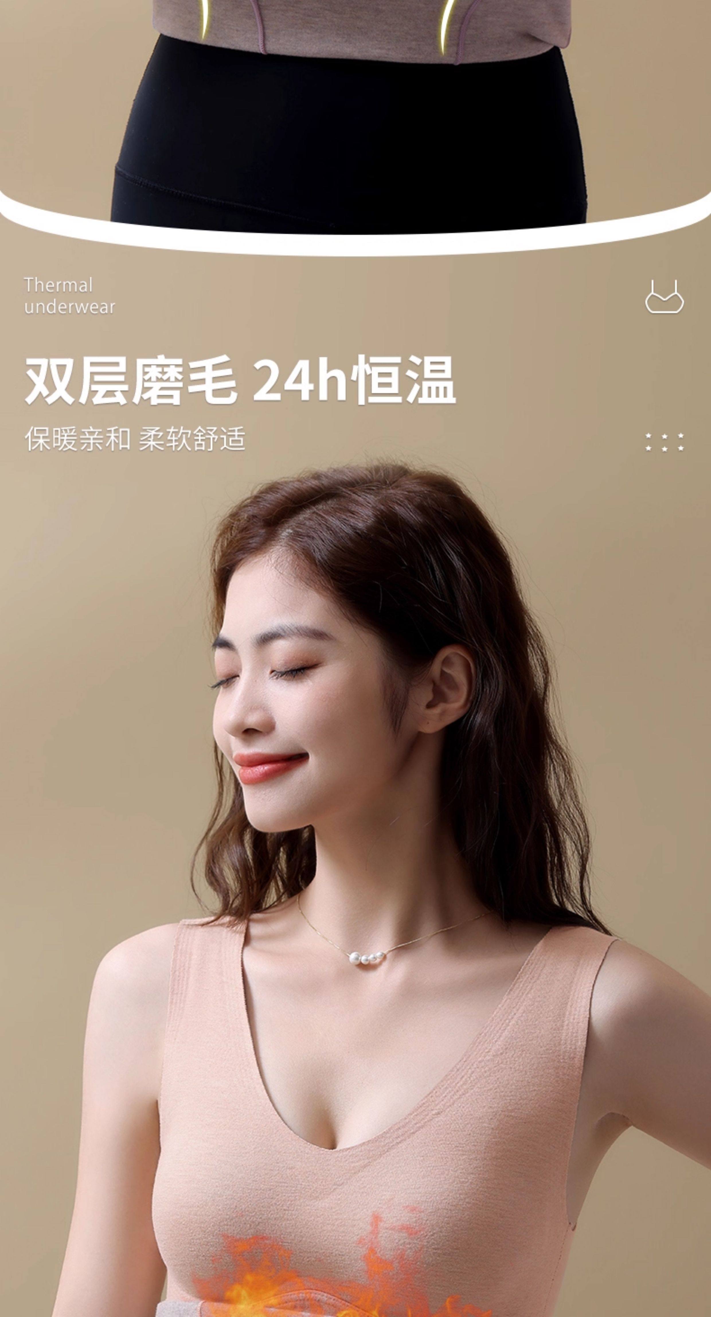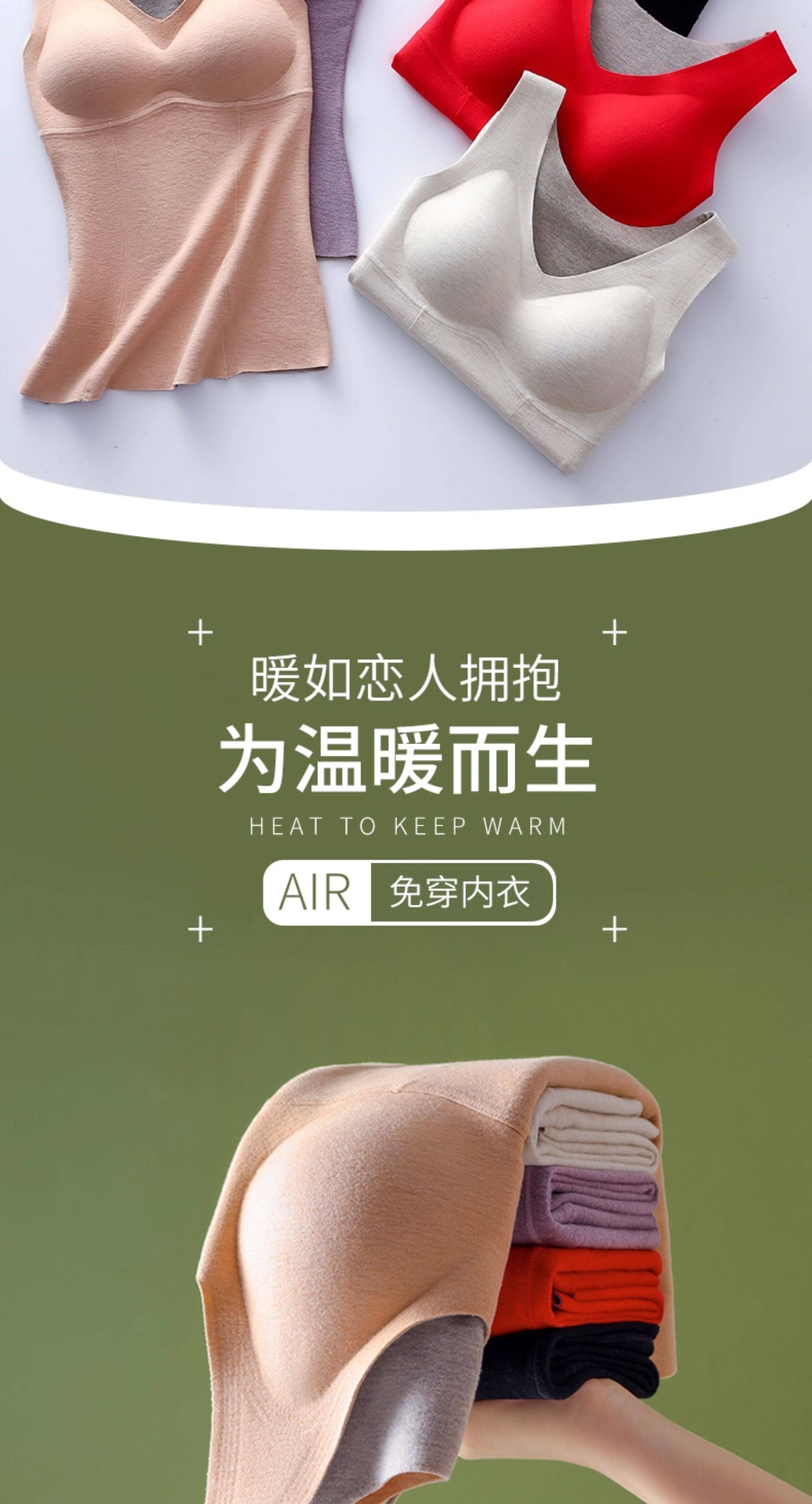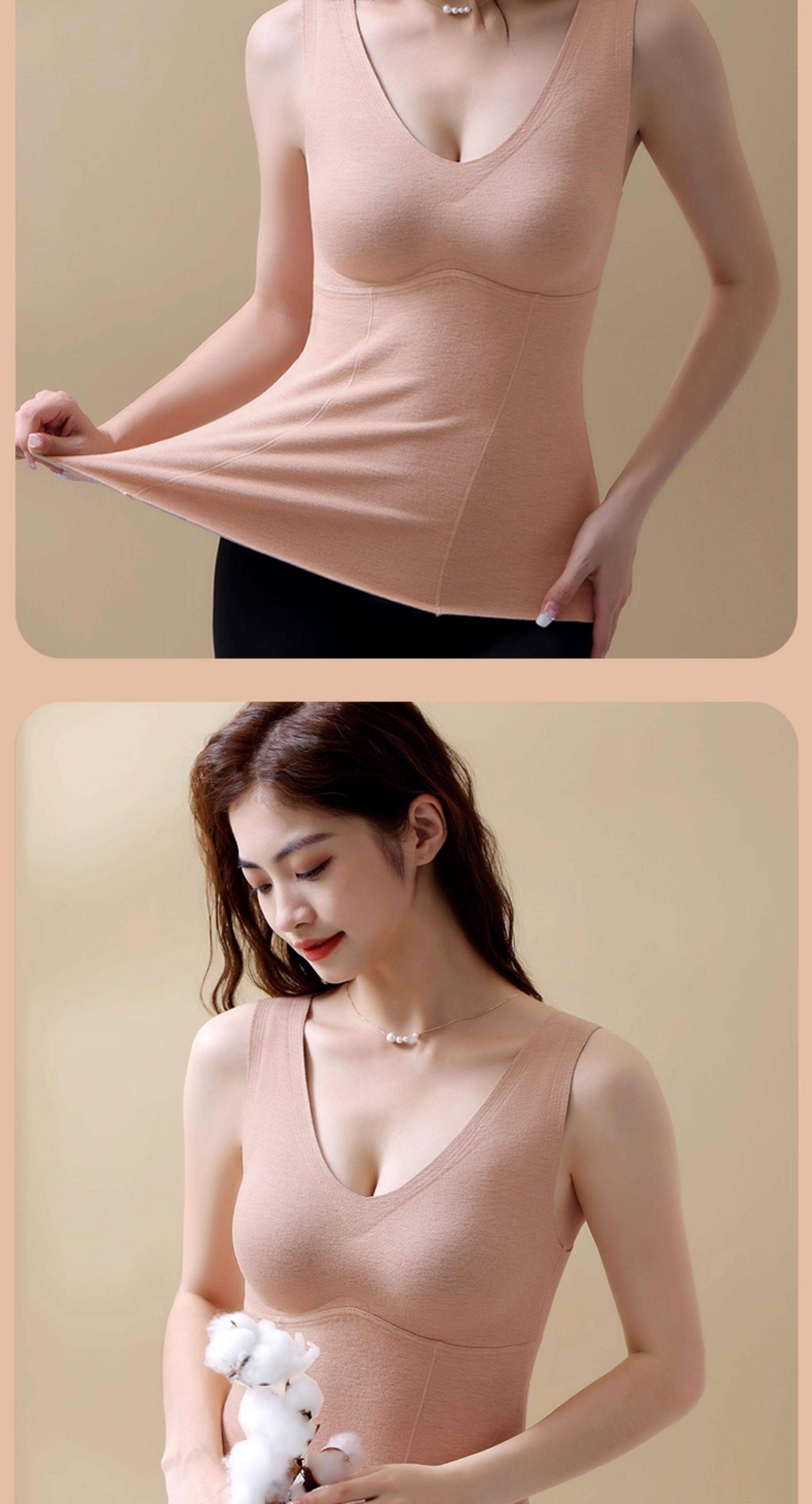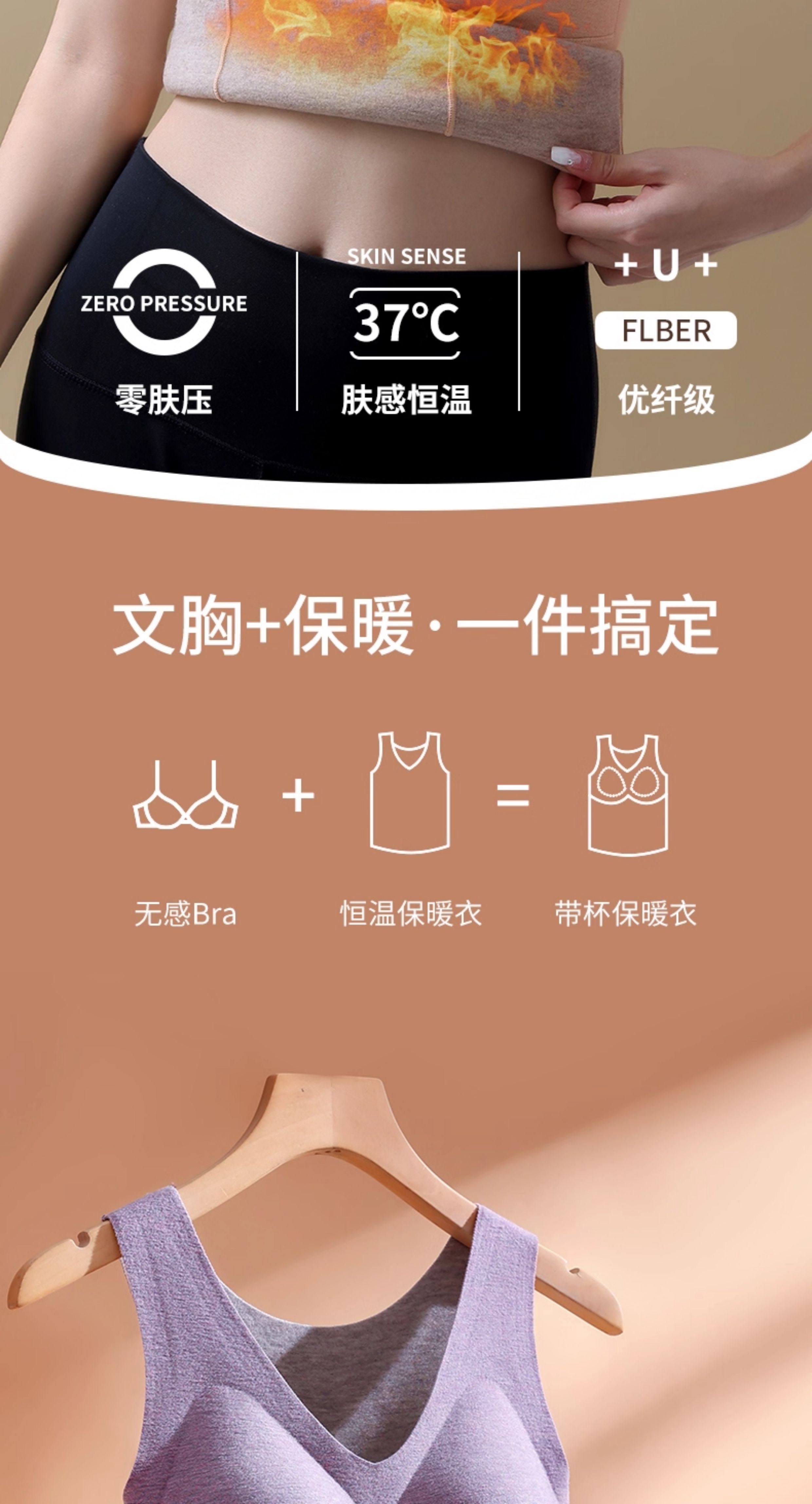 保暖背心女羊毛絨蠶絲德絨內衣加絨加厚帶胸墊冬季內穿無痕打底衫