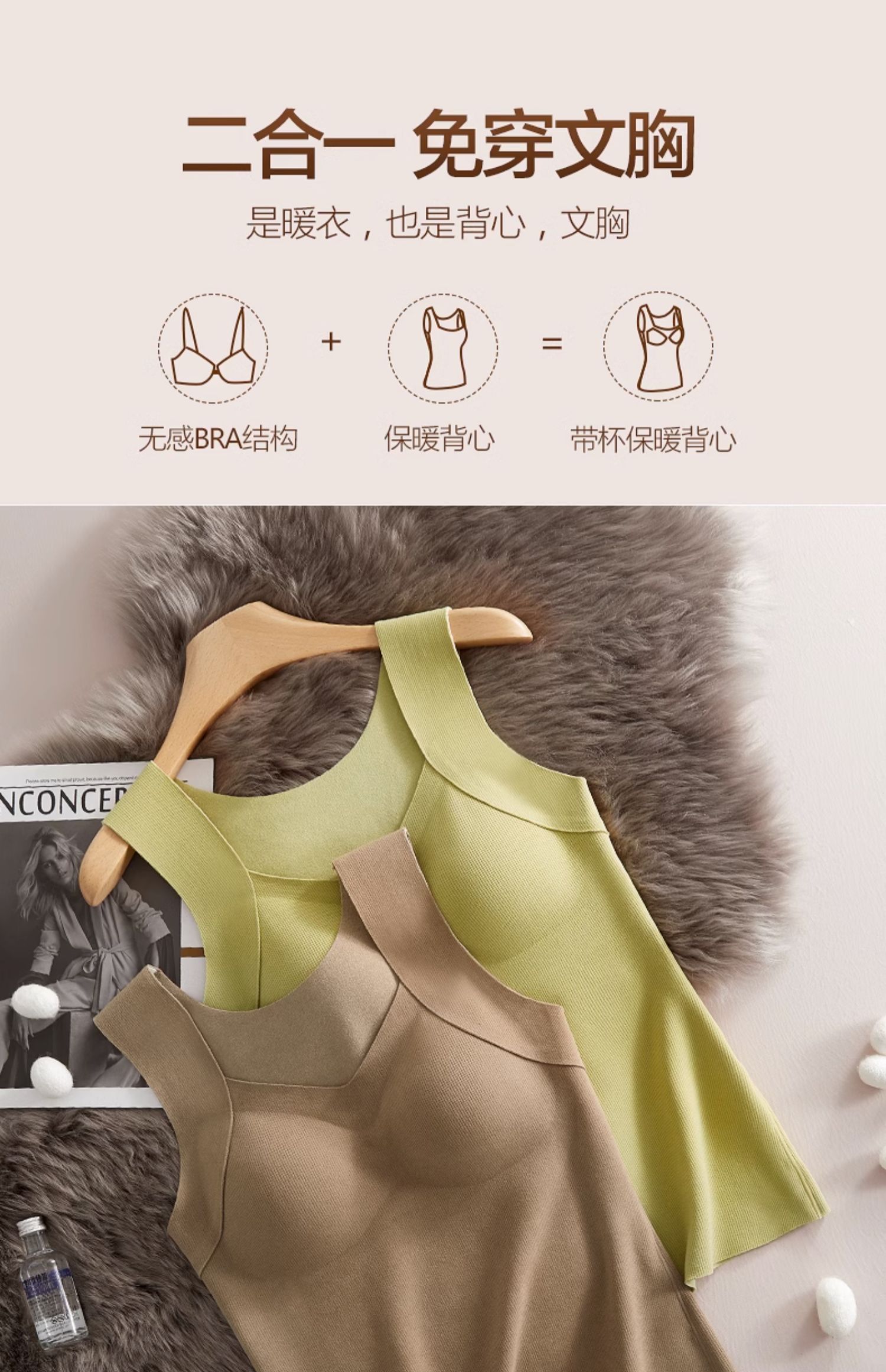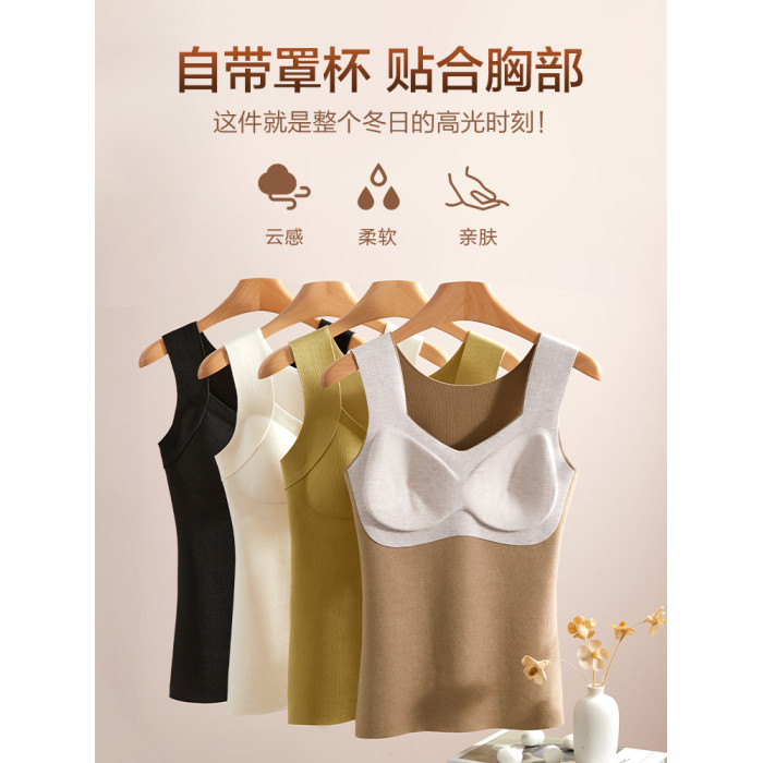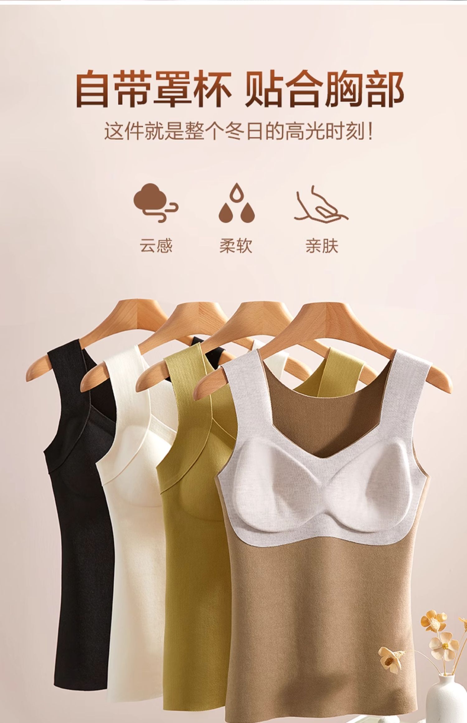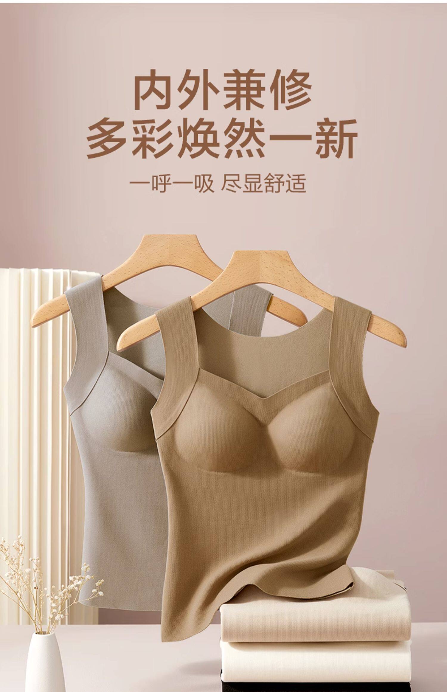 恒源祥保暖內衣女內搭bra背心帶胸墊免穿文胸一體無痕髮熱秋衣冬