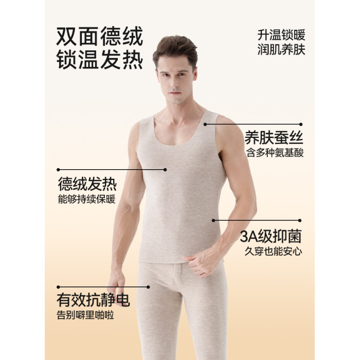 德絨蠶絲無痕保暖背心男冬季加絨加厚內穿打底上衣防寒自髮熱內衣