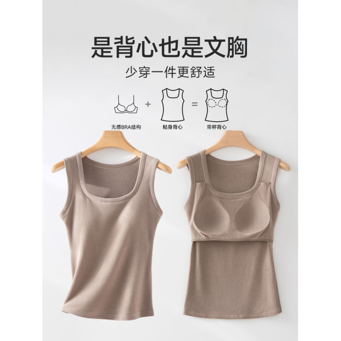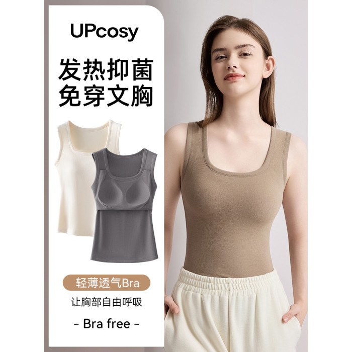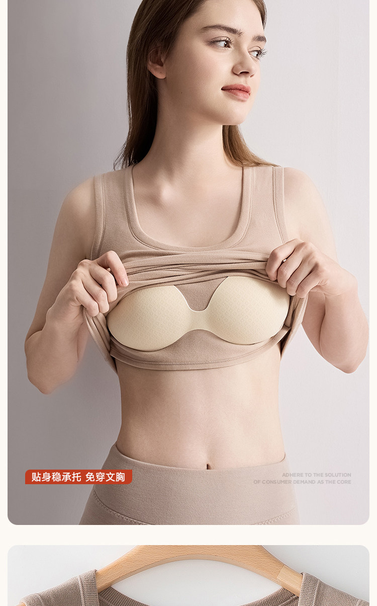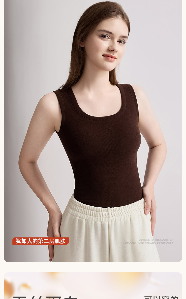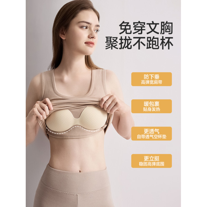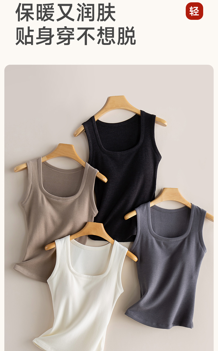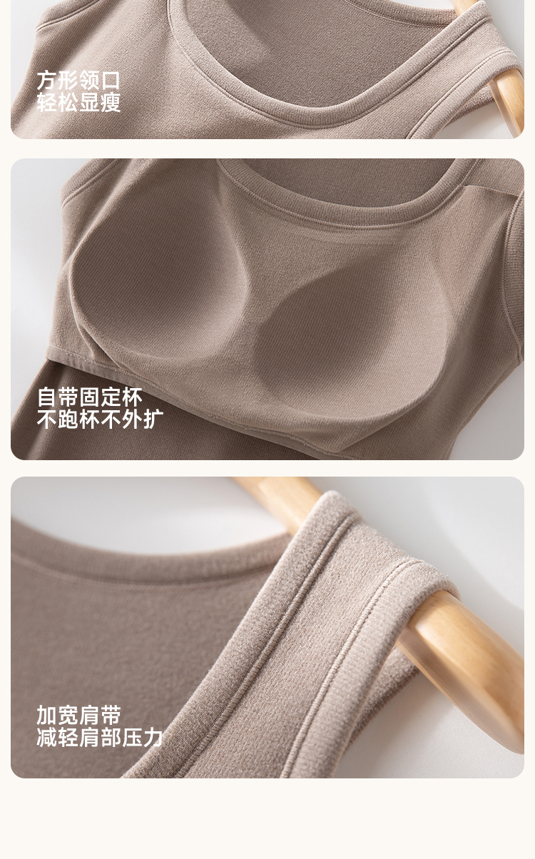 髮熱德絨保暖內衣吊帶背心女士2025新款方領帶胸墊打底衫冬季內搭