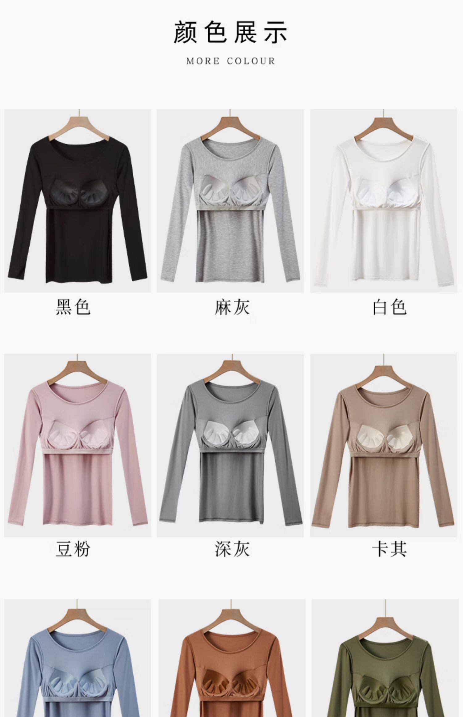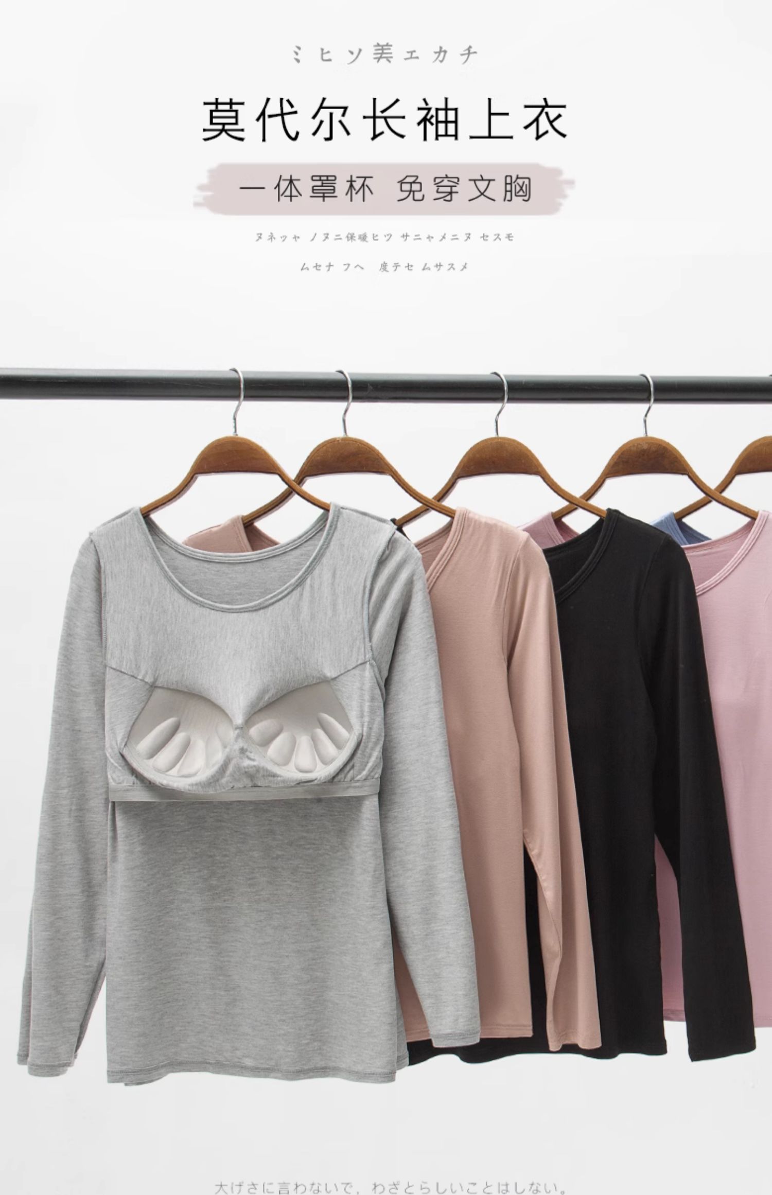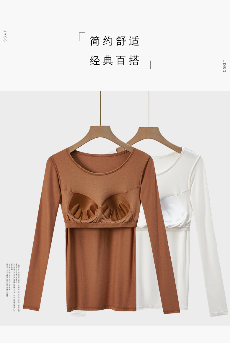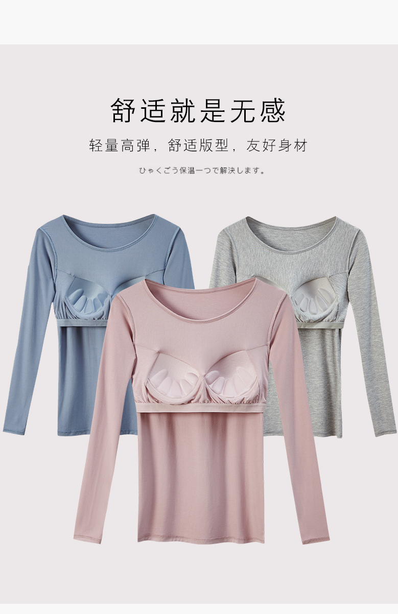 莫代爾薄款打底衫帶胸墊一體長袖單件上衣外穿貼身秋衣保暖女士冬