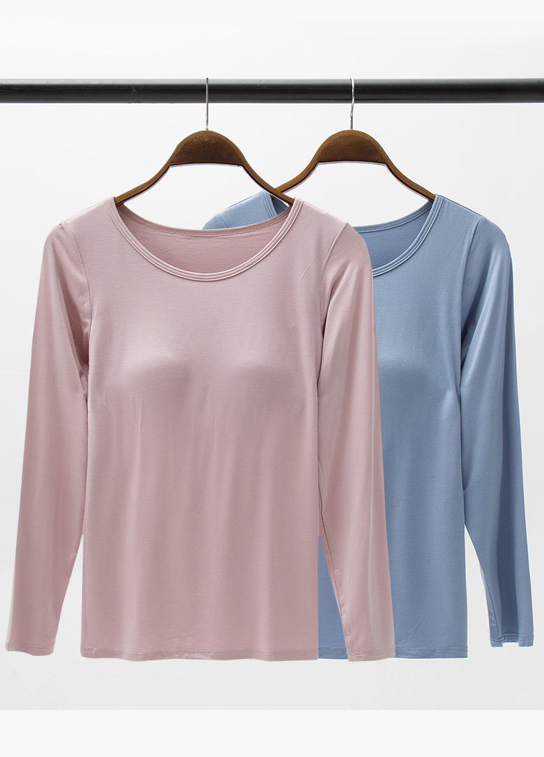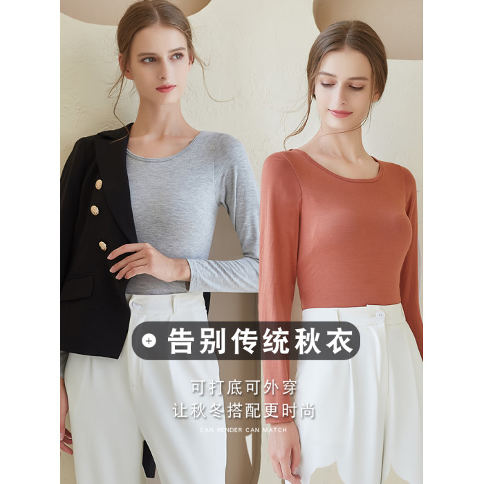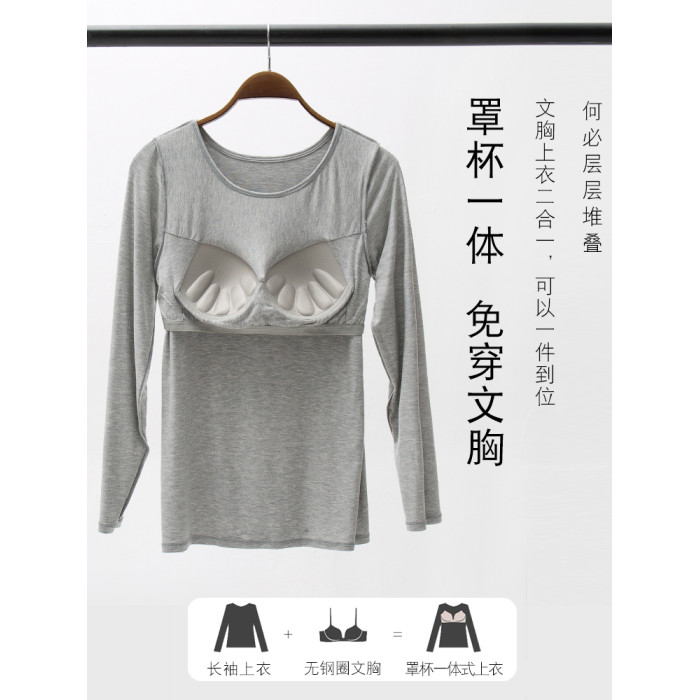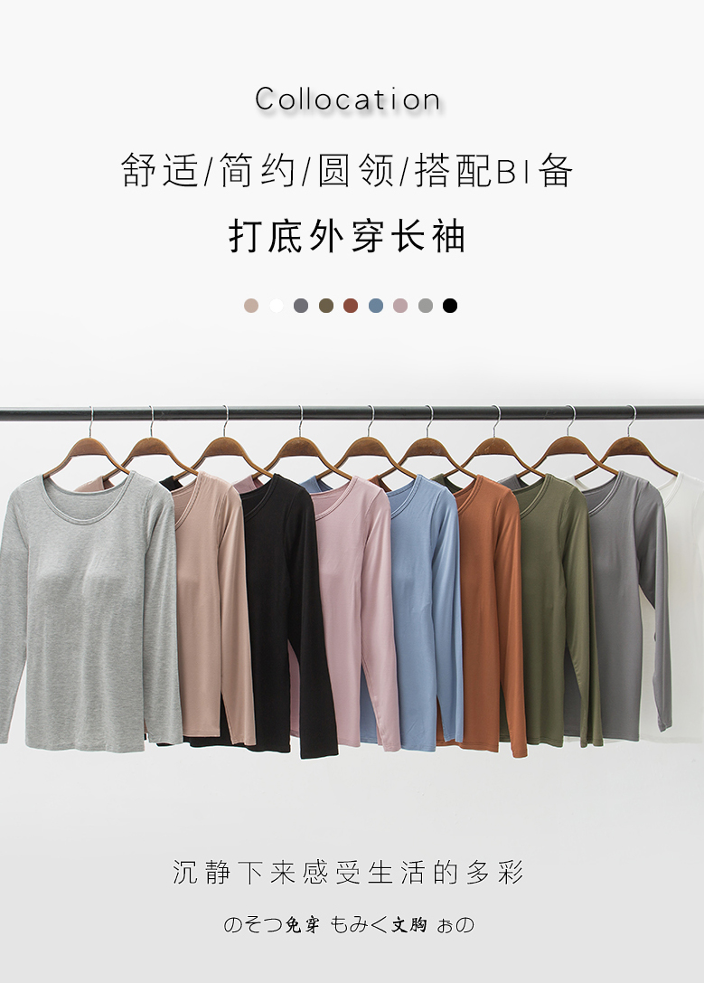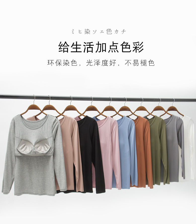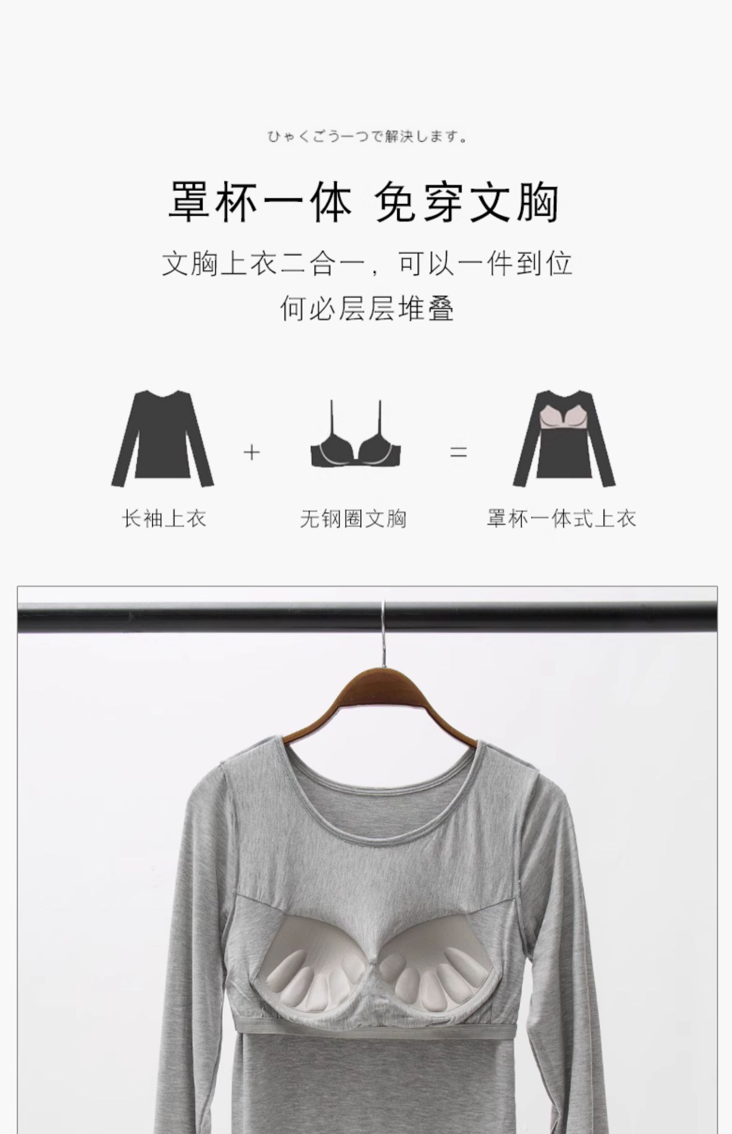 莫代爾薄款打底衫帶胸墊一體長袖單件上衣外穿貼身秋衣保暖女士冬