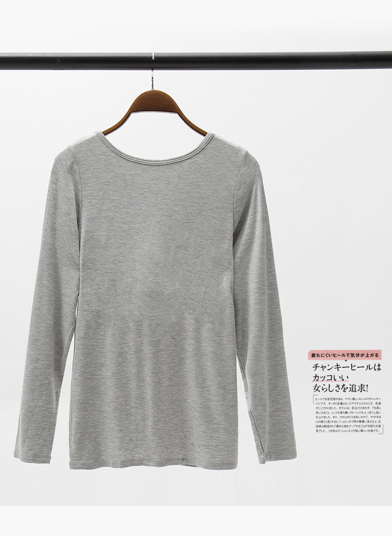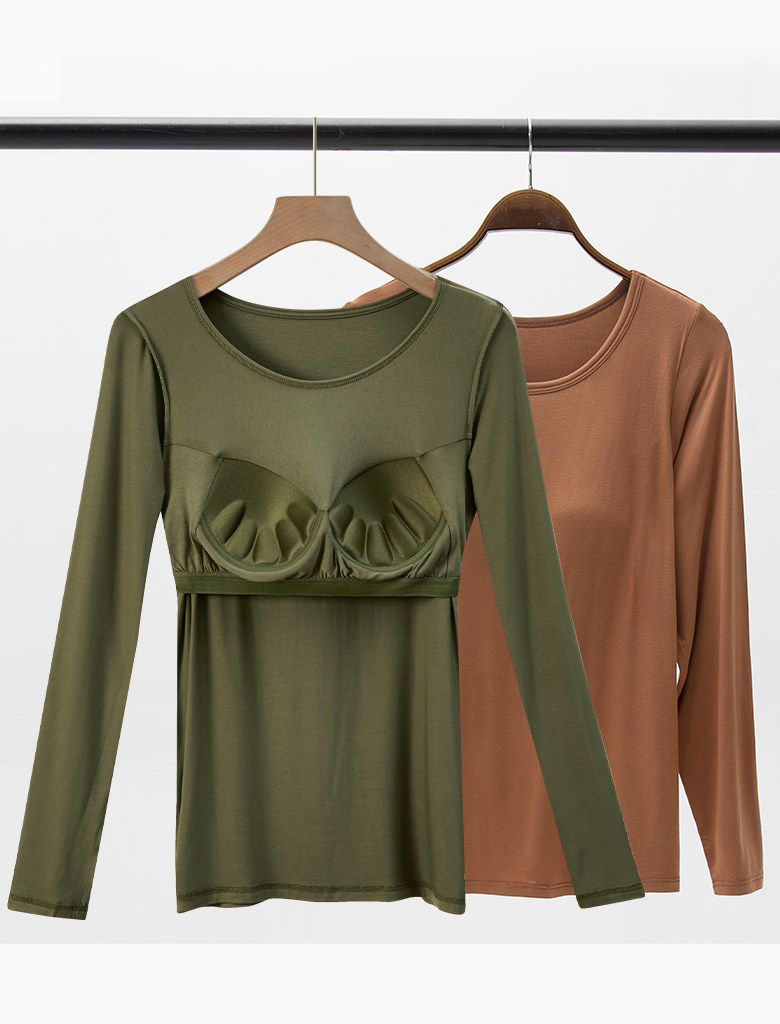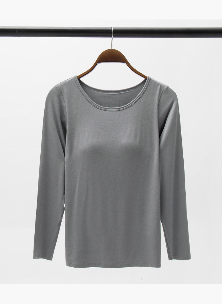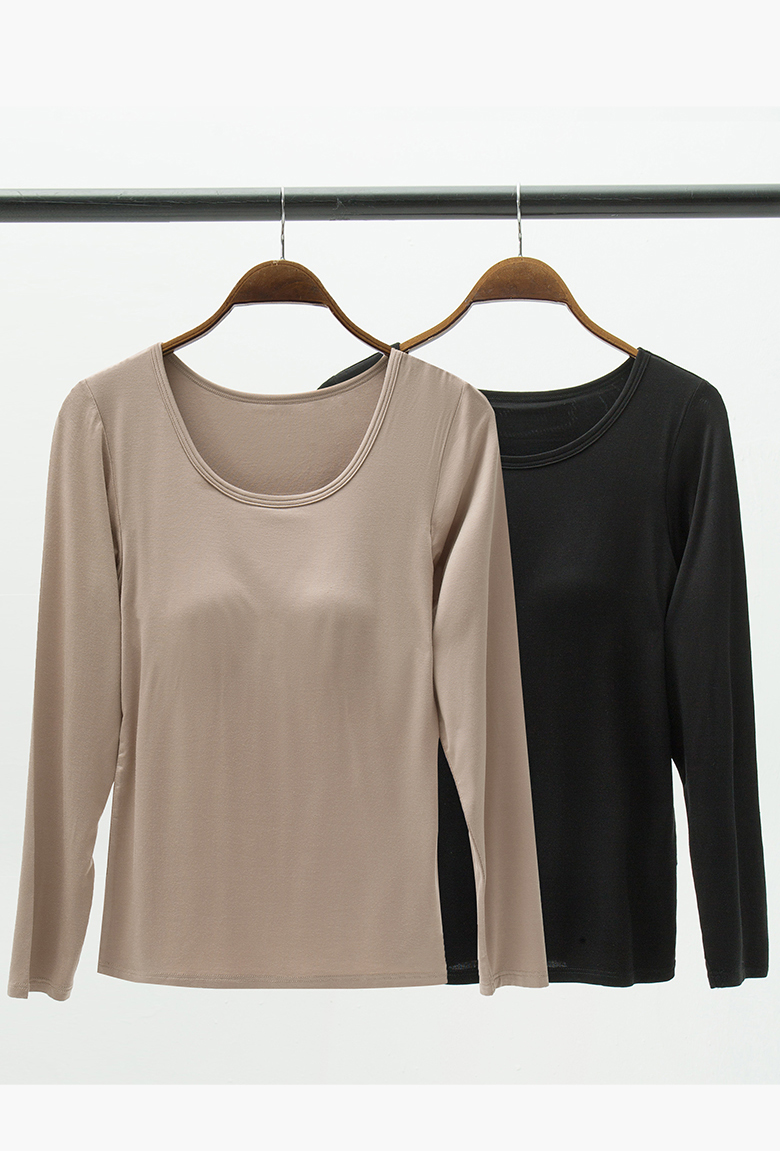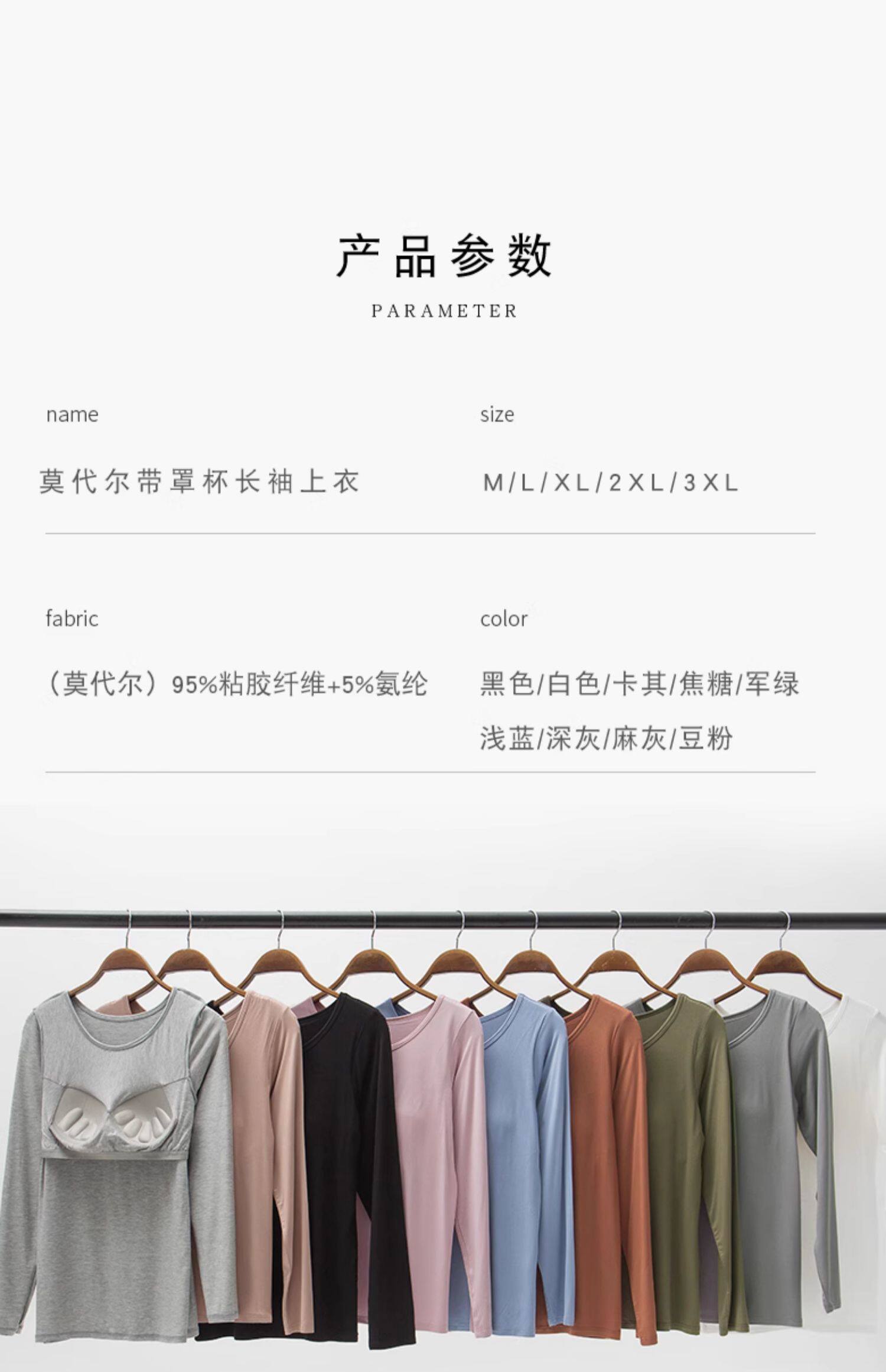 莫代爾薄款打底衫帶胸墊一體長袖單件上衣外穿貼身秋衣保暖女士冬