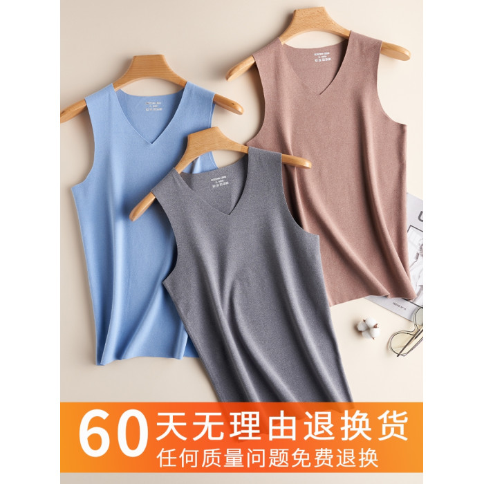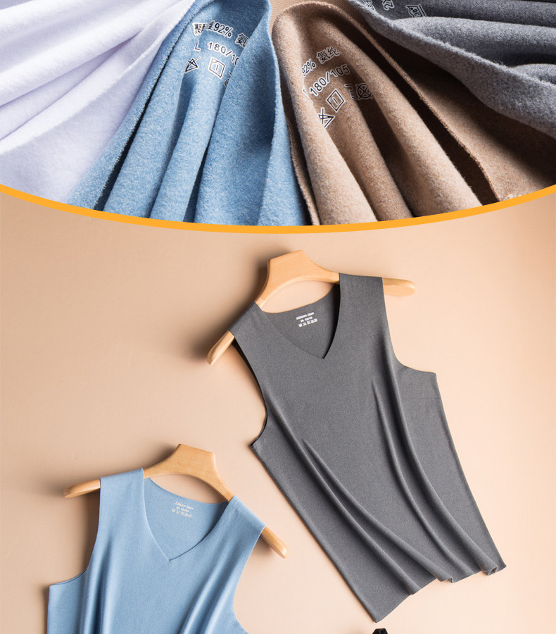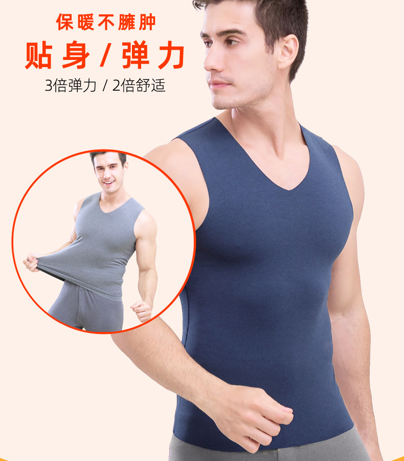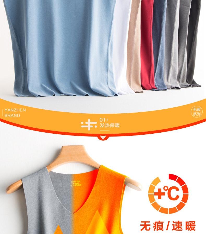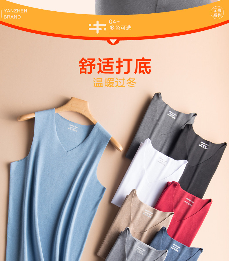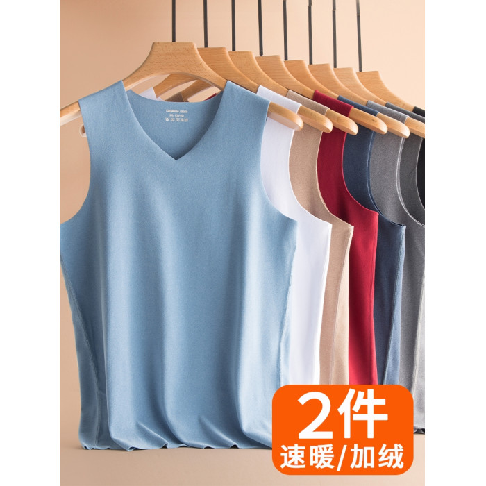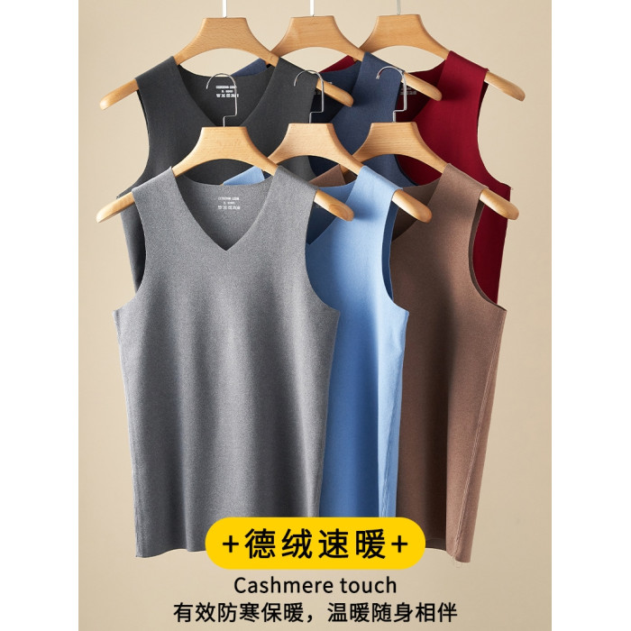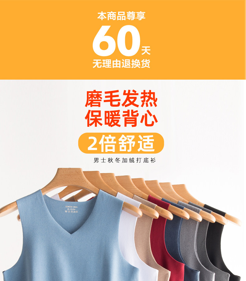 雙面德絨無痕保暖背心男士款內衣秋冬季內穿髮熱加絨加厚打底白色