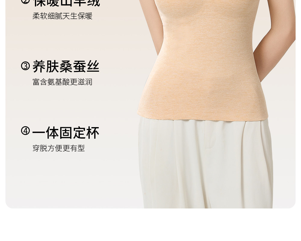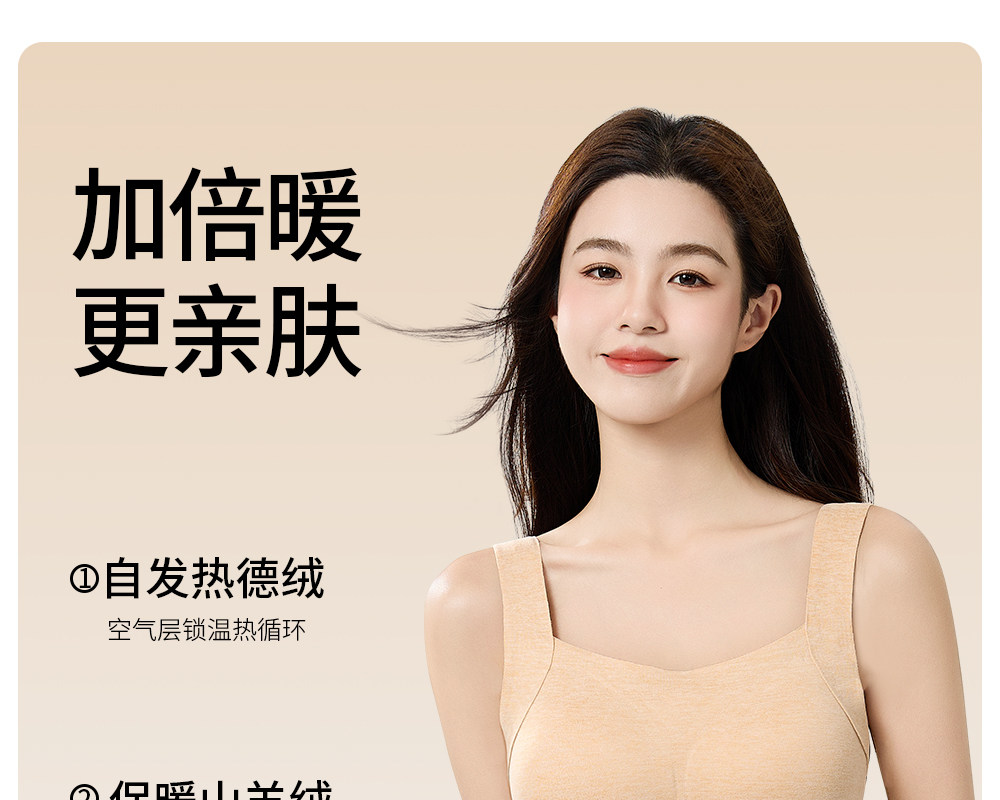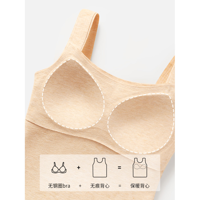 保暖背心女帶胸墊一體加絨2025年秋冬季羊絨蠶絲髮熱內搭打底內衣