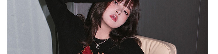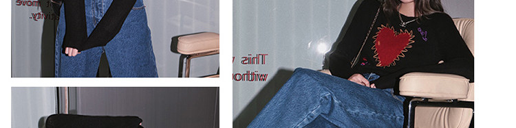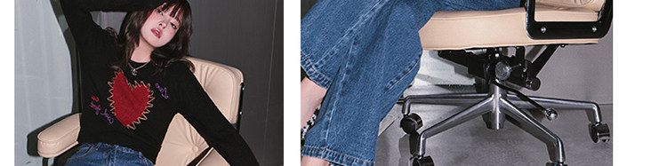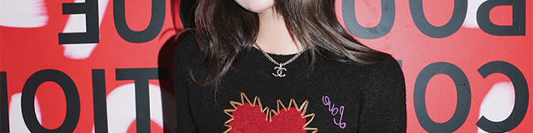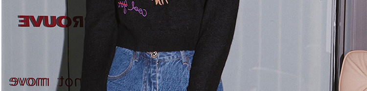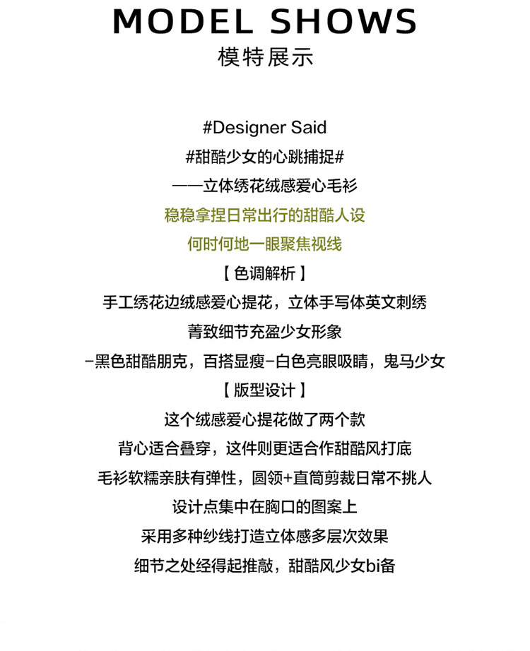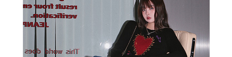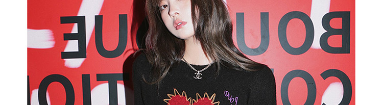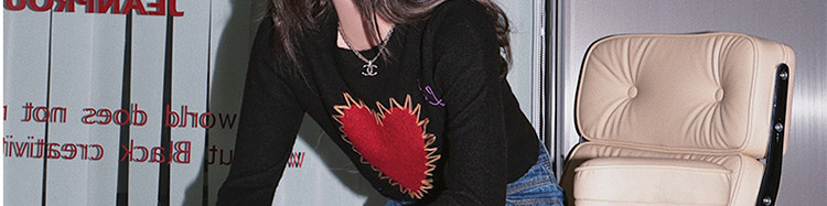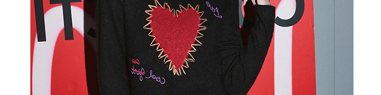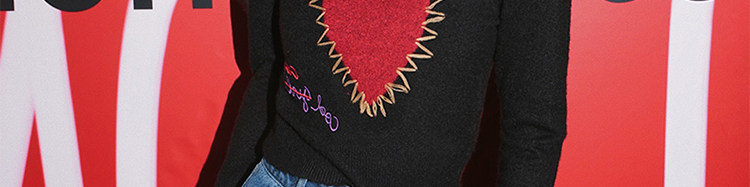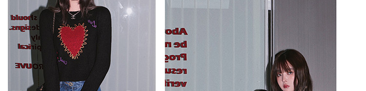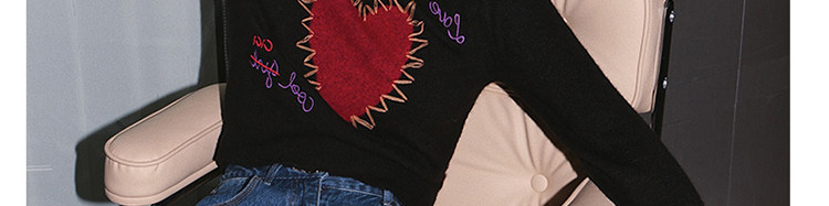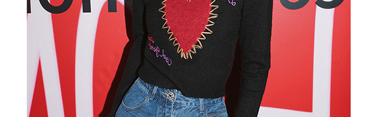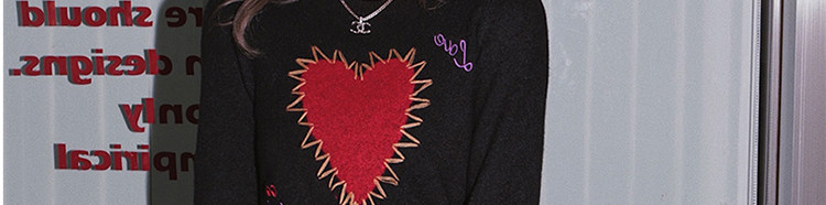 甜酷辣妹愛心刺綉上衣黑色毛衣女套頭圓領秋冬內搭打底針織衫短款